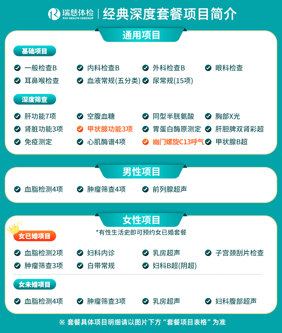 | 套餐名称:经典深度体检套餐 | |||||