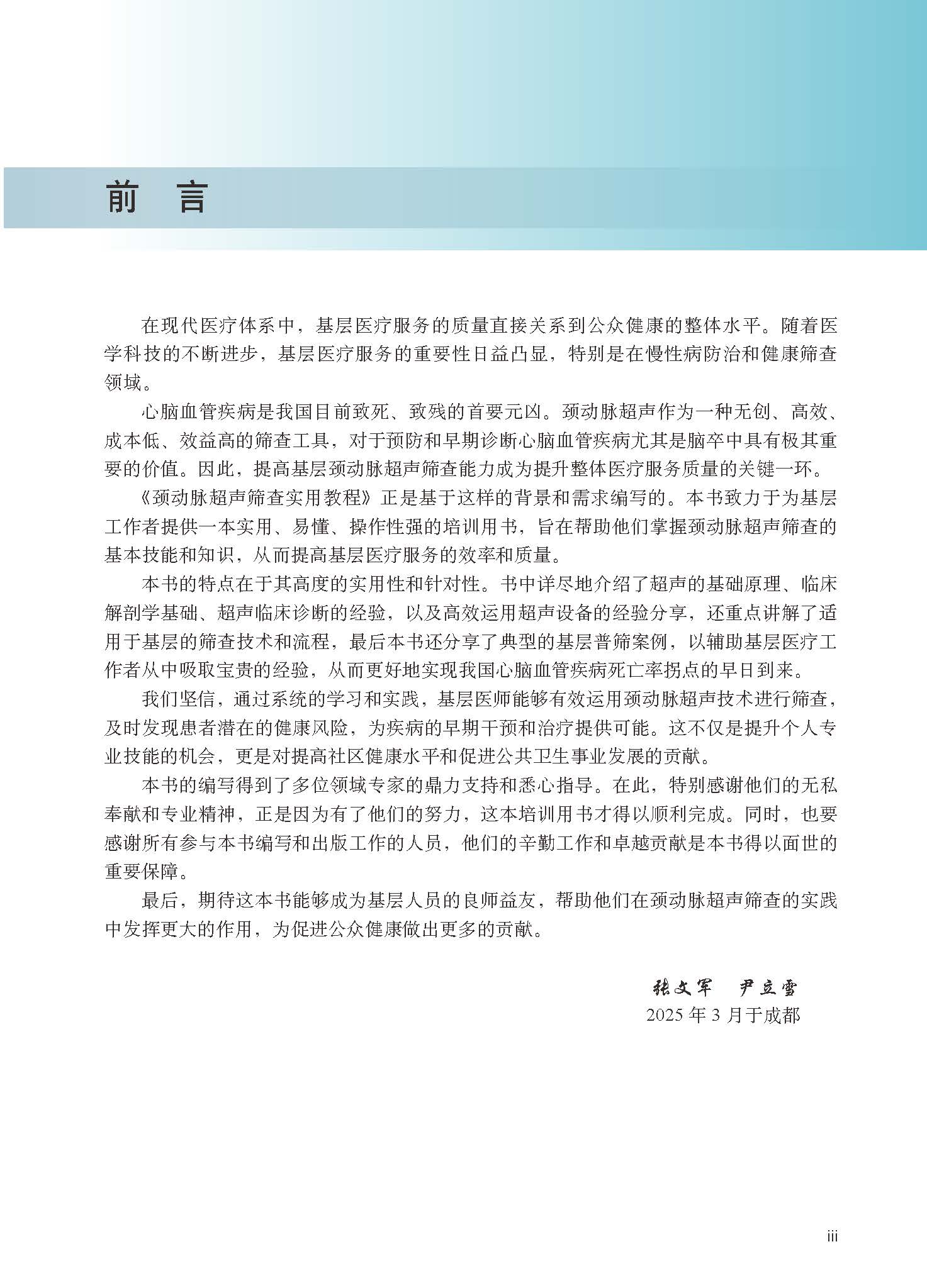 本书共分为8章,分别为超声成像基础导论、多普勒超声基础导论、彩色血流成像导论、血管超声基础导论、超声换能器的基础导论、目标结构的临床解剖、颈动脉常见疾病的临床诊断经验。本书融入了超声医学领域的…新技术,如高频超声、三维成像等,旨在为基层医师提供先进的知识和技能。同时,本书详尽地介绍了超声的基础原理、临床解剖学基础、超声临床诊断的经验,以及高效运用超声设备的经验分享,最后分享了典型的基层普筛案例,是一本具有原创性、实用性的指导基层医师快速掌握颈动脉超声筛查技术的专著。
