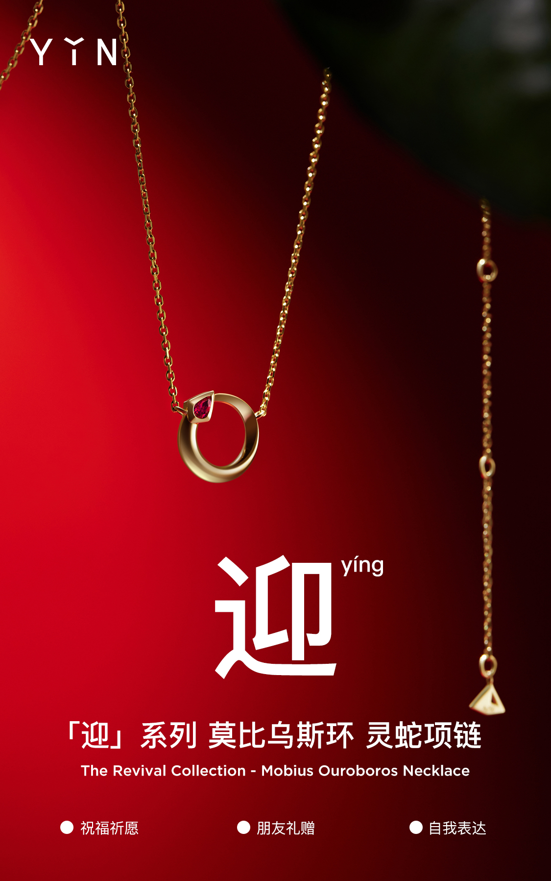 「迎」系列 巳蛇肆蛇 蛇年生肖18K金项链 本命年祝福送礼