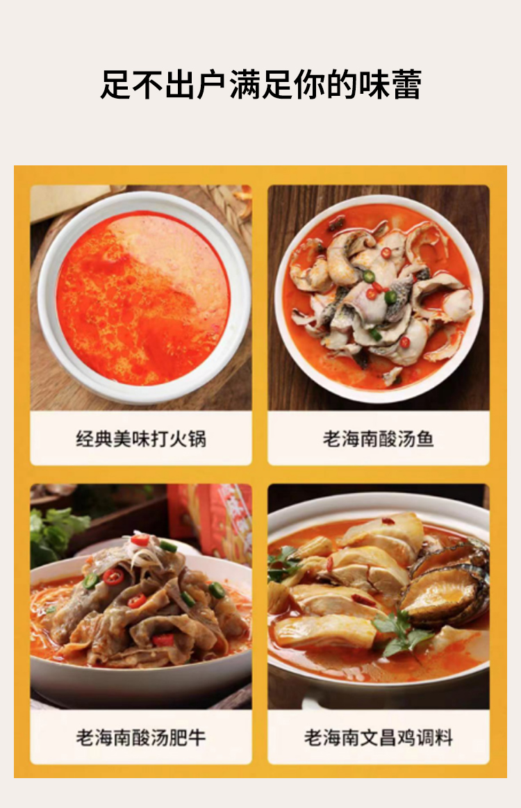 【食用方法】原浆直接下锅,煮沸后加入食材烫熟即食。火锅建议按顺序依次加入海鲜、肉类、蔬菜、食材和汤底同时食用。