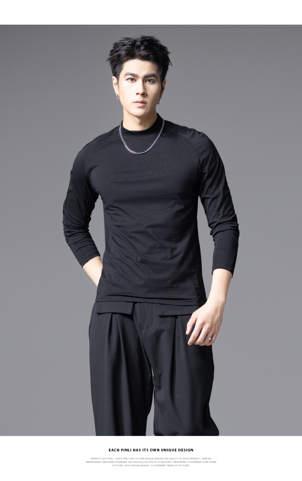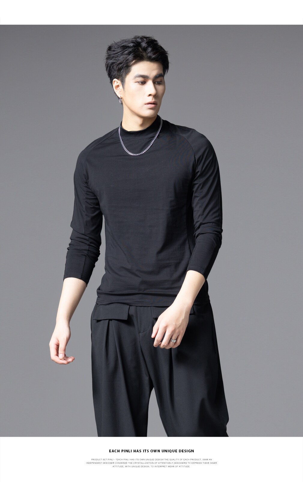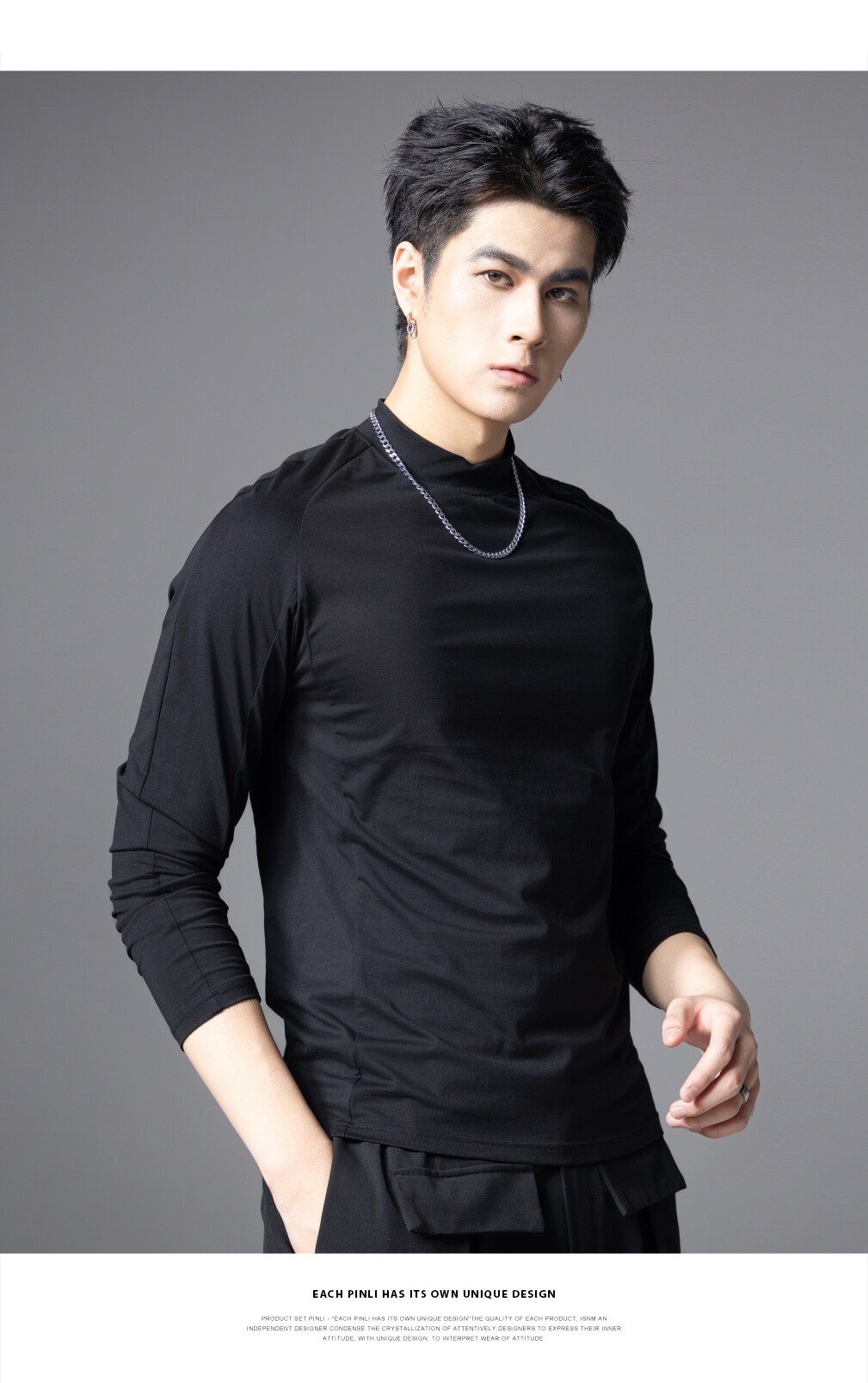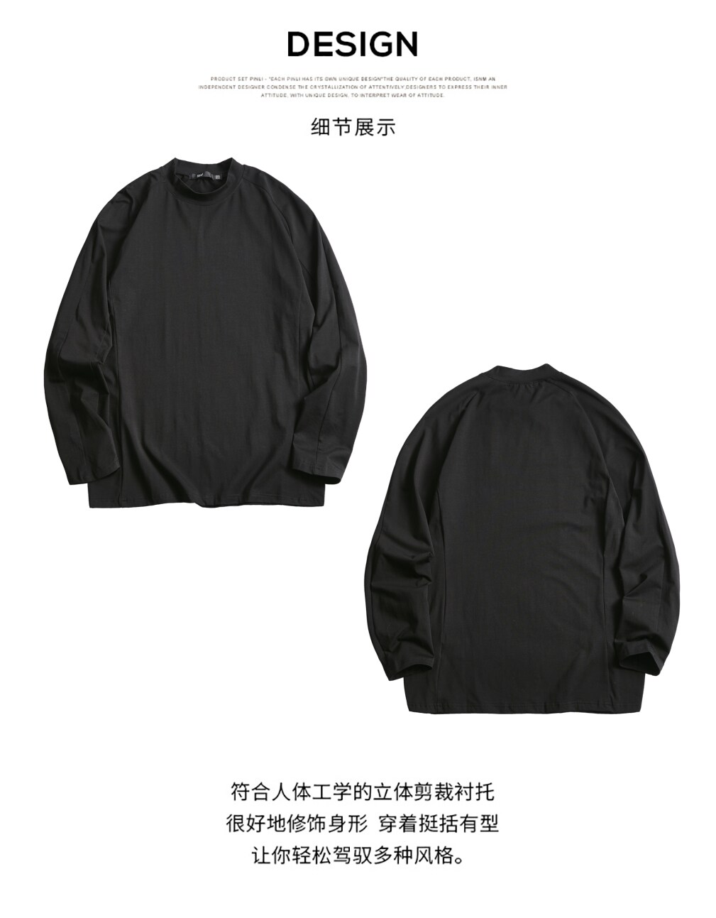 PINLI品立2025秋季新款立领纯色内搭长袖T恤男士休闲打底衫上衣潮B253111091