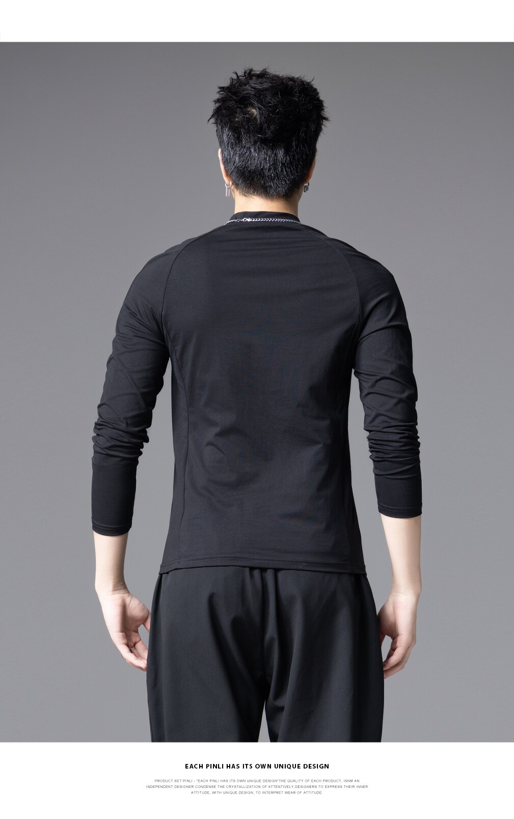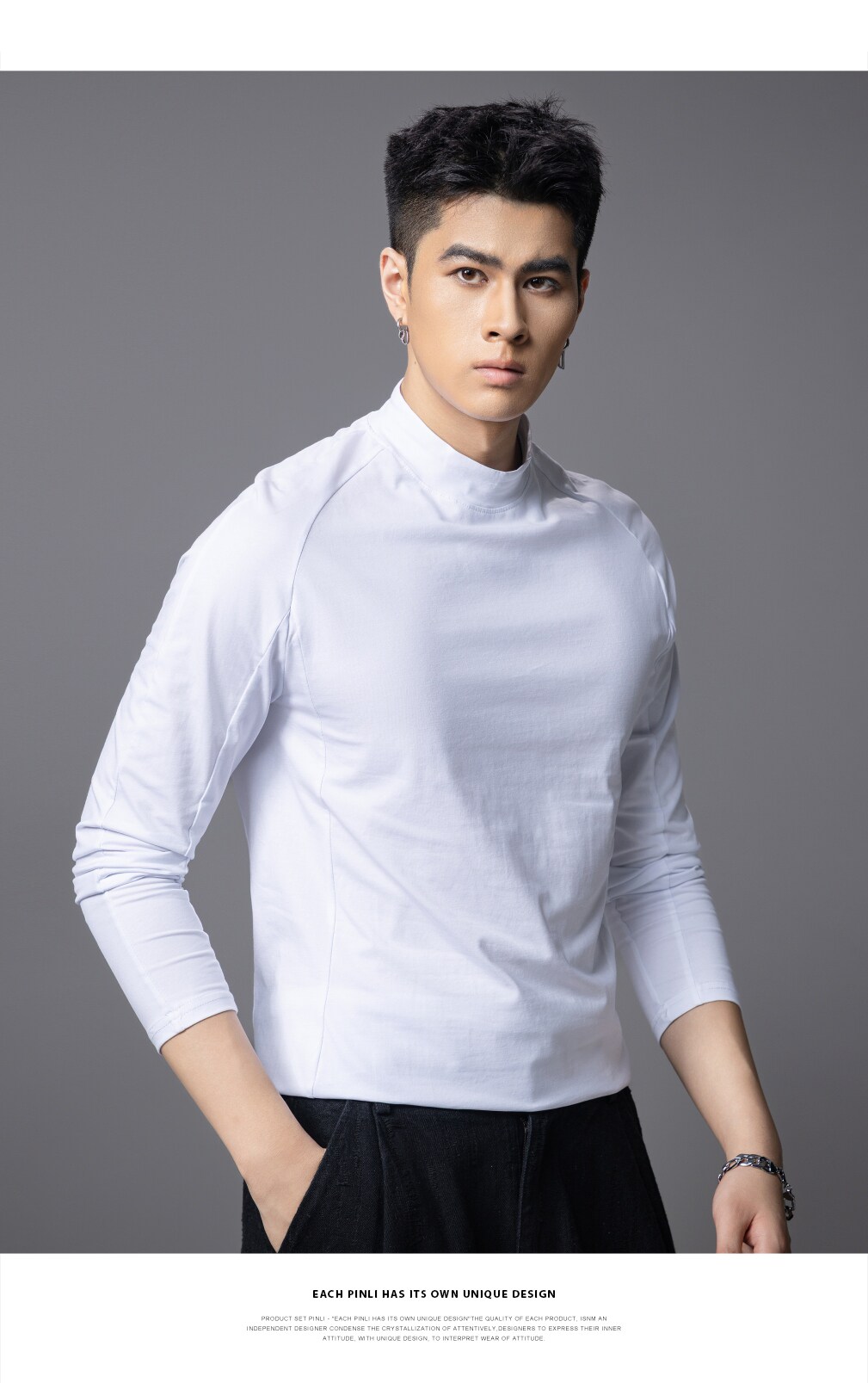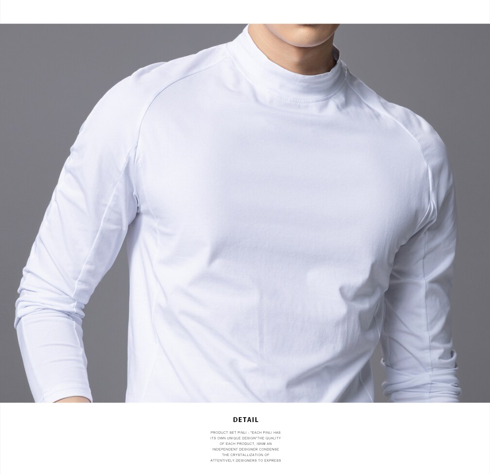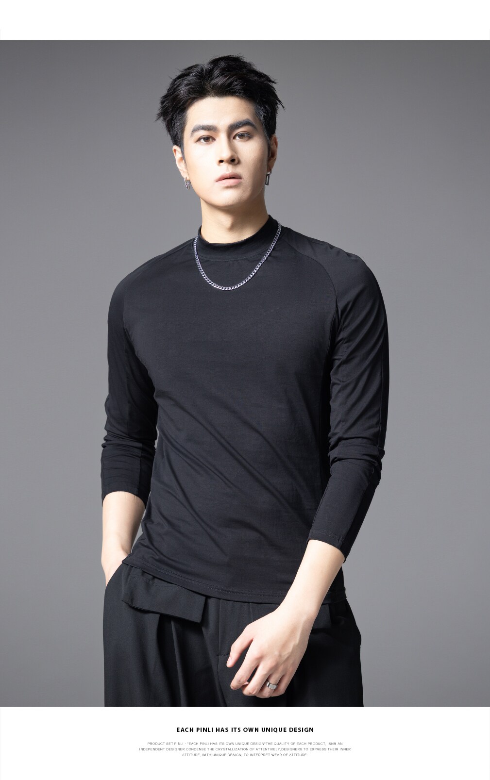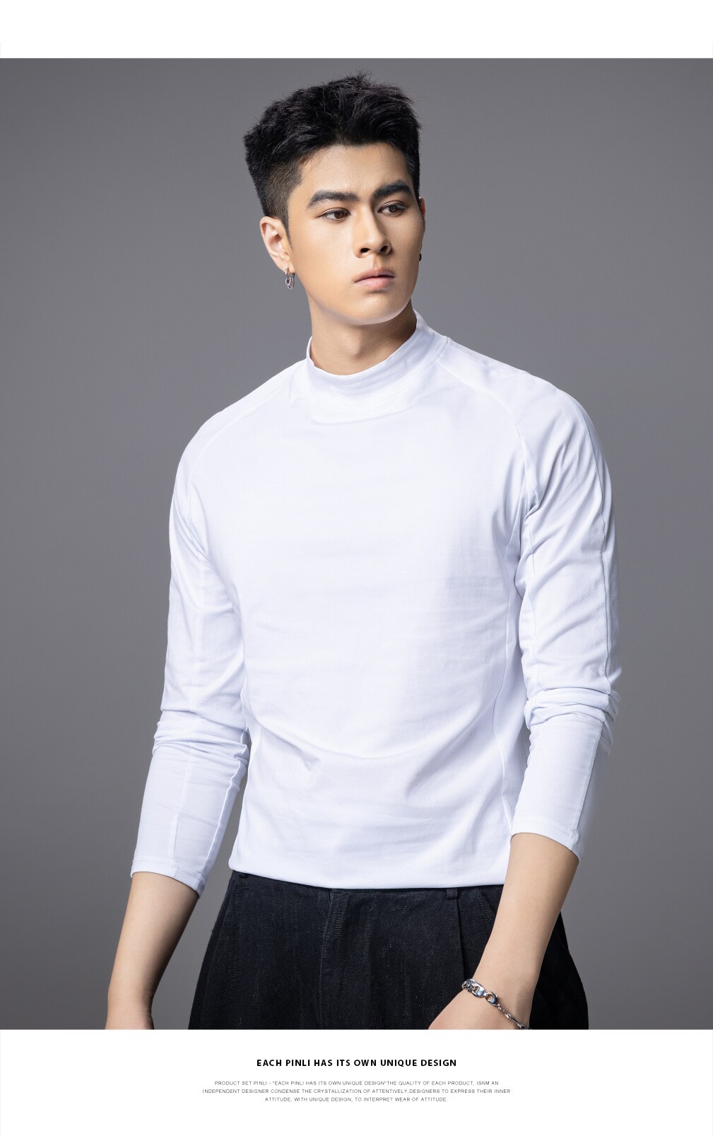 PINLI品立2025秋季新款立领纯色内搭长袖T恤男士休闲打底衫上衣潮B253111091