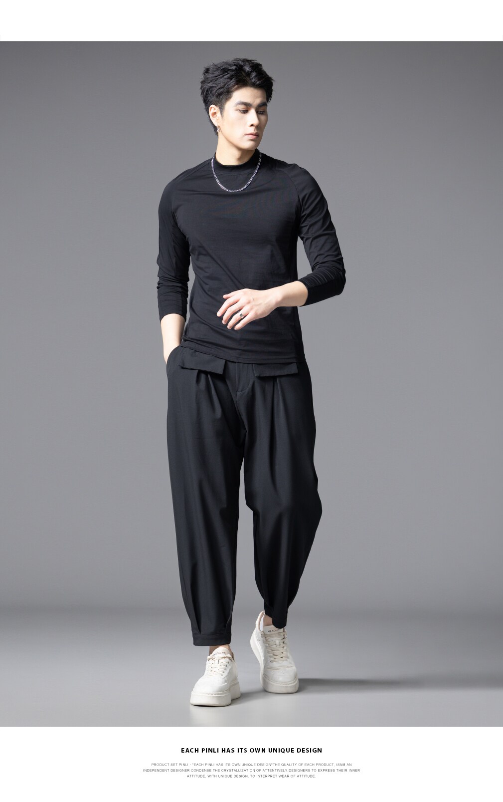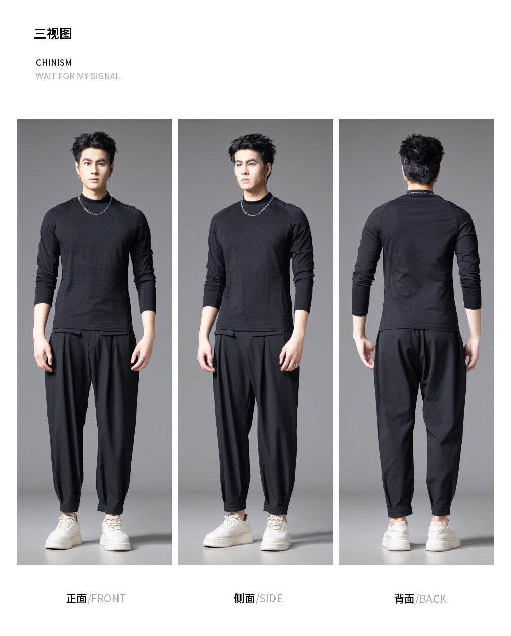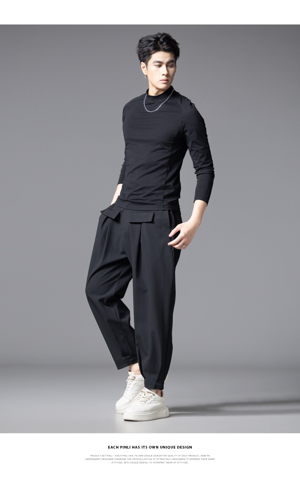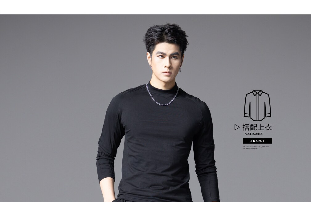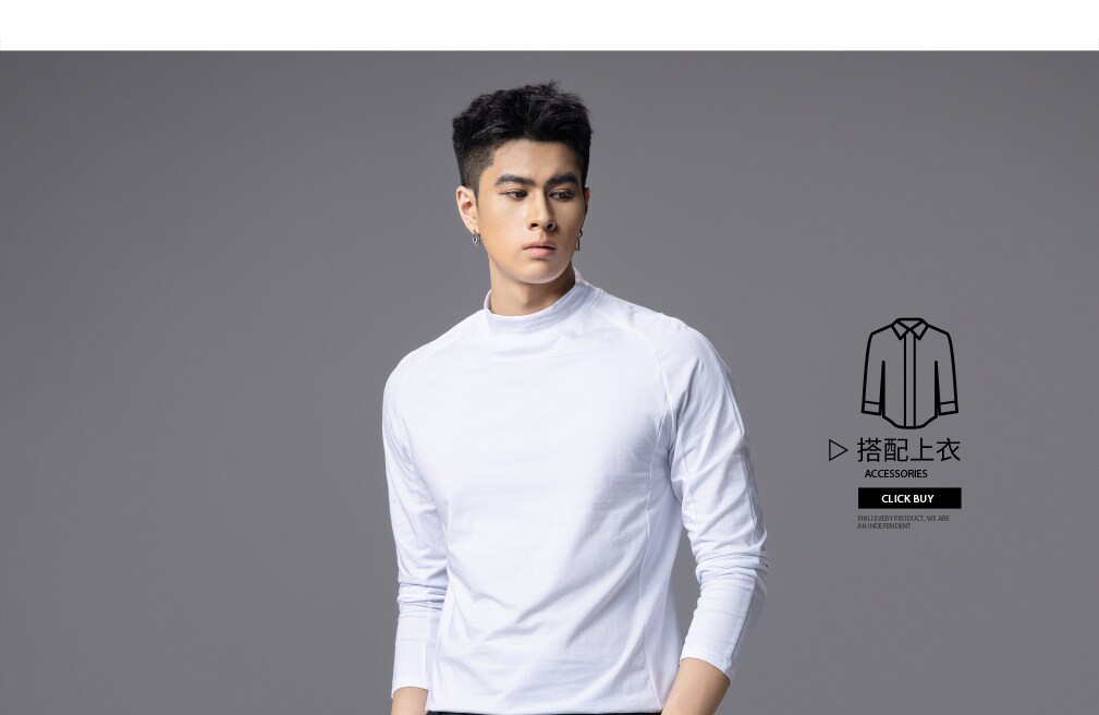PINLI品立2025秋季新款立领纯色内搭长袖T恤男士休闲打底衫上衣潮B253111091
