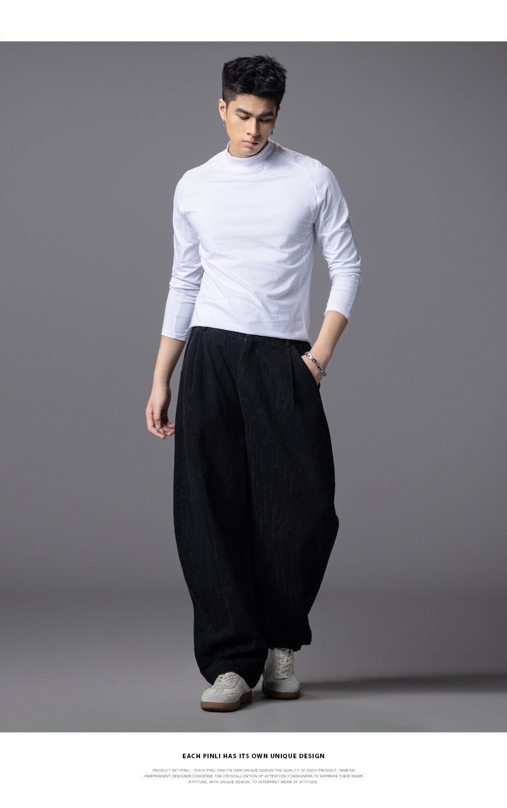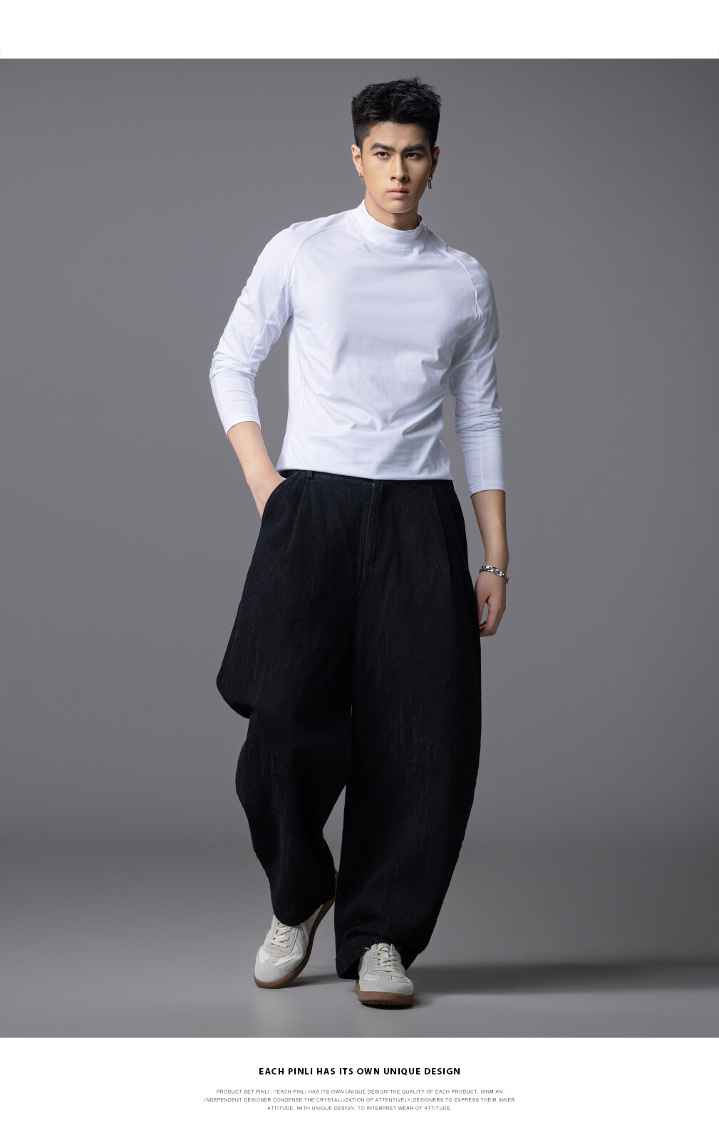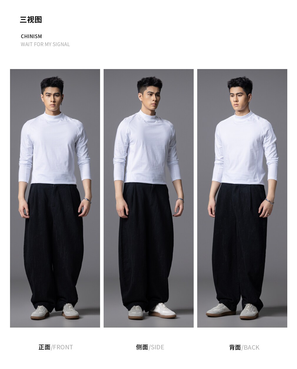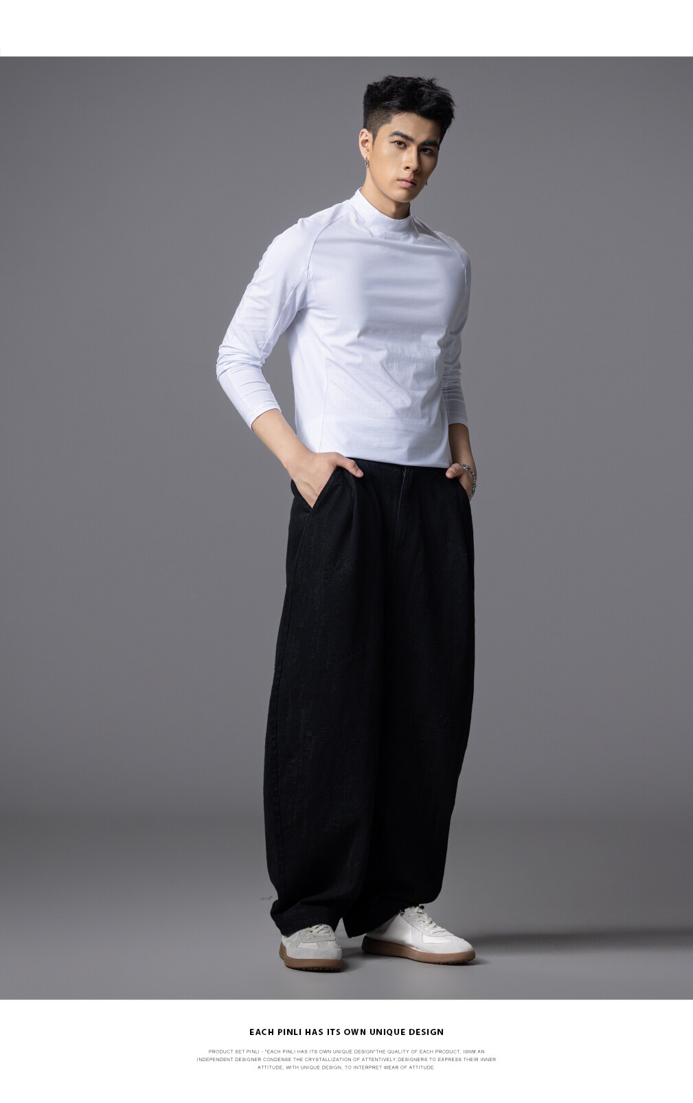 PINLI品立2025秋季新款立领纯色内搭长袖T恤男士休闲打底衫上衣潮B253111091