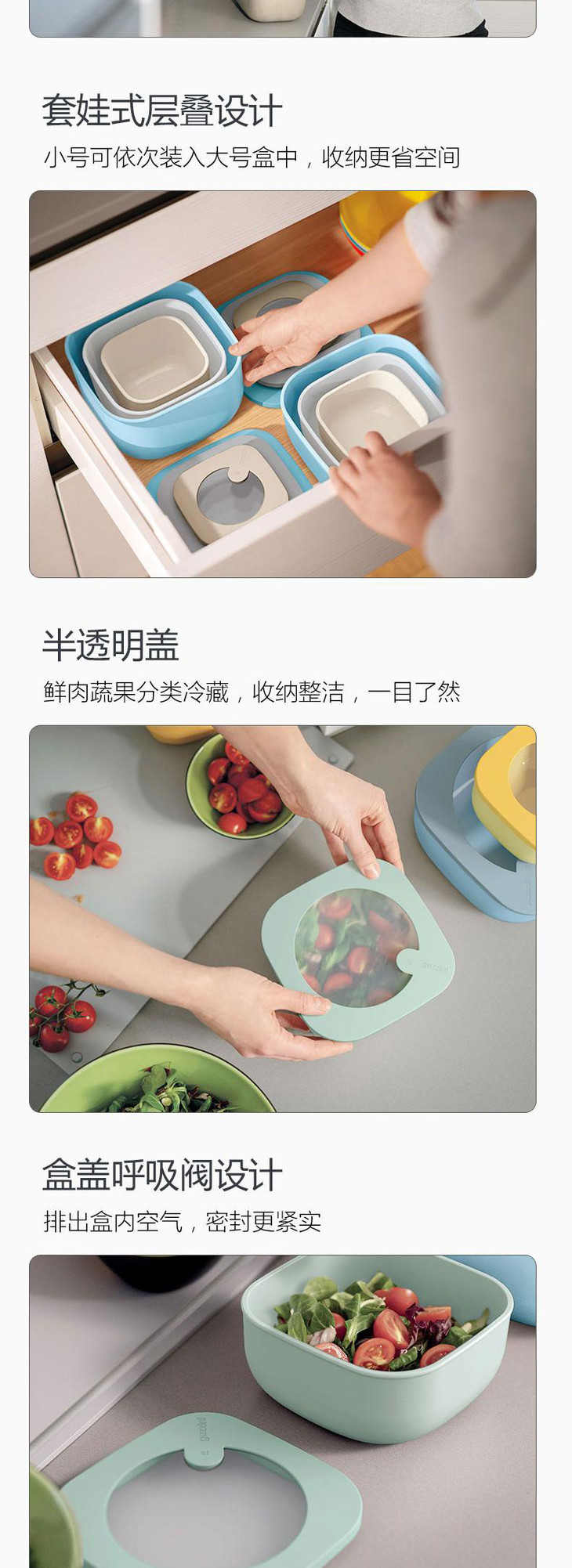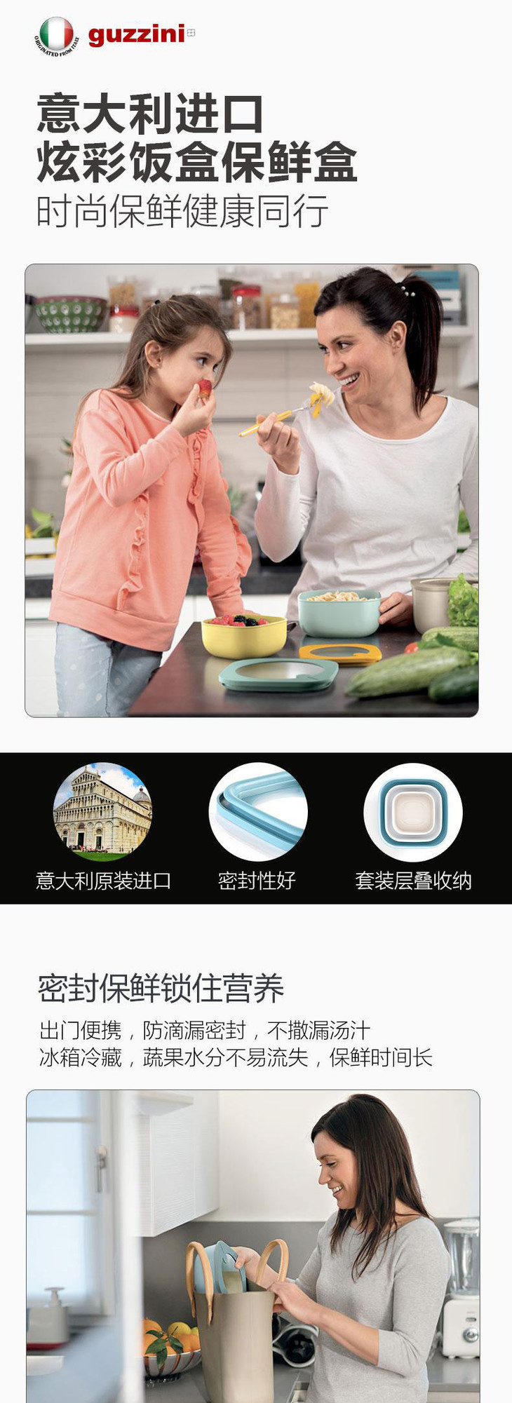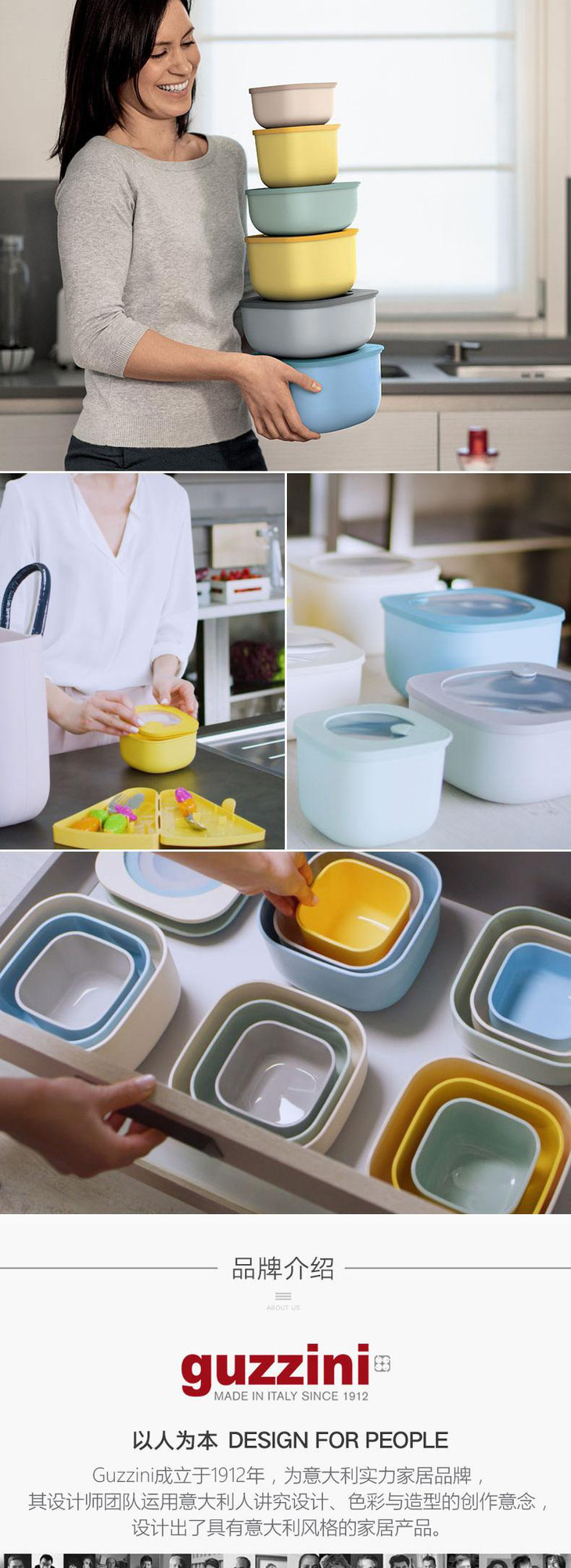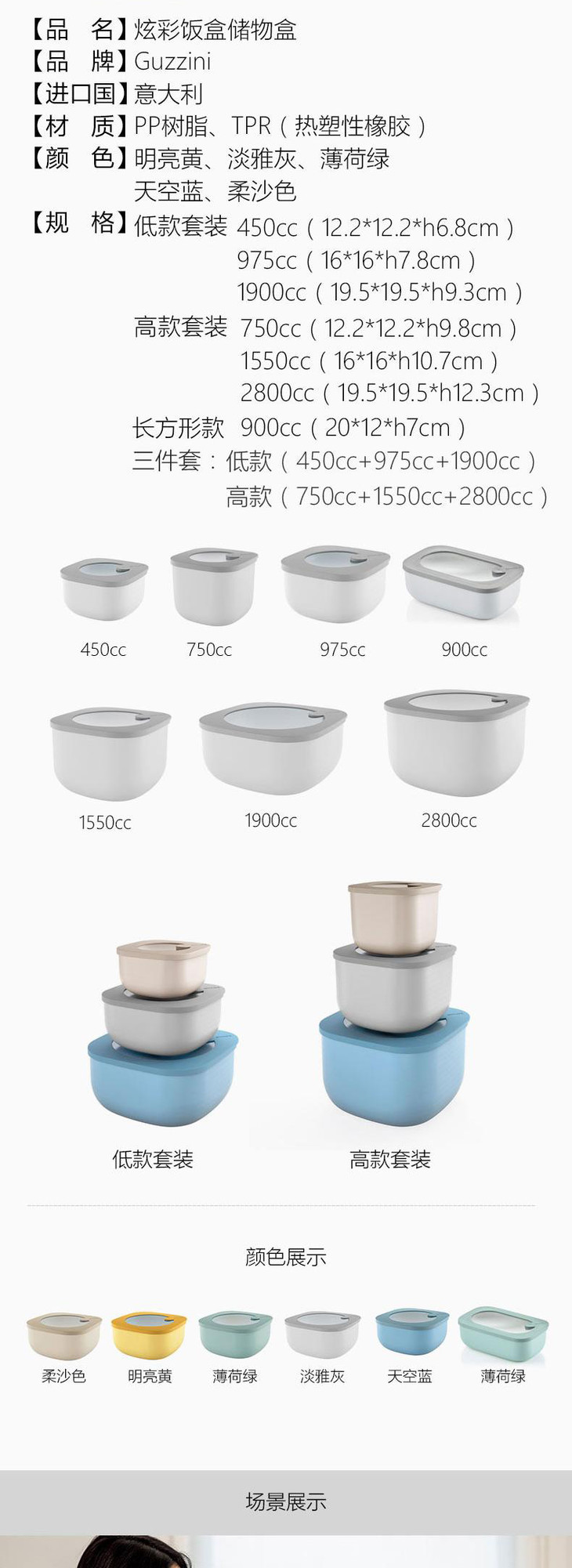 【6F】利快(Guzzini)收纳盒意大利炫彩饭盒储物盒保鲜盒 低款三件套 19.5*19.5*h9.3cm 45