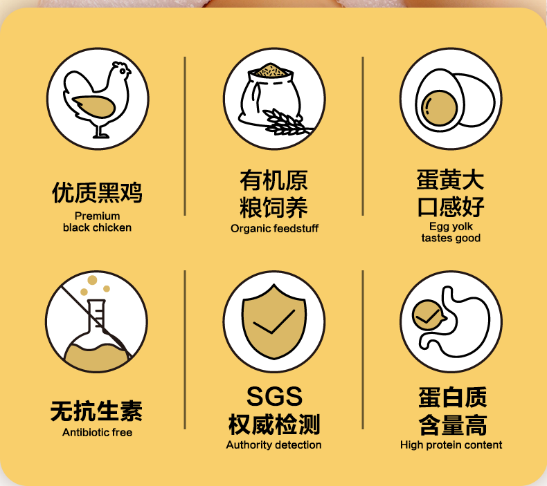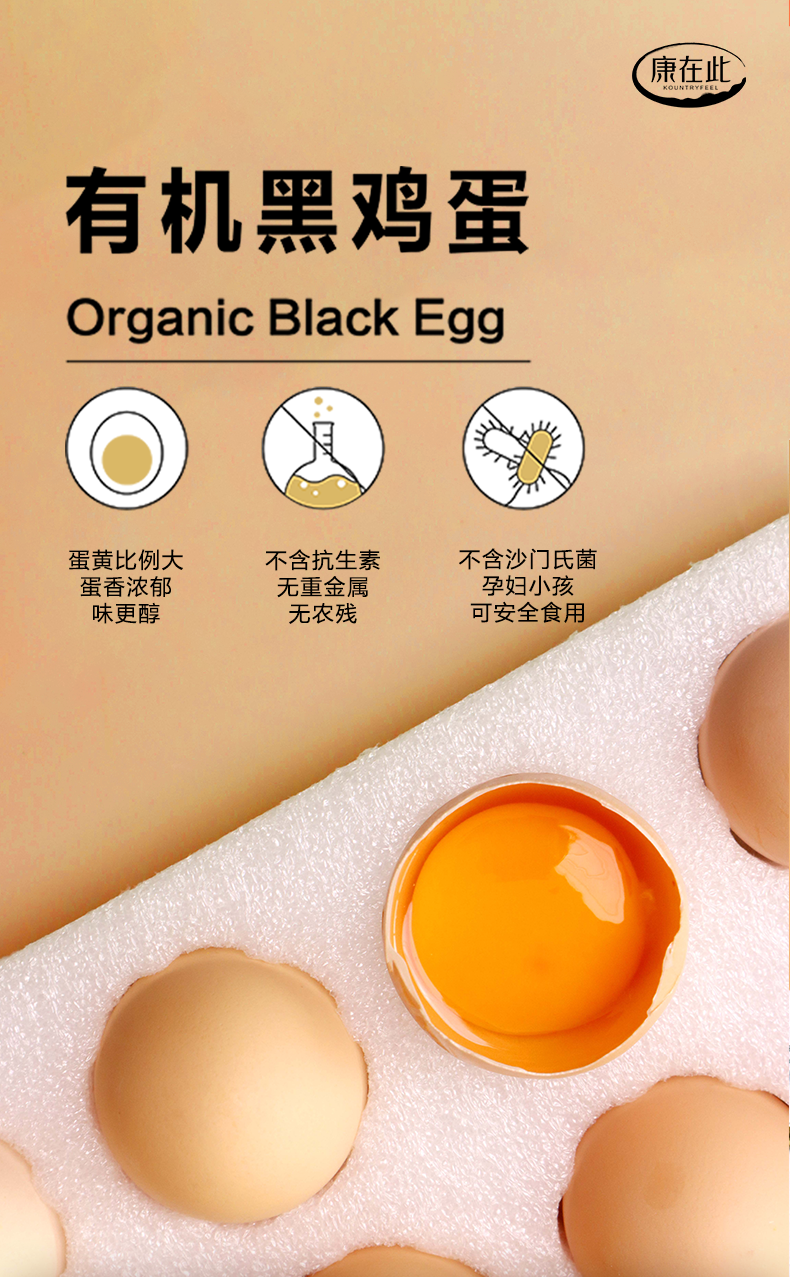 (季卡)康在此有机黑鸡蛋 无沙门氏菌 橘黄色大蛋黄 高蛋白 共90枚/分三次配送 每次配送30枚