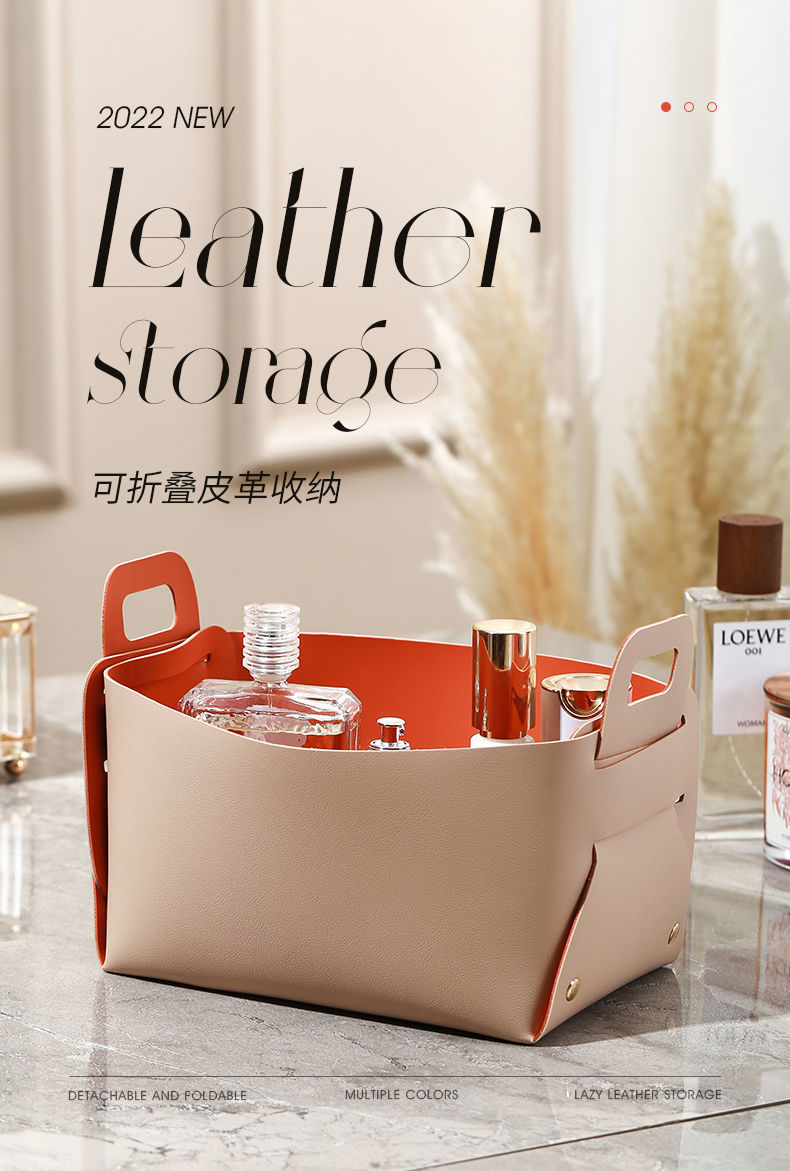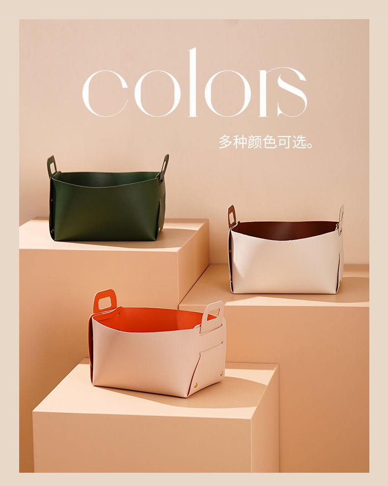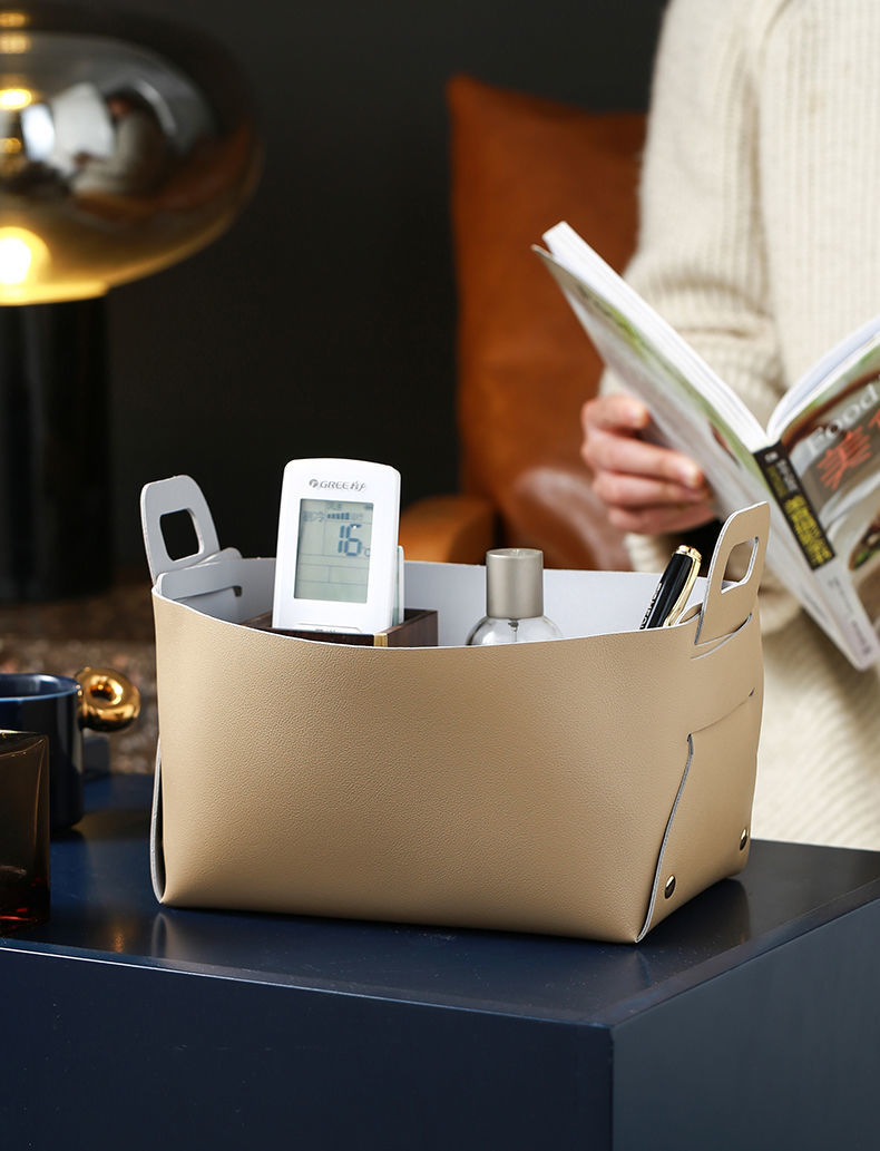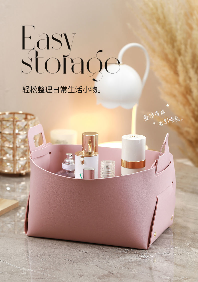 轻奢客厅玄关桌面皮质收纳盒钥匙遥控器化妆品口红杂物整理收纳筐