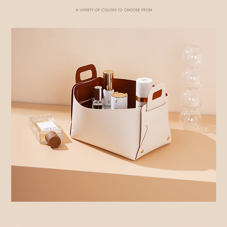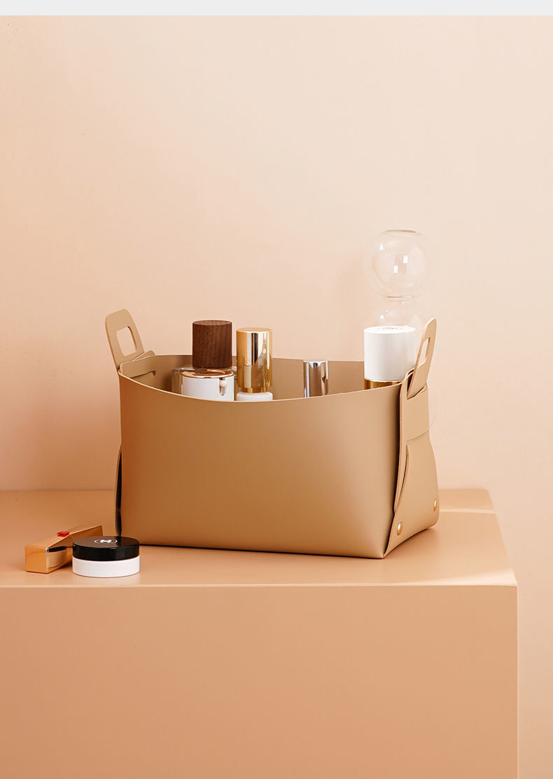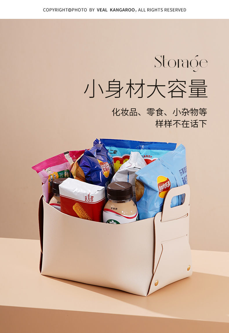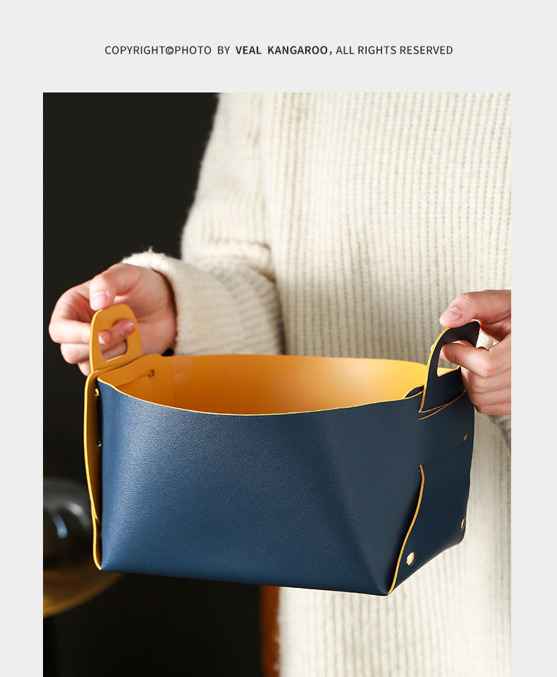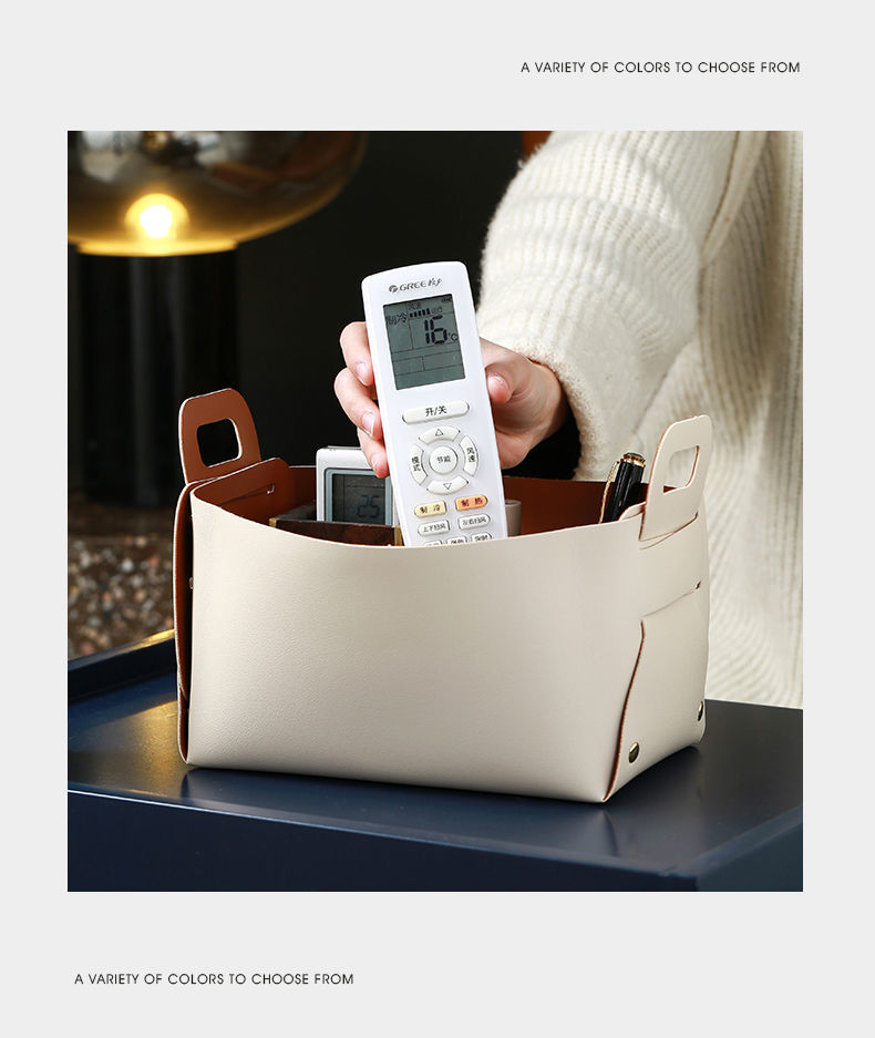 轻奢客厅玄关桌面皮质收纳盒钥匙遥控器化妆品口红杂物整理收纳筐