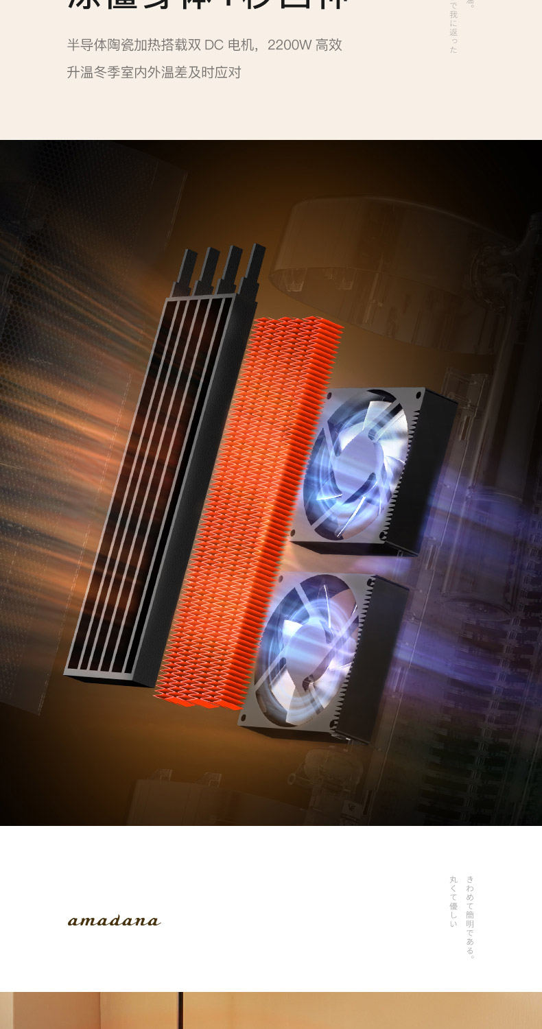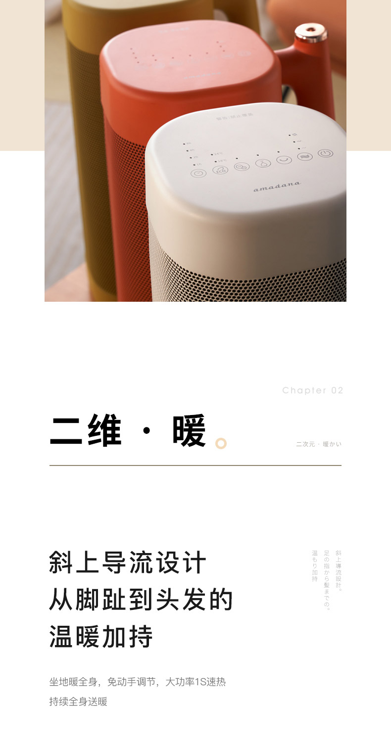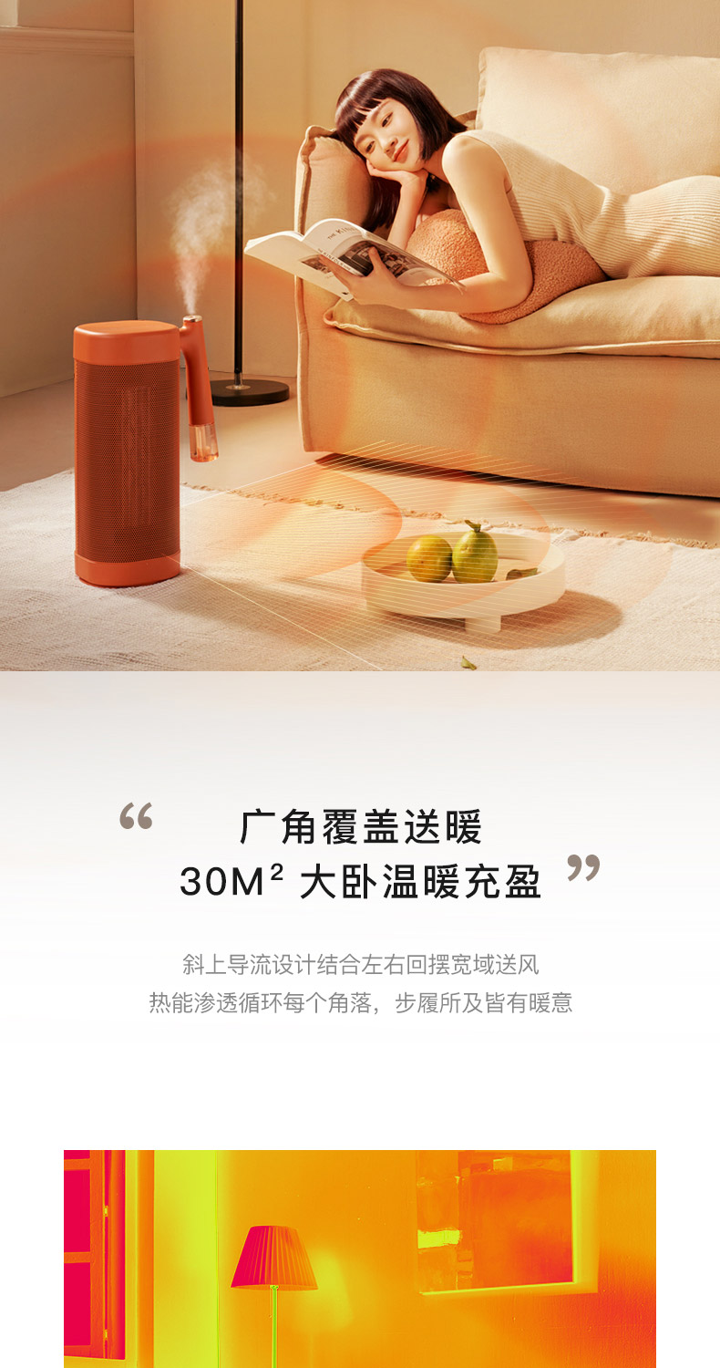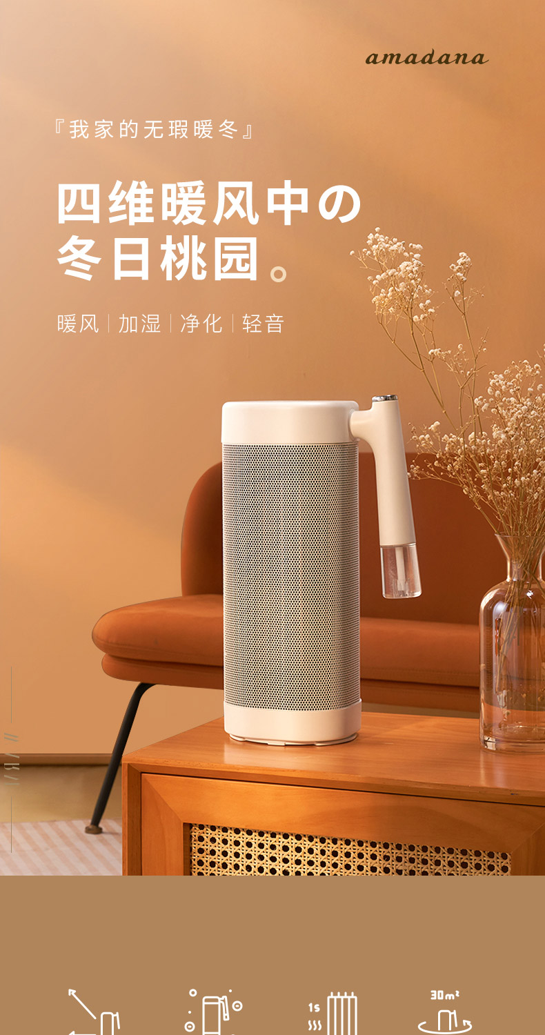 【四季冷暖双用取暖器】amadana加湿净化PTC取暖器A-HP2207UR 斜上导流出风 负离子净化加湿 30㎡广角送暖 1S暖意送达 2200W大功率 15H定时