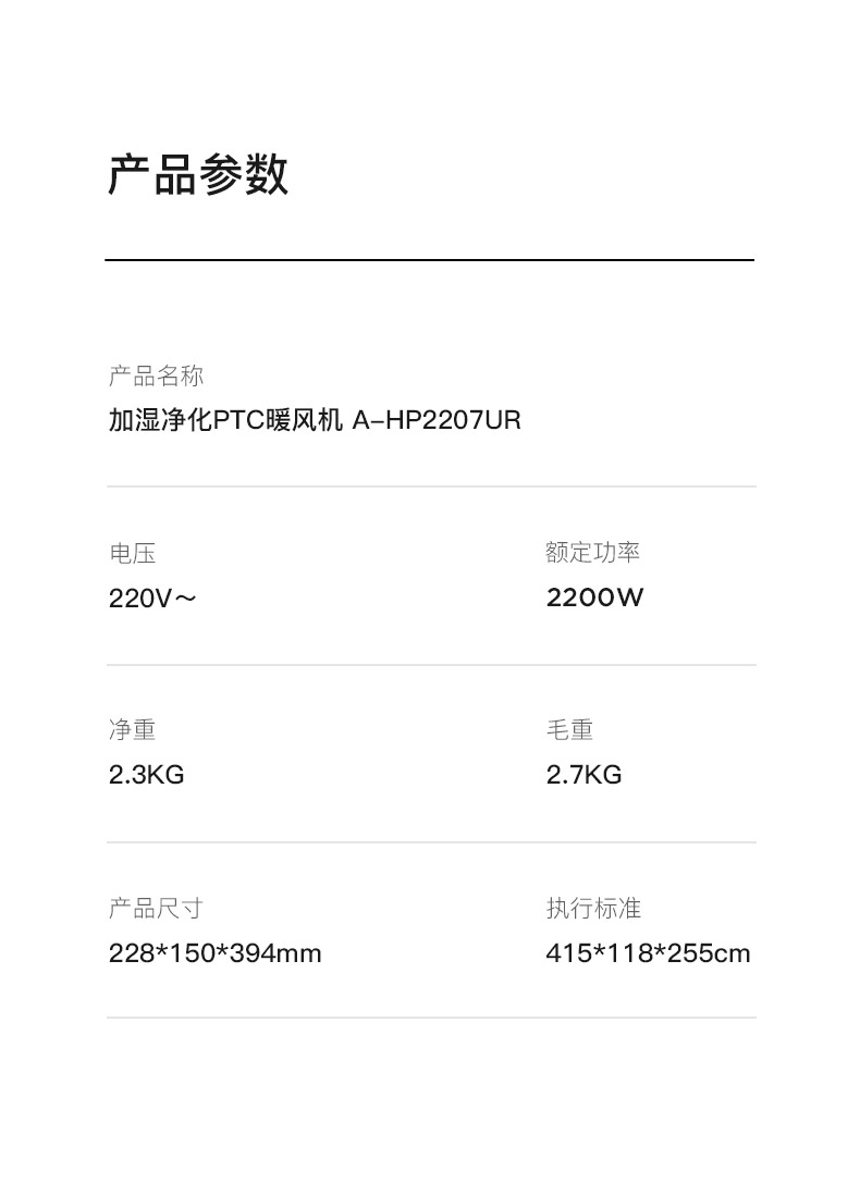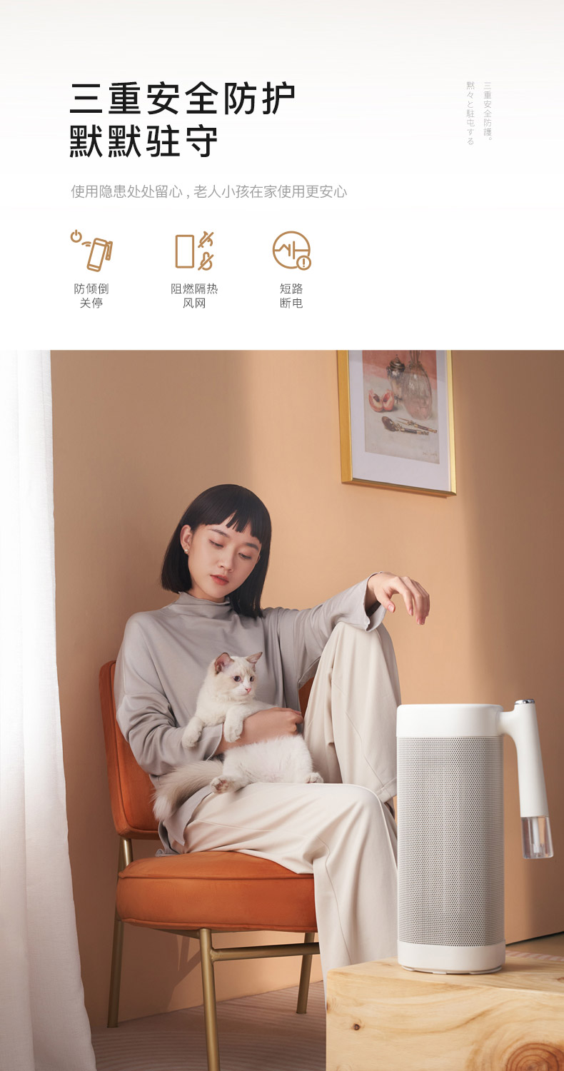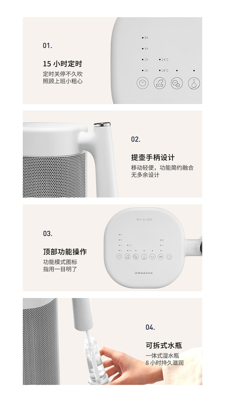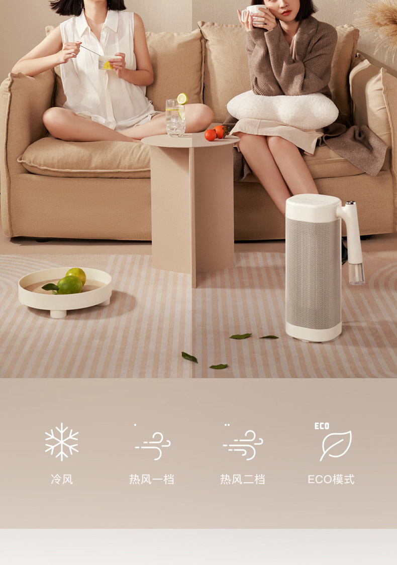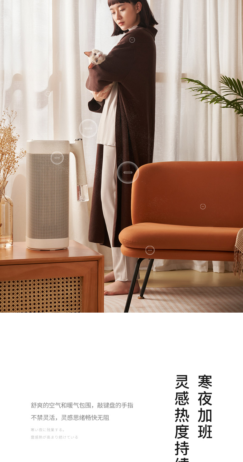【四季冷暖双用取暖器】amadana加湿净化PTC取暖器A-HP2207UR 斜上导流出风 负离子净化加湿 30㎡广角送暖 1S暖意送达 2200W大功率 15H定时