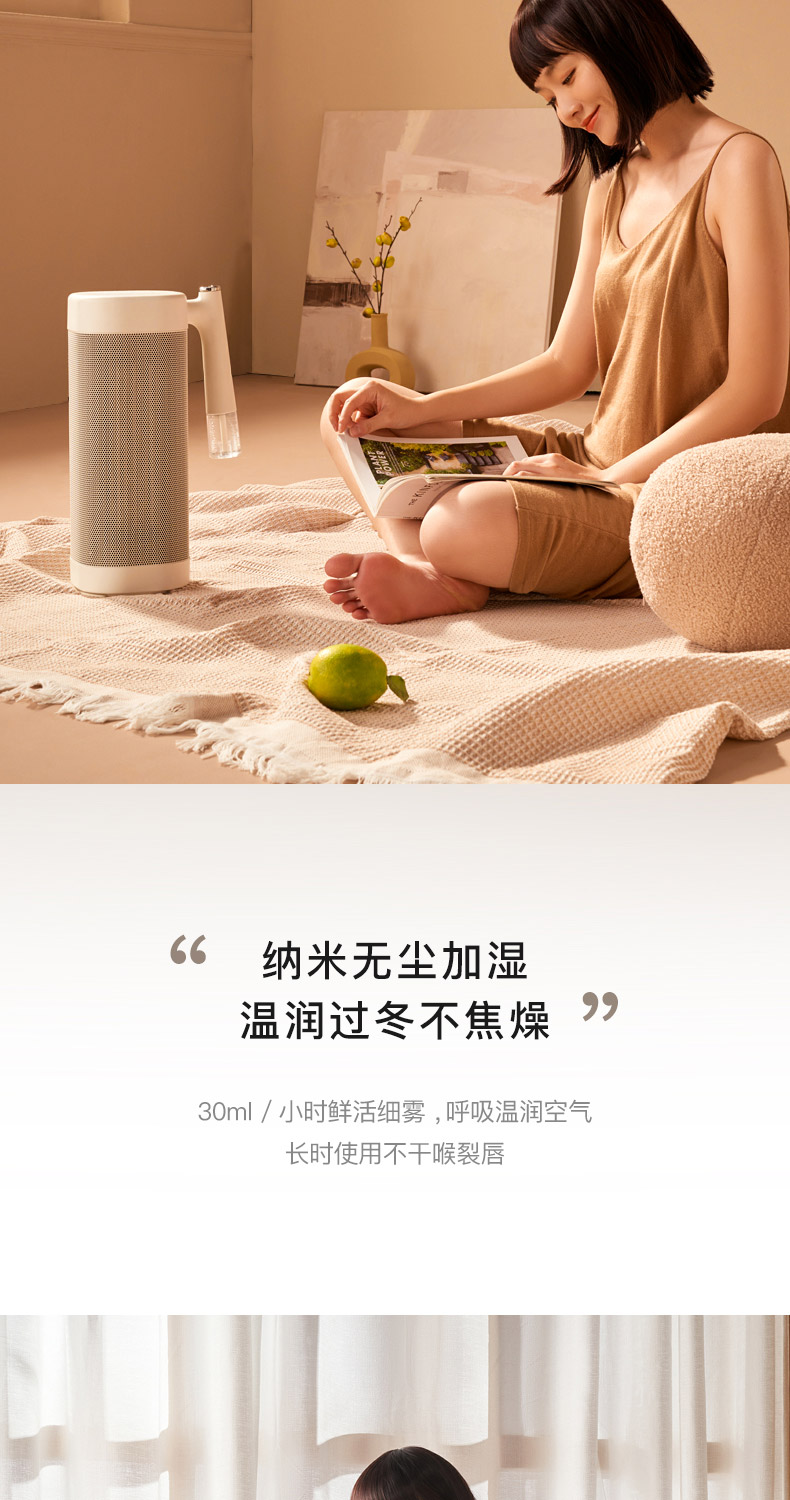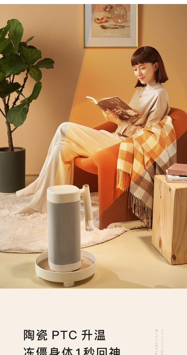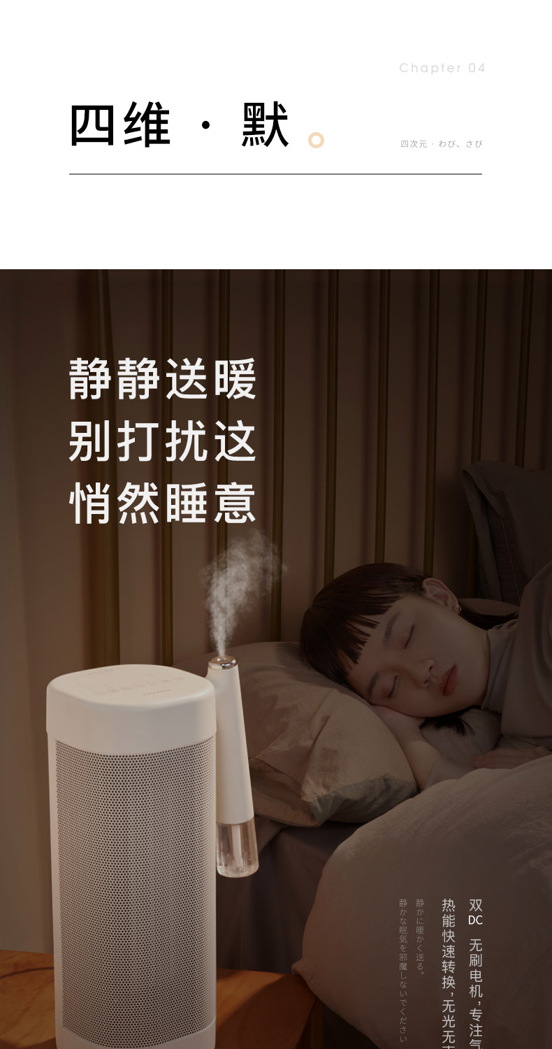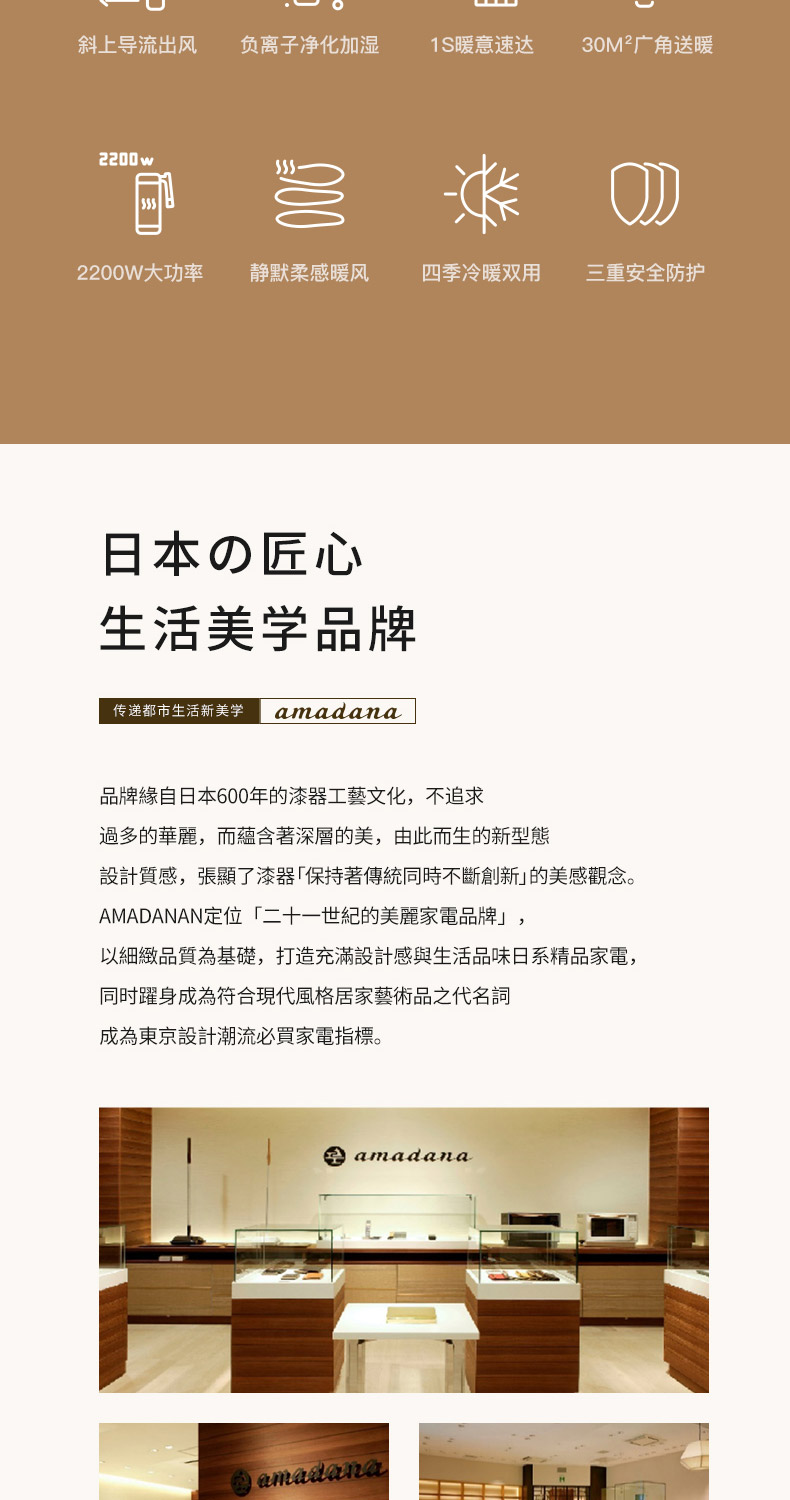 【四季冷暖双用取暖器】amadana加湿净化PTC取暖器A-HP2207UR 斜上导流出风 负离子净化加湿 30㎡广角送暖 1S暖意送达 2200W大功率 15H定时