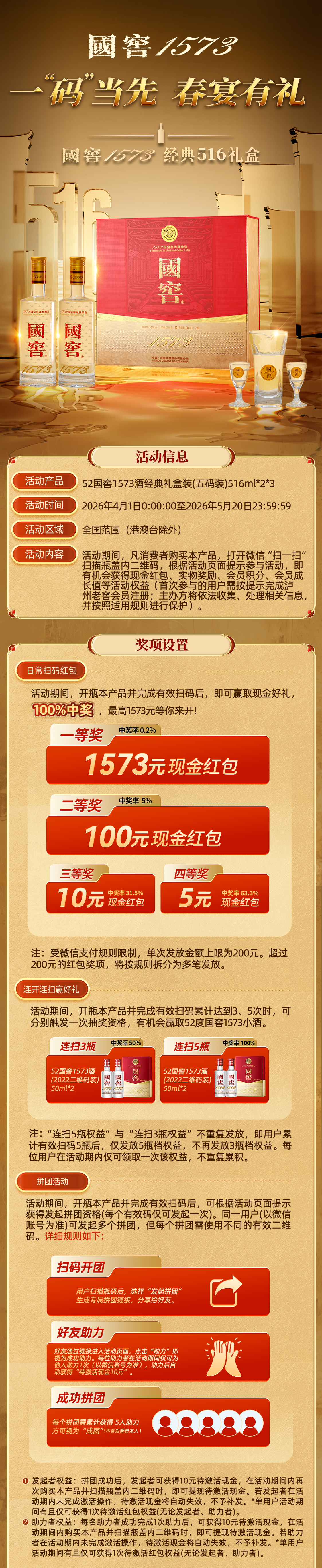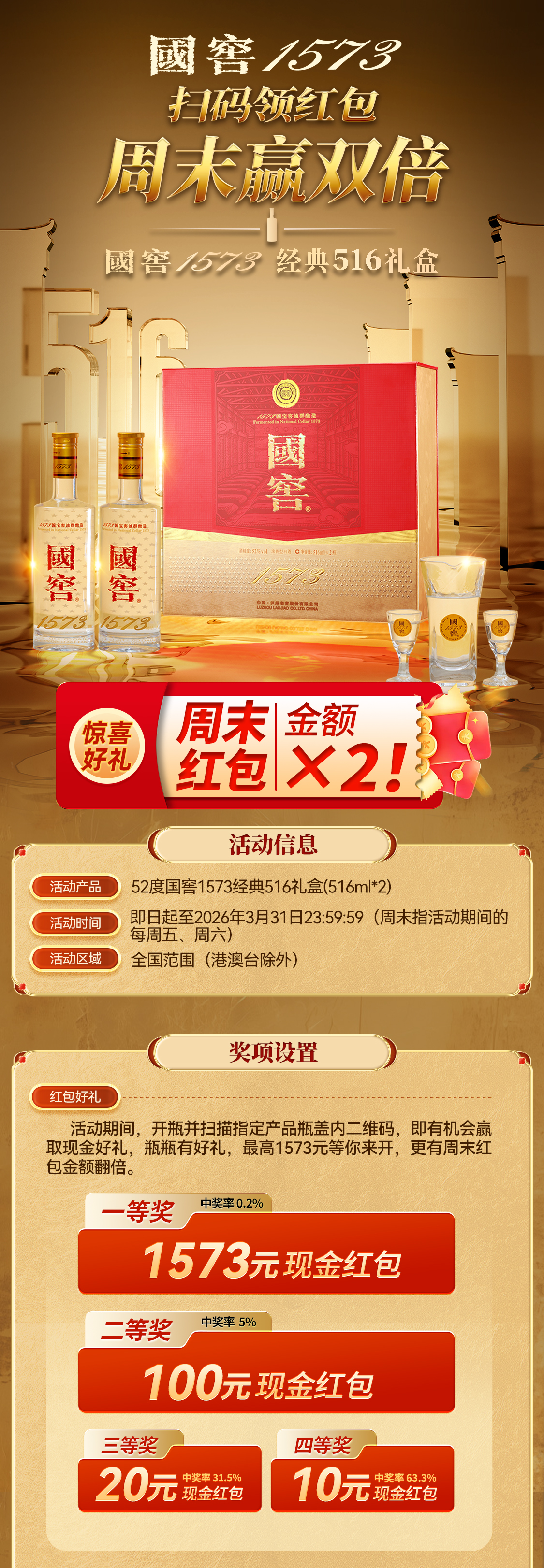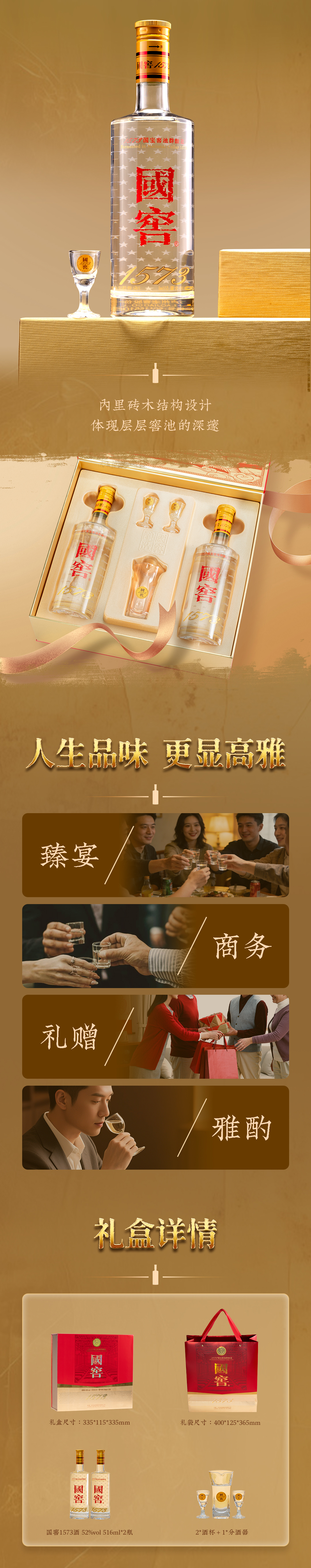 【扫码有好礼】52度国窖1573酒经典礼盒装(五码装)516ml*2 泸州老窖官方旗舰店