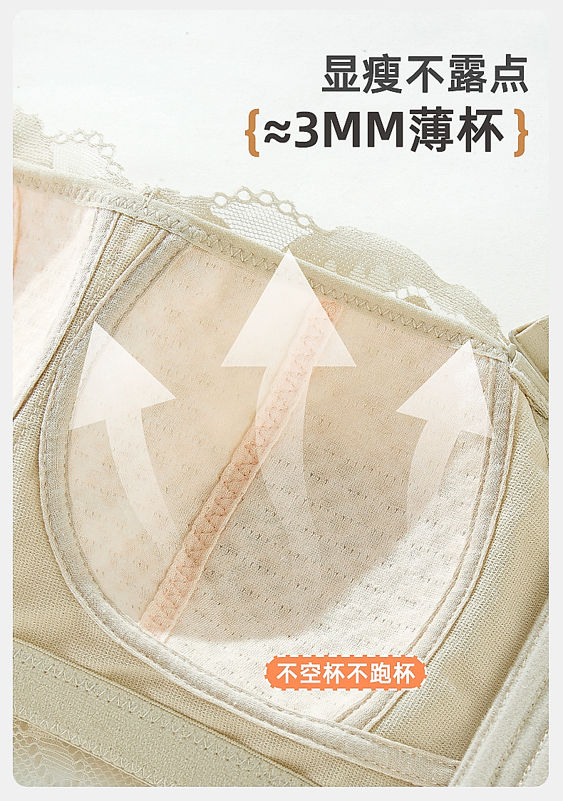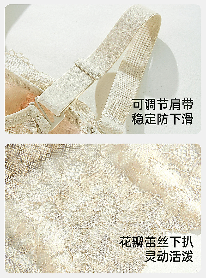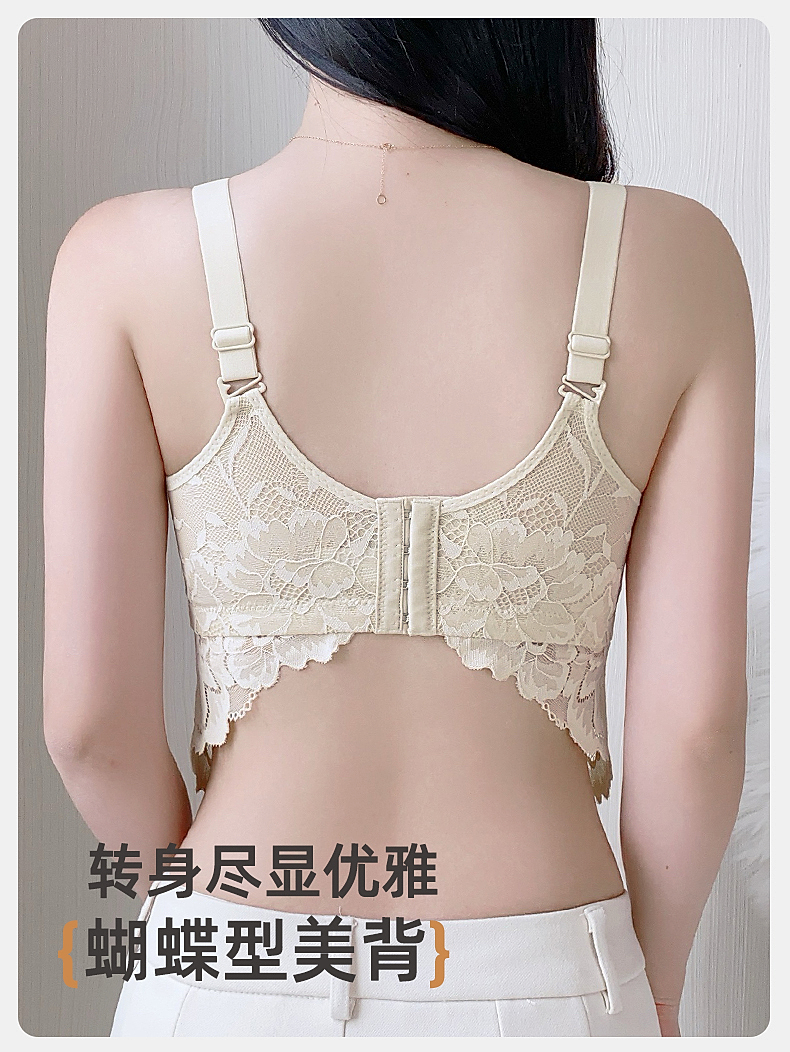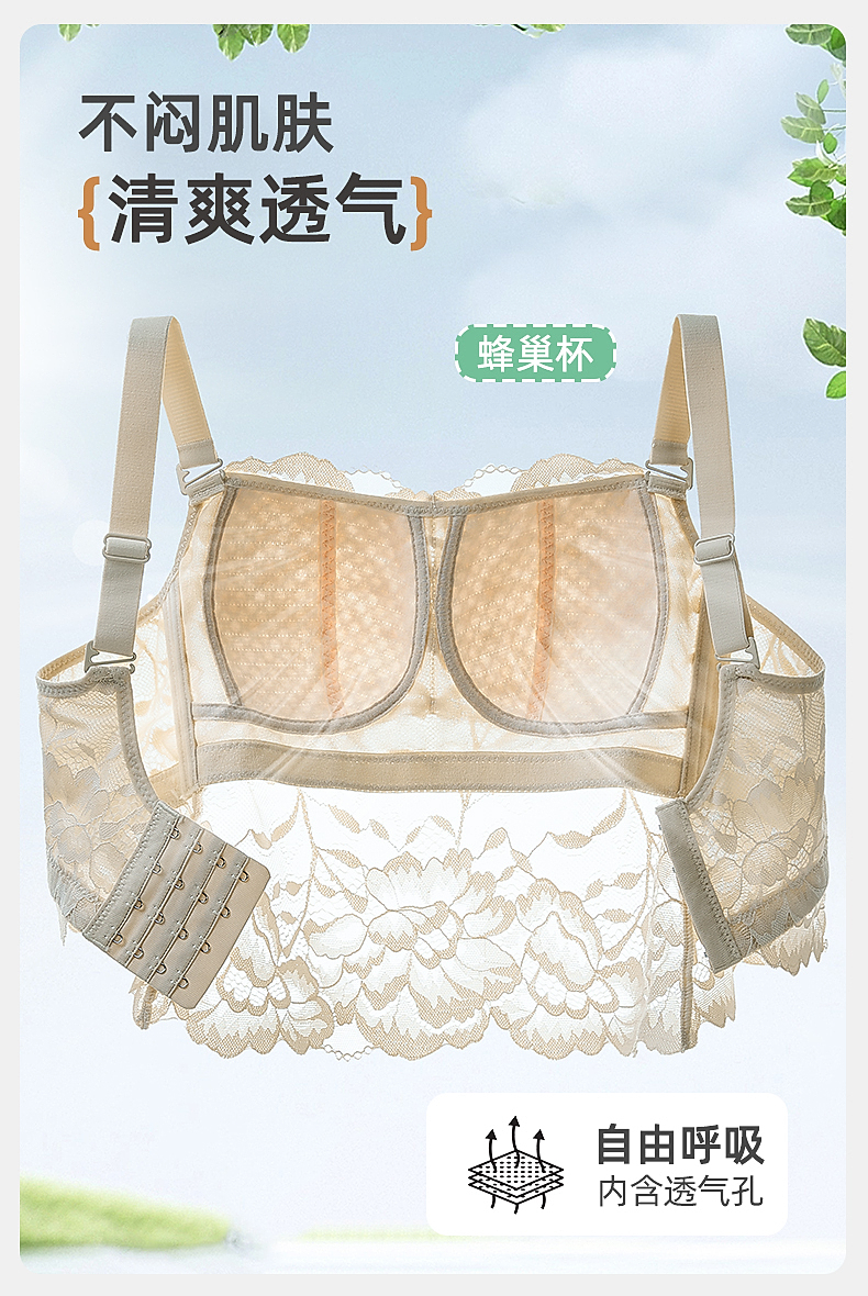 雅黛丽内衣女吊带蕾丝大胸显小收副乳防下垂大码文胸罩夏季薄款