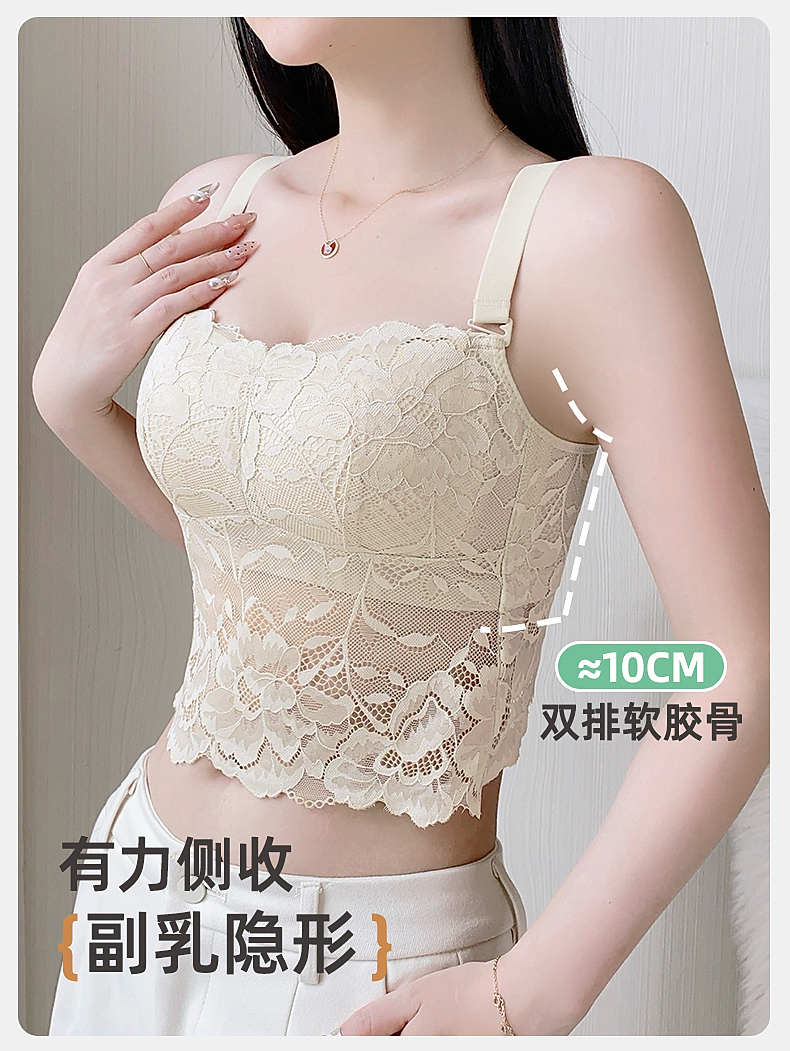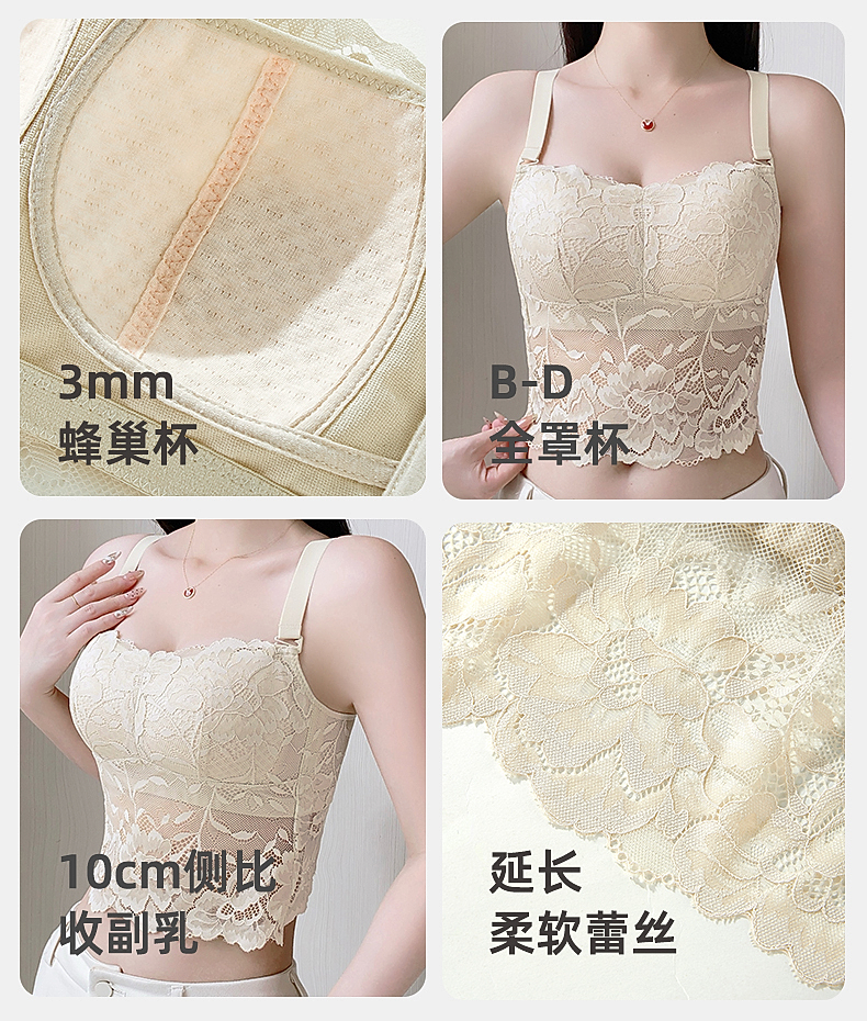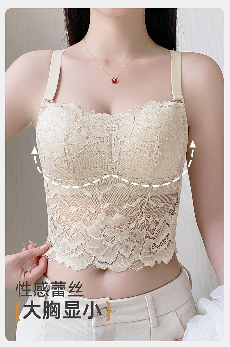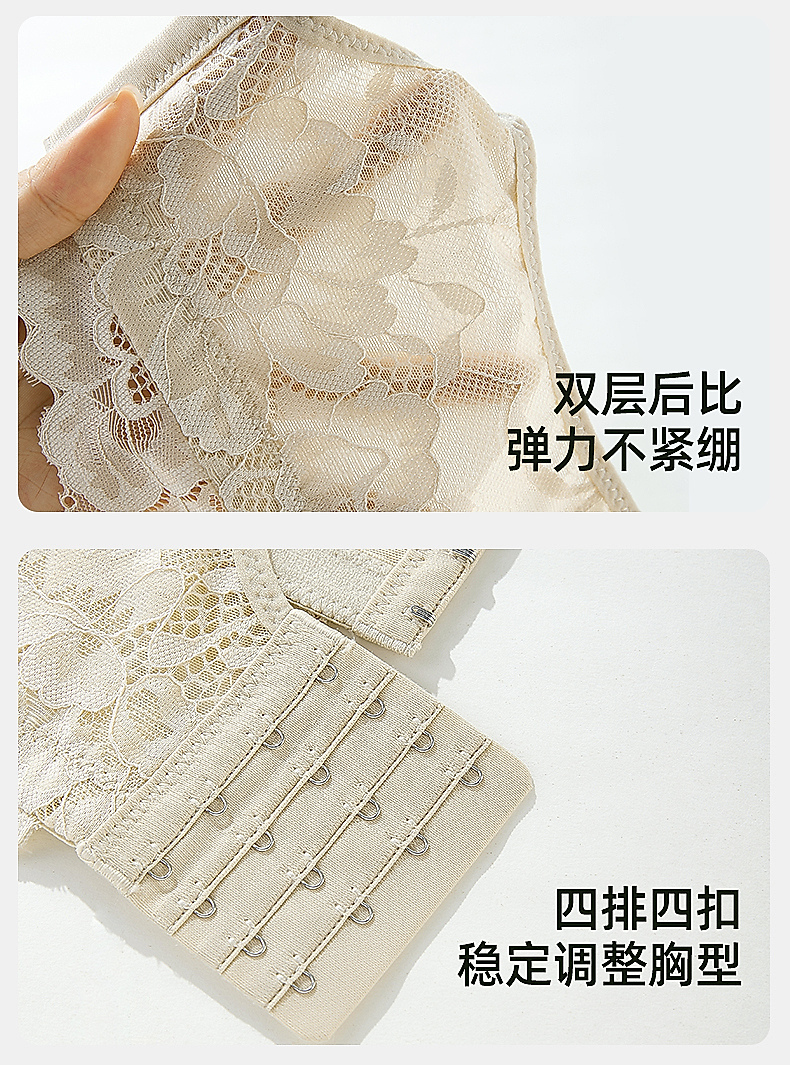 雅黛丽内衣女吊带蕾丝大胸显小收副乳防下垂大码文胸罩夏季薄款