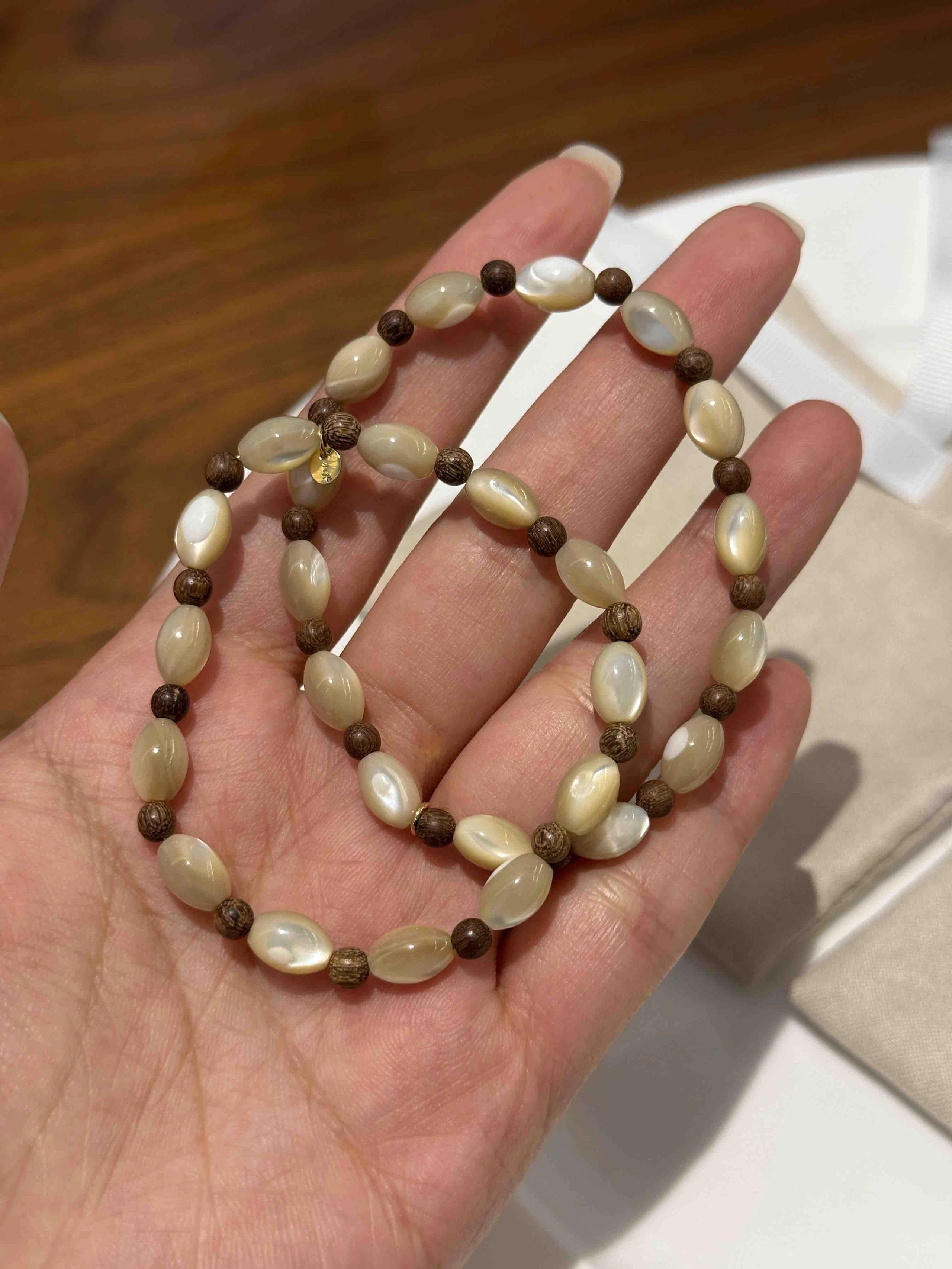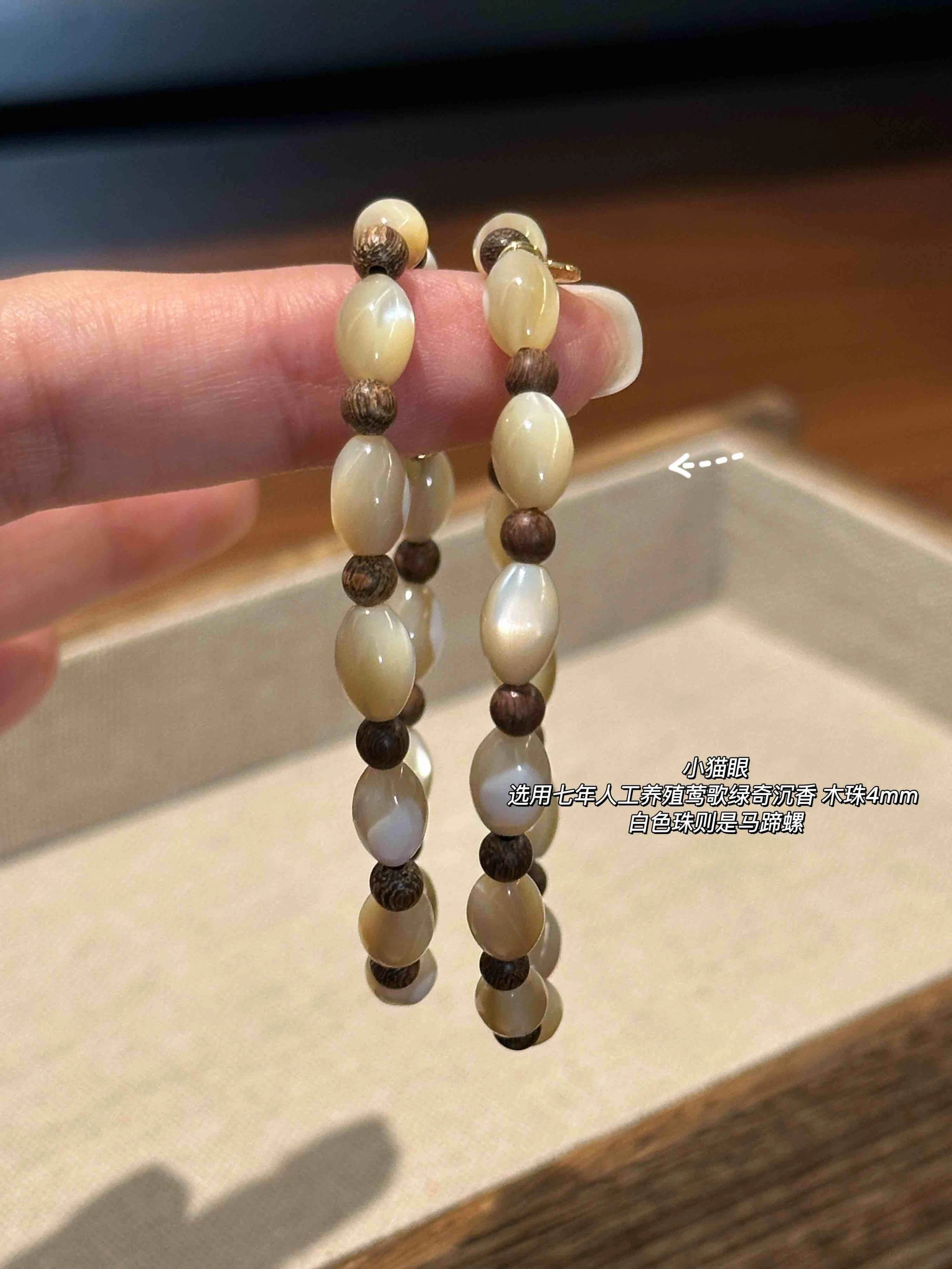 【材质】小猫眼:沉香木珠+马蹄螺
