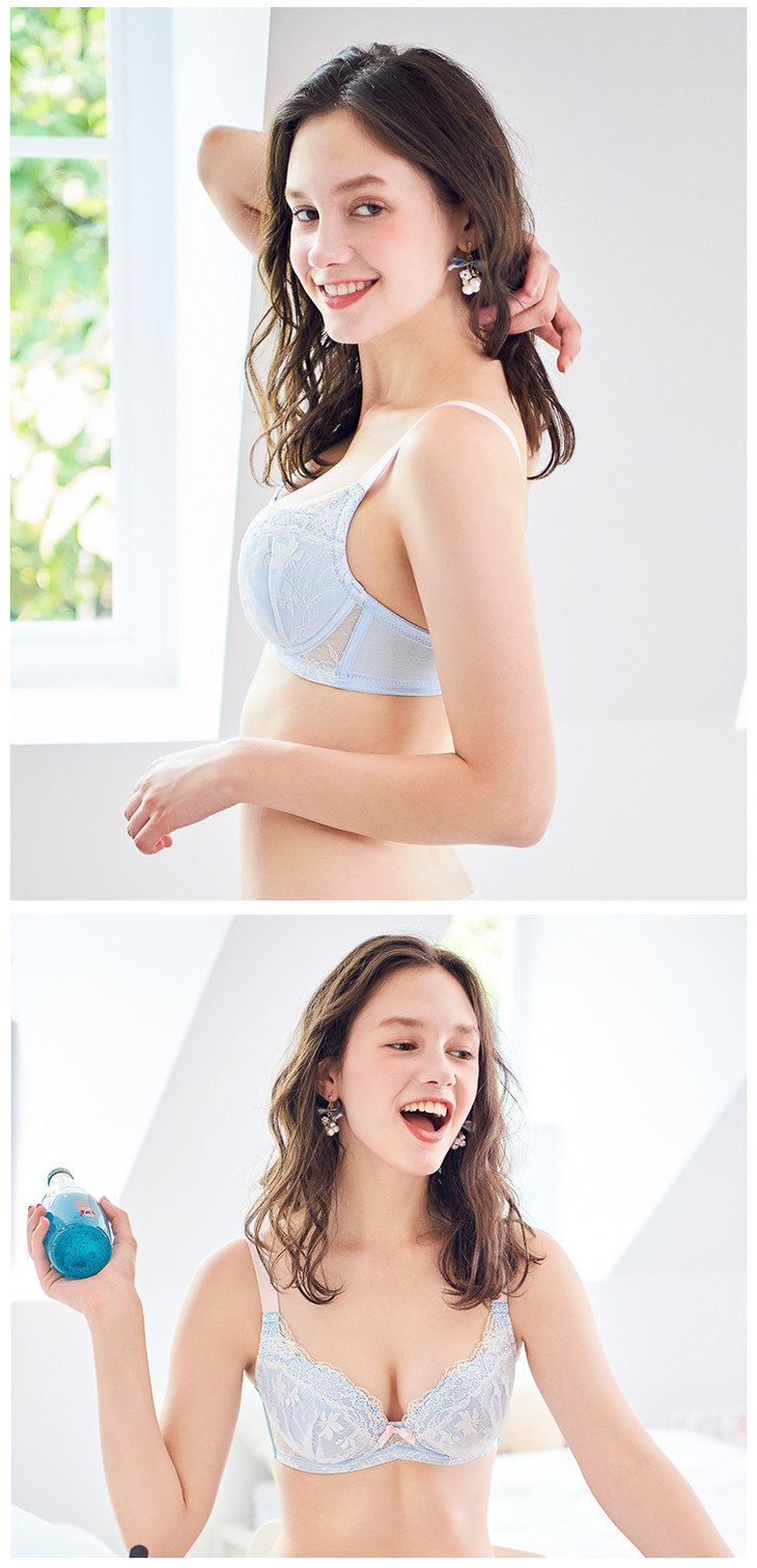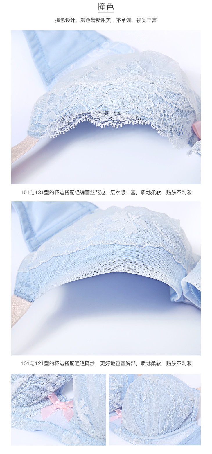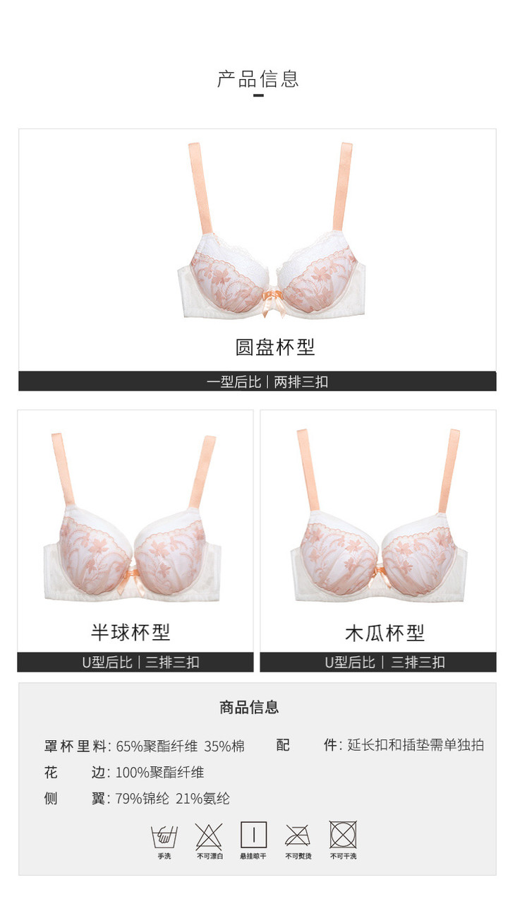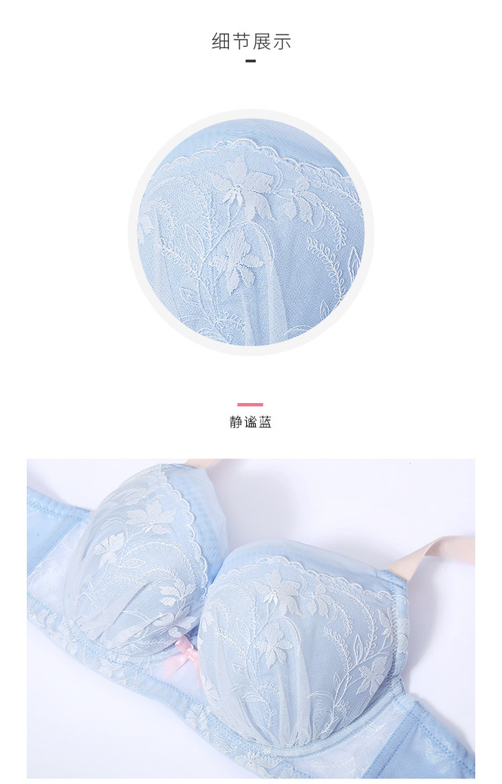 奶糖派分胸型 知秋 清新少女大罩杯文胸 刺绣内衣圆盘半球木瓜