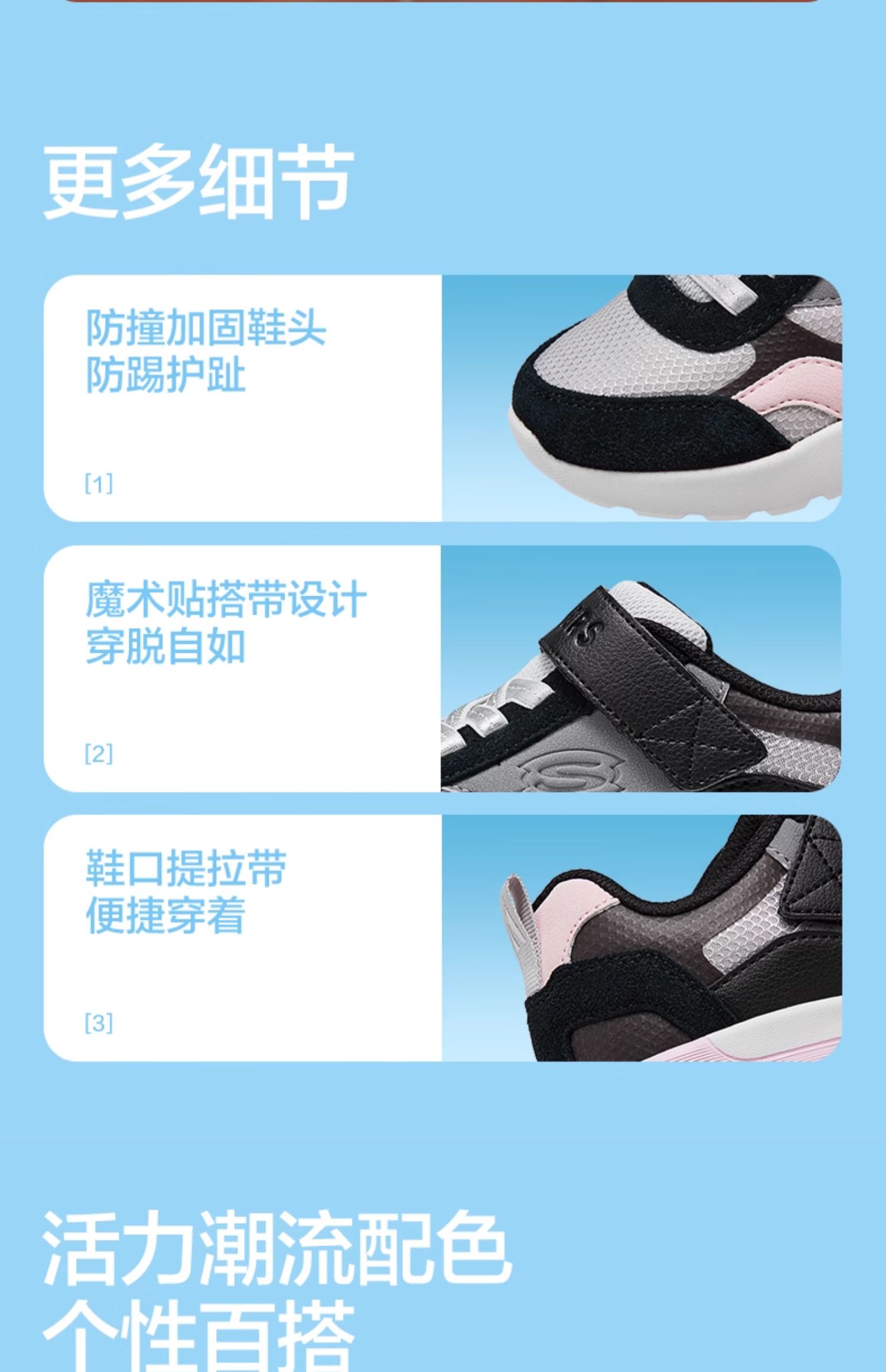 Skechers斯凯奇儿童时尚低帮运动板鞋女童春夏厚底缓震耐磨休闲鞋405676L