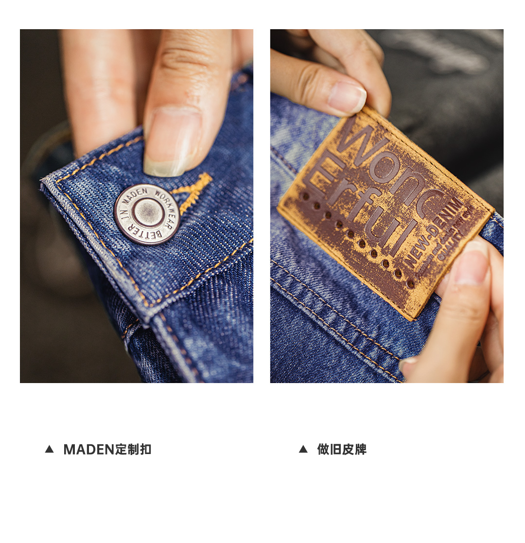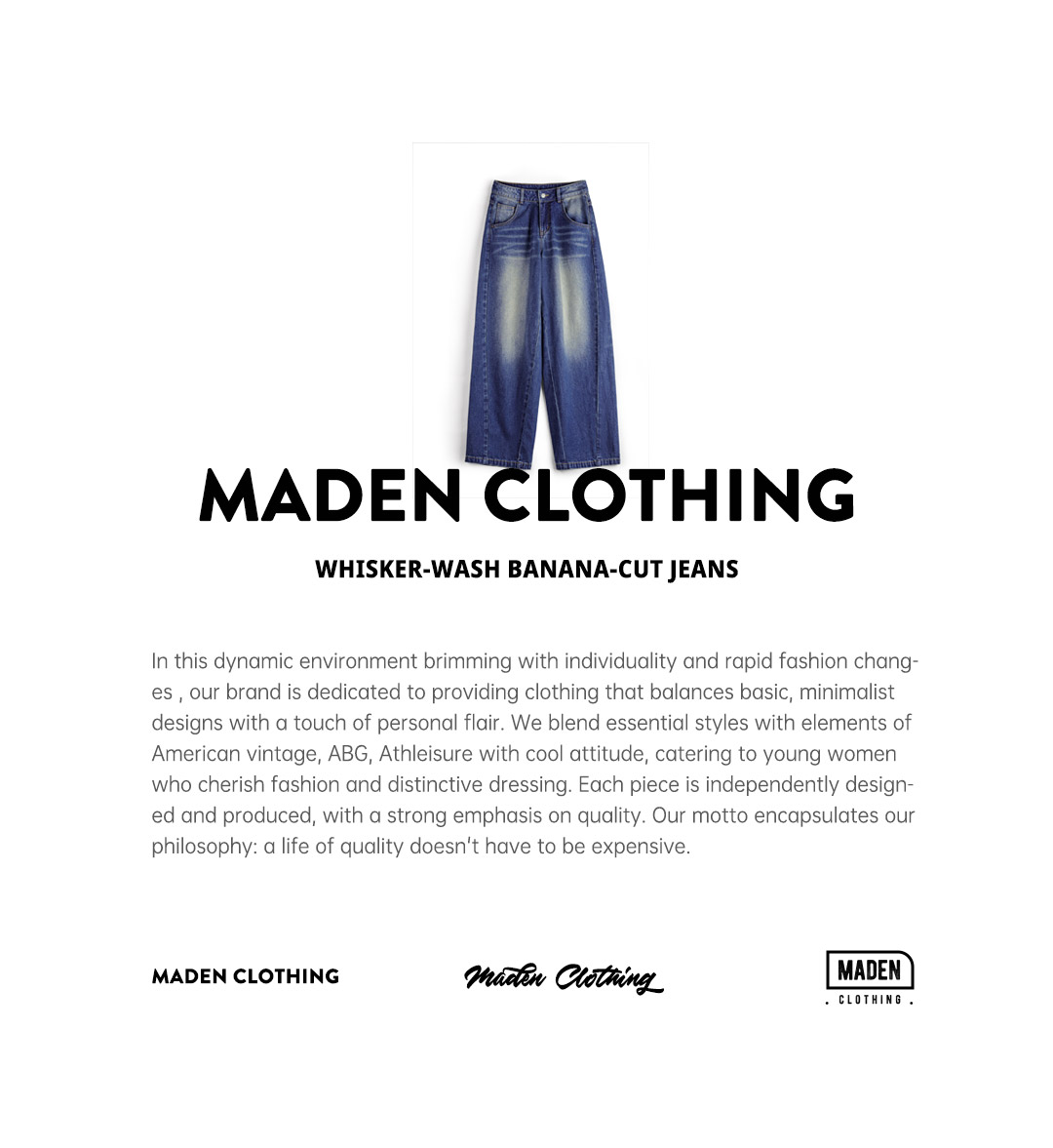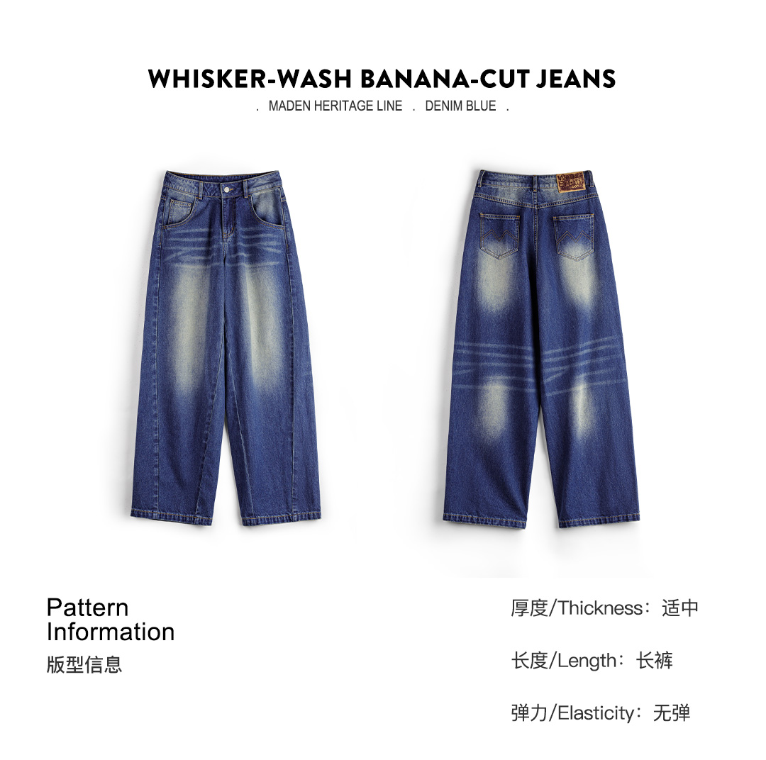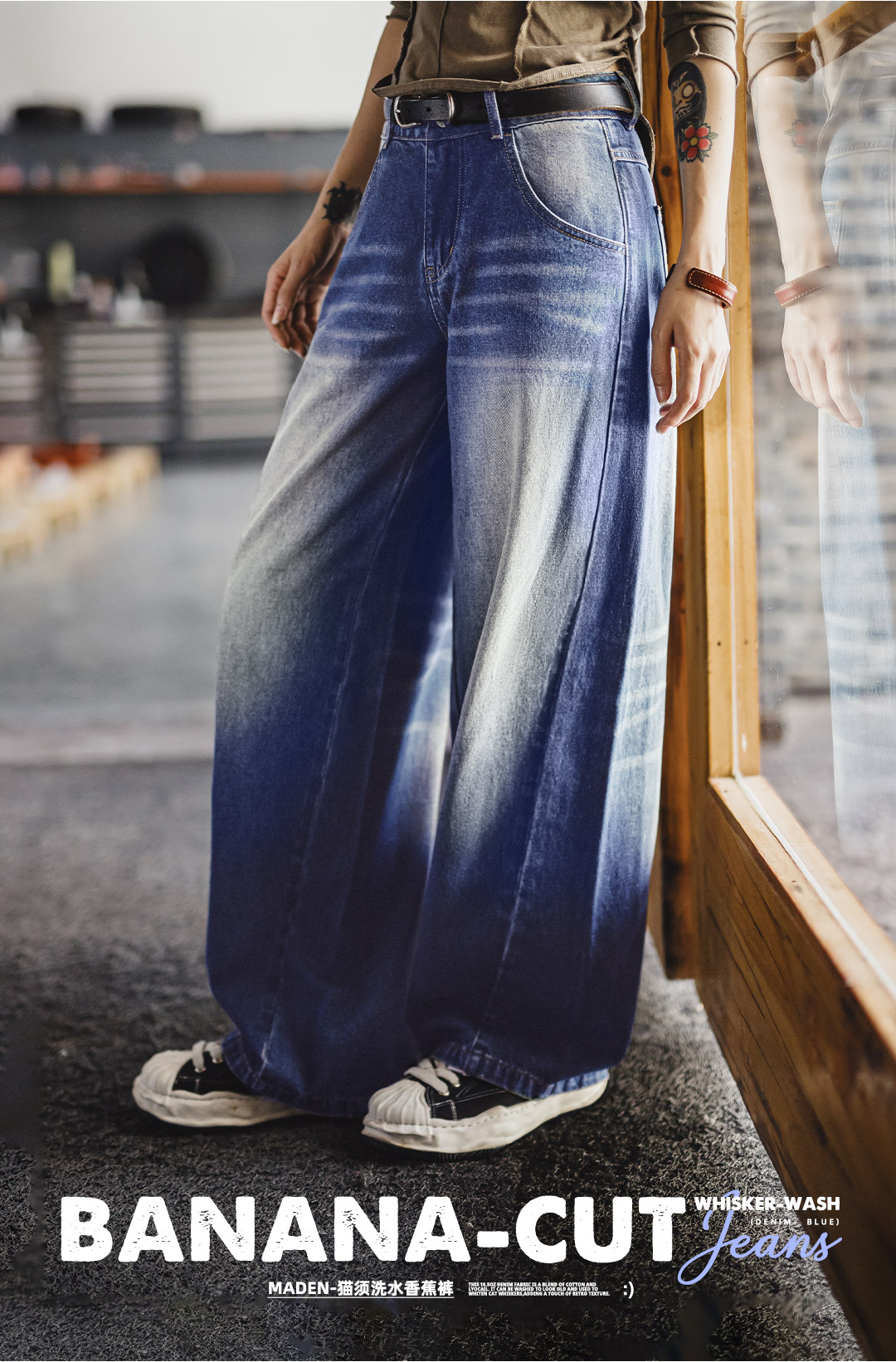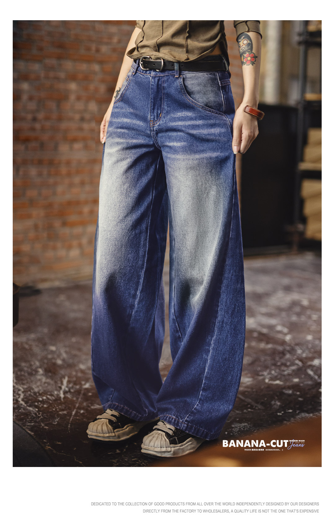 马登丹宁蓝美式复古闪电纹水洗宽松香蕉弯镰刀牛仔阔腿裤子女士秋