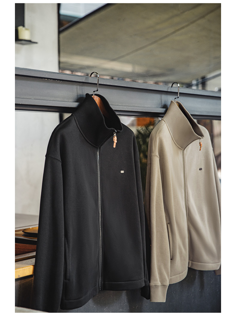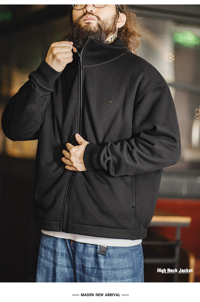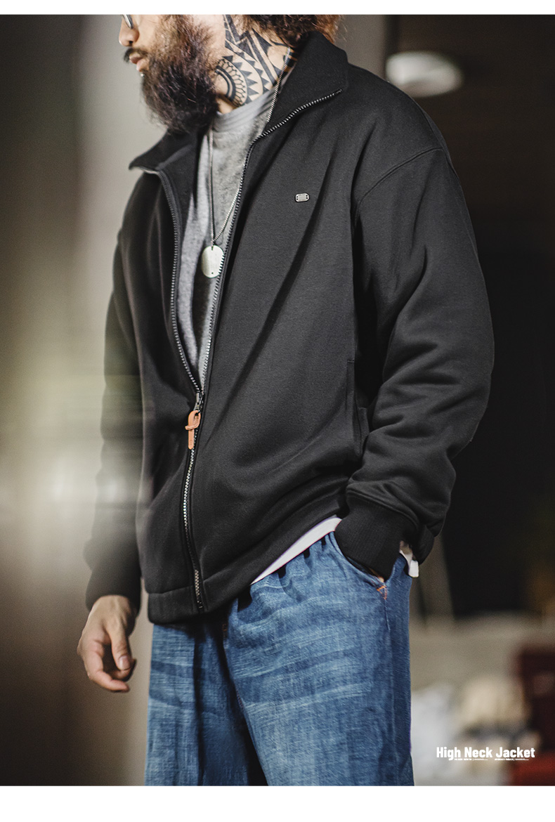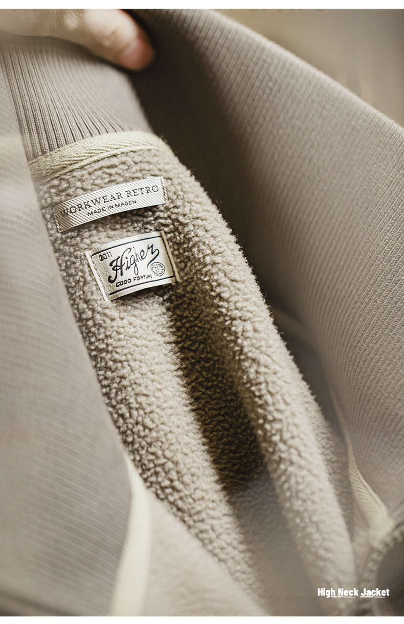 工装优选 美式休闲运动风开衫卫衣高领保暖立领抓绒夹克外套男秋