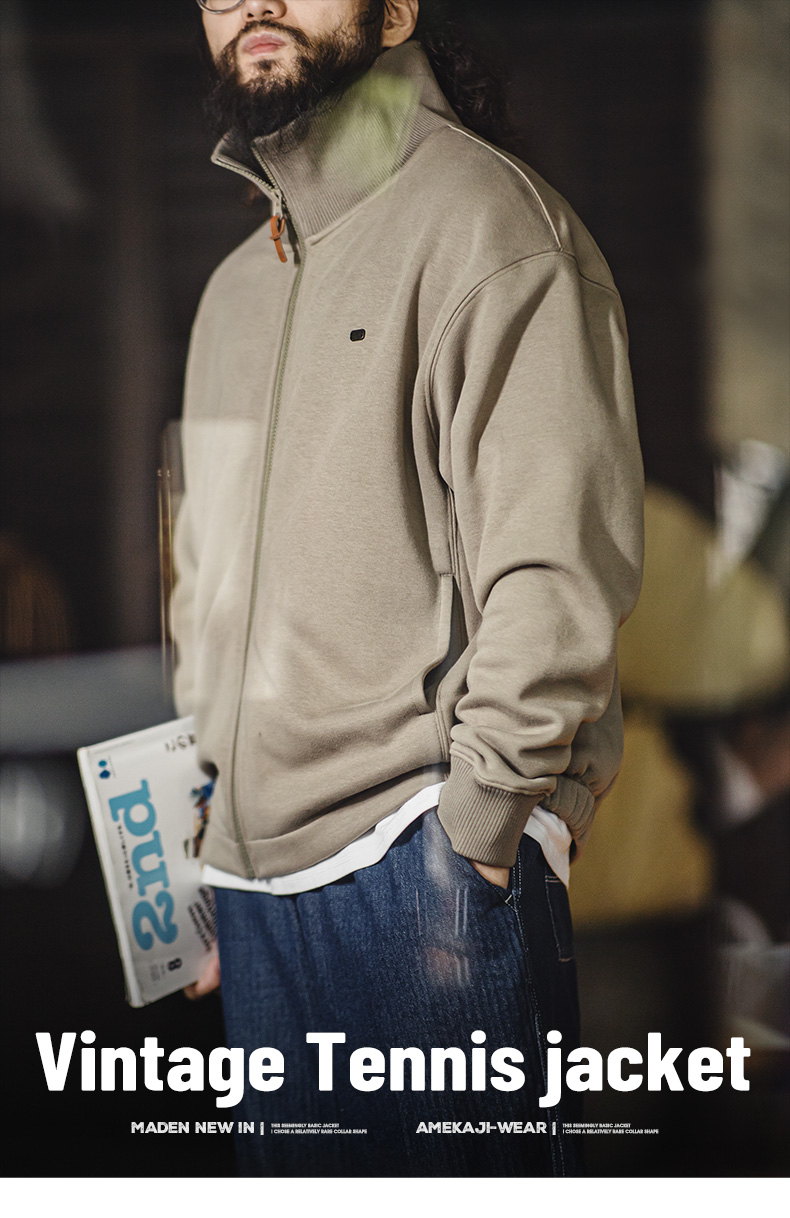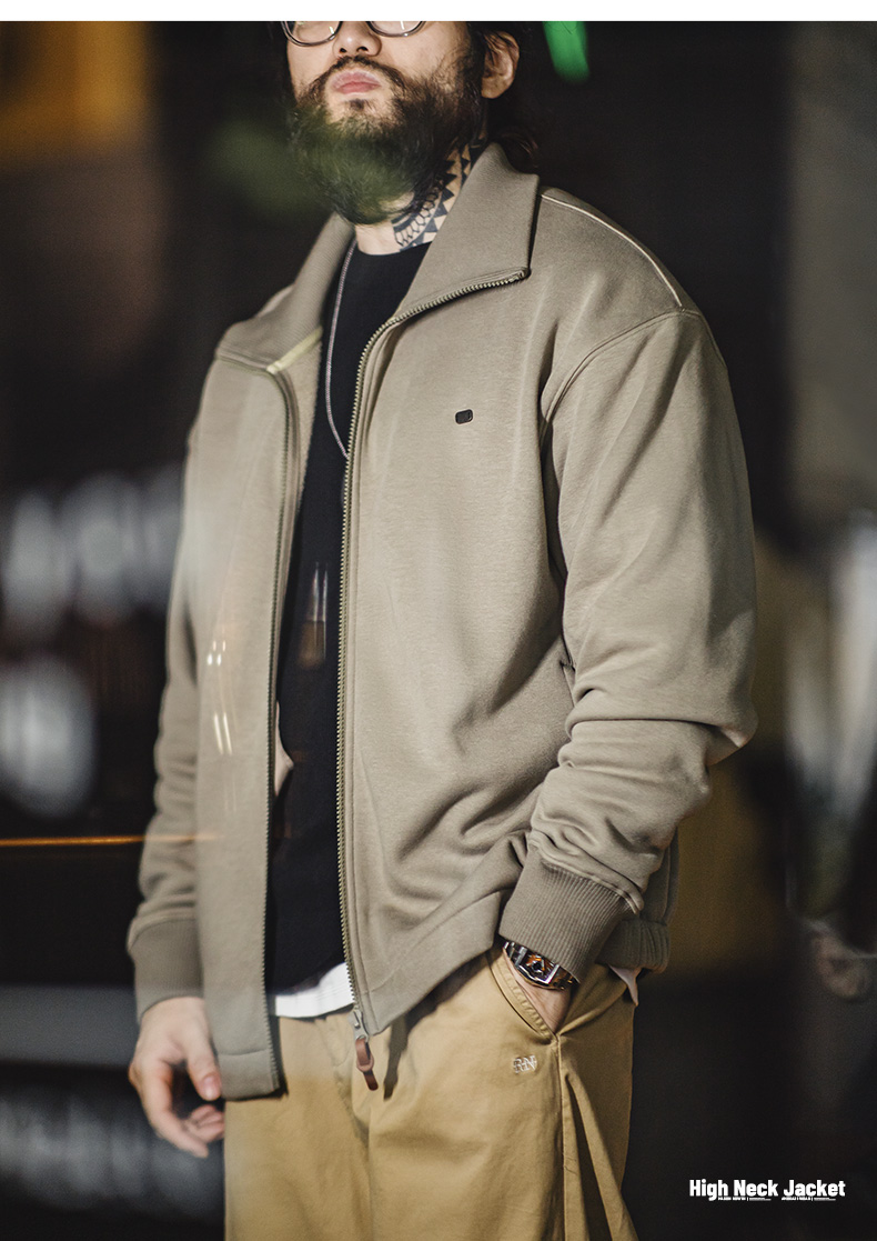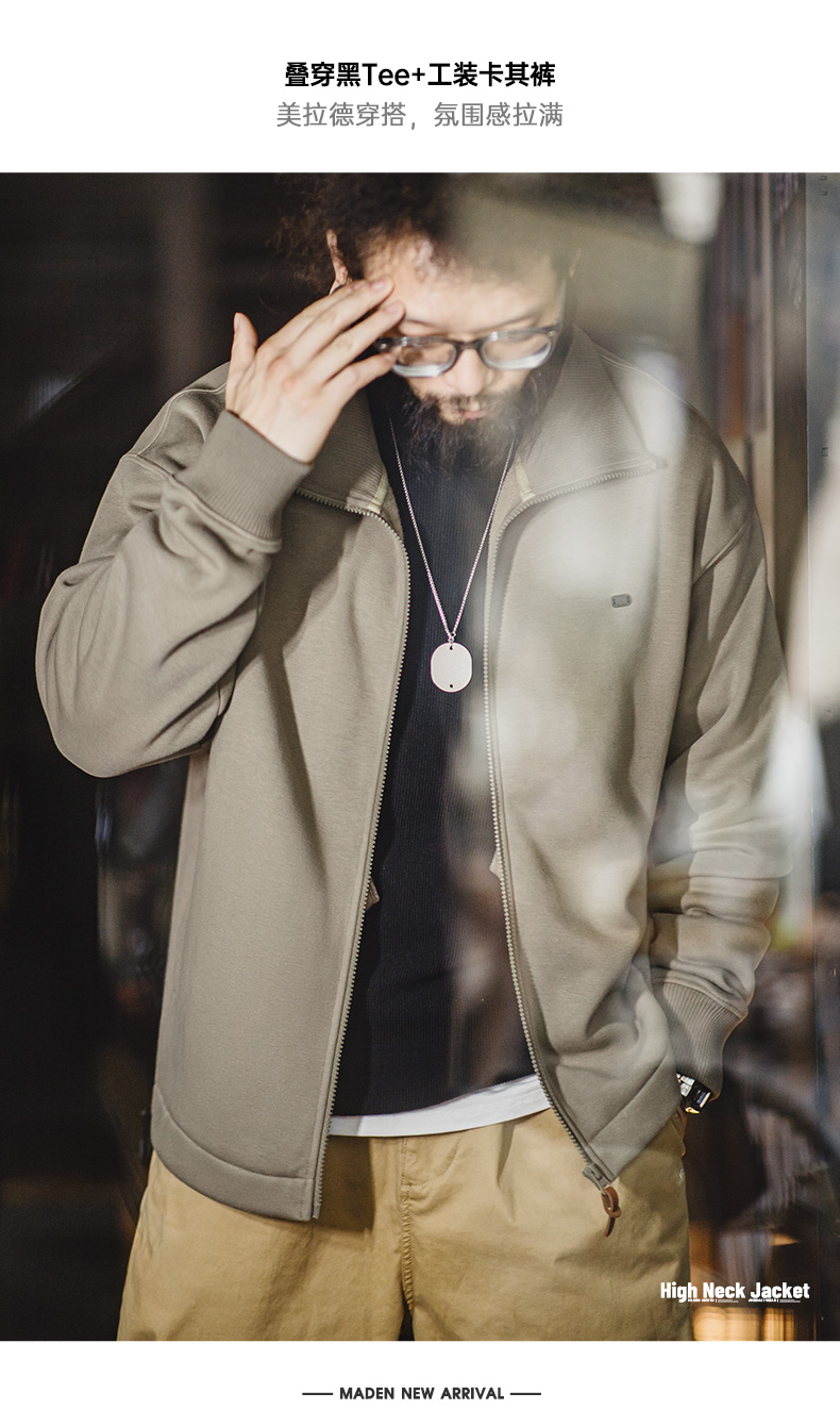 工装优选 美式复古半拉链立领夹克卫衣cityboy运动套头外套男春季