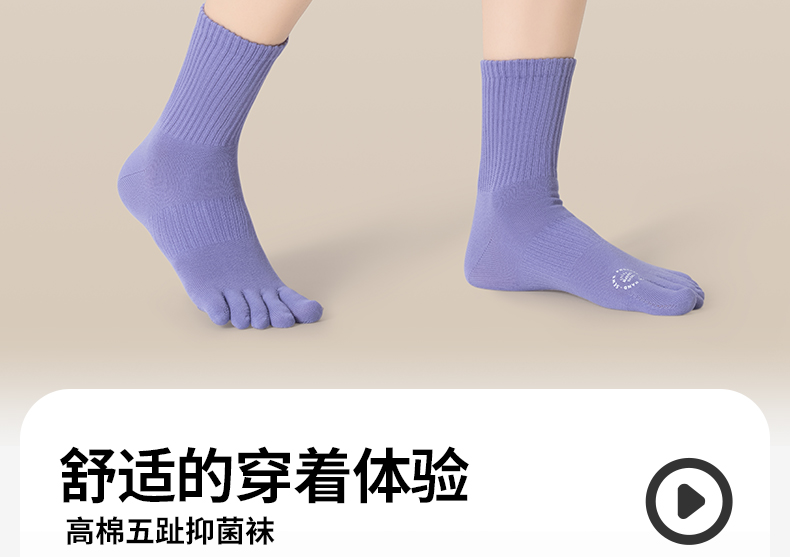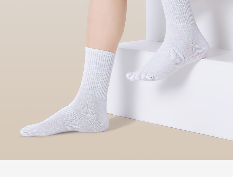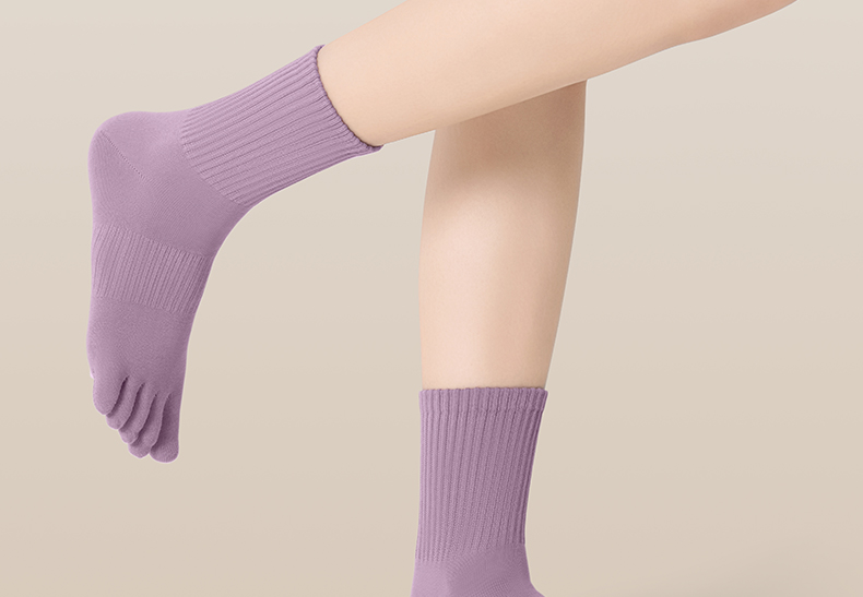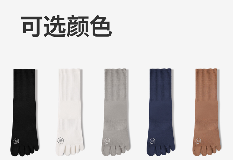 副歌纯棉纯色中筒袜防臭吸汗运动健身分趾袜子长筒袜男女五指袜