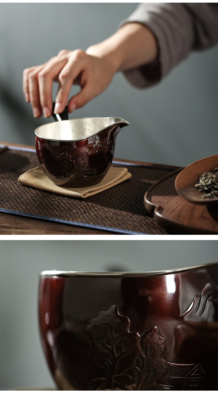 鹤鼎堂于飞系列归沐公杯錾刻深山幽谷(铜包银)(缺货)