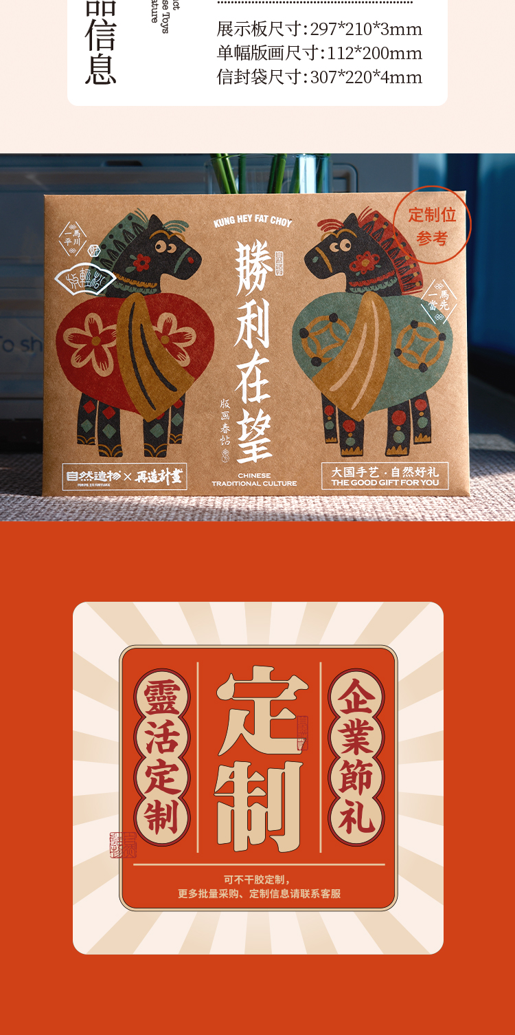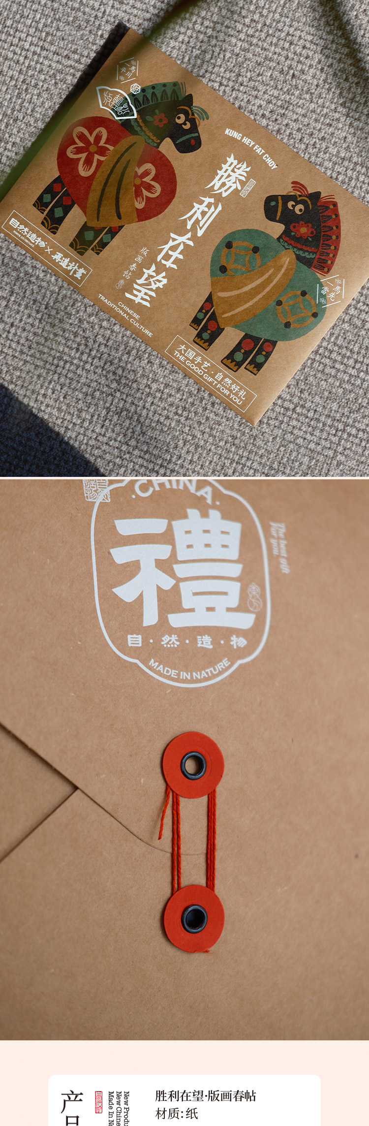 自然造物胜利在望马年春贴摆件窗花2026新款拓印小对联新年礼物