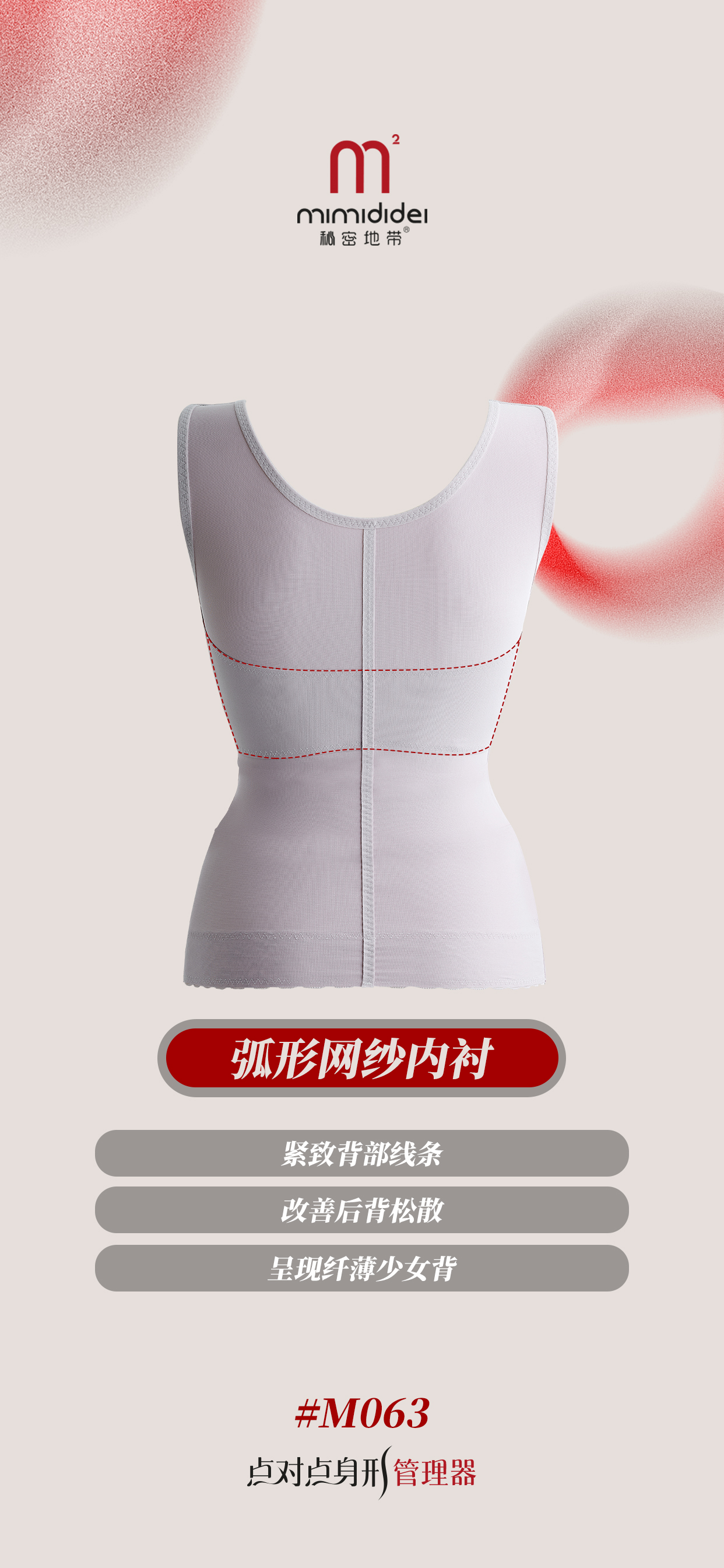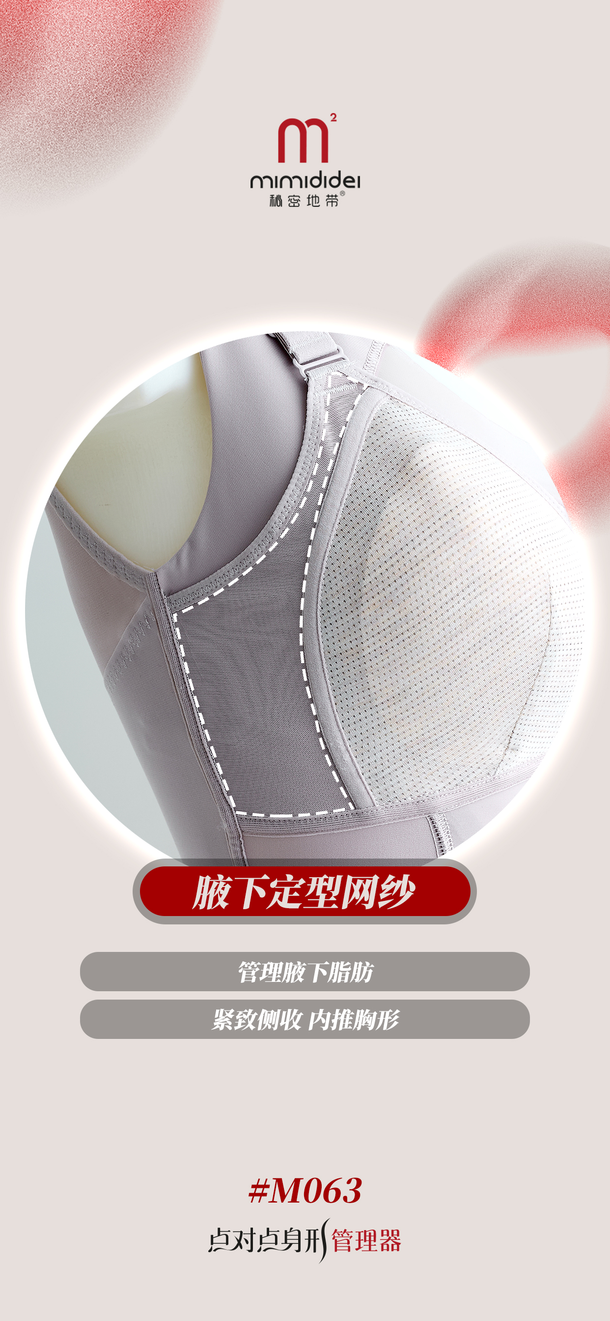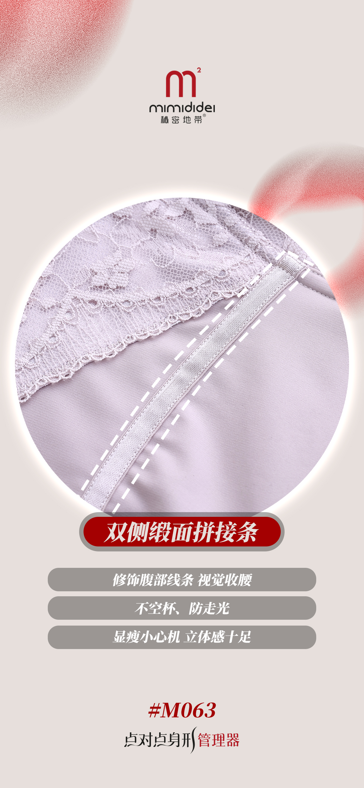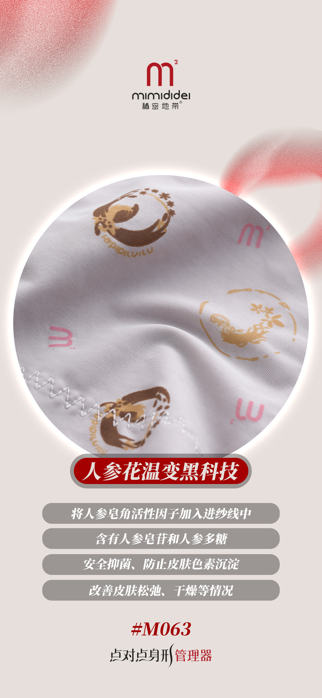 复合人参花面料:环收腹部赘肉,收拢游离脂肪,吸湿透气,长时间穿着起到抚平腹部脂肪的作用