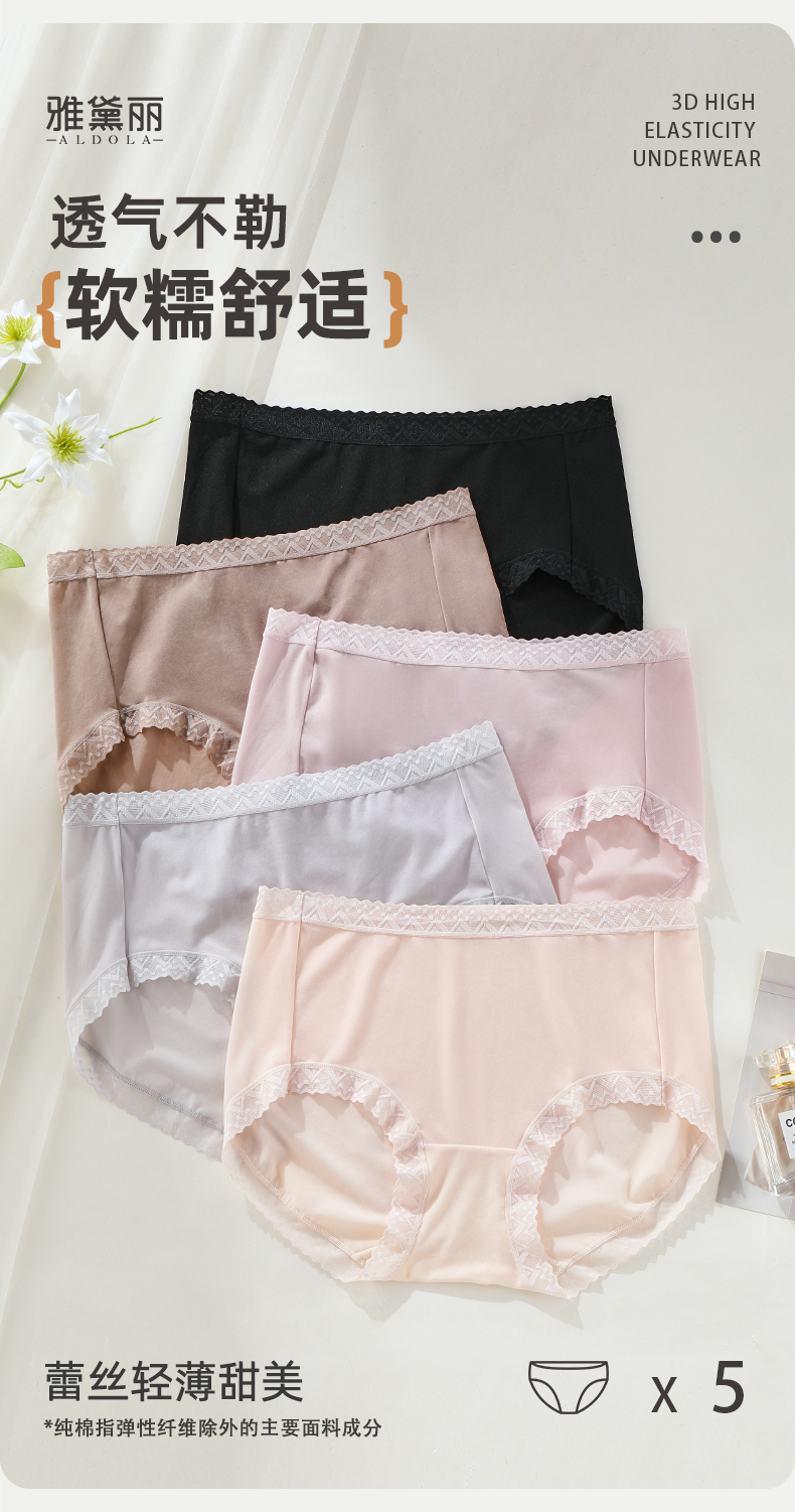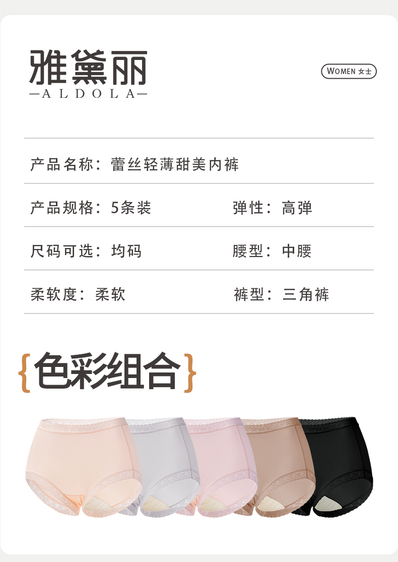 【5条装】雅黛俪女士内裤柔软舒适性感蕾丝花边三角裤头