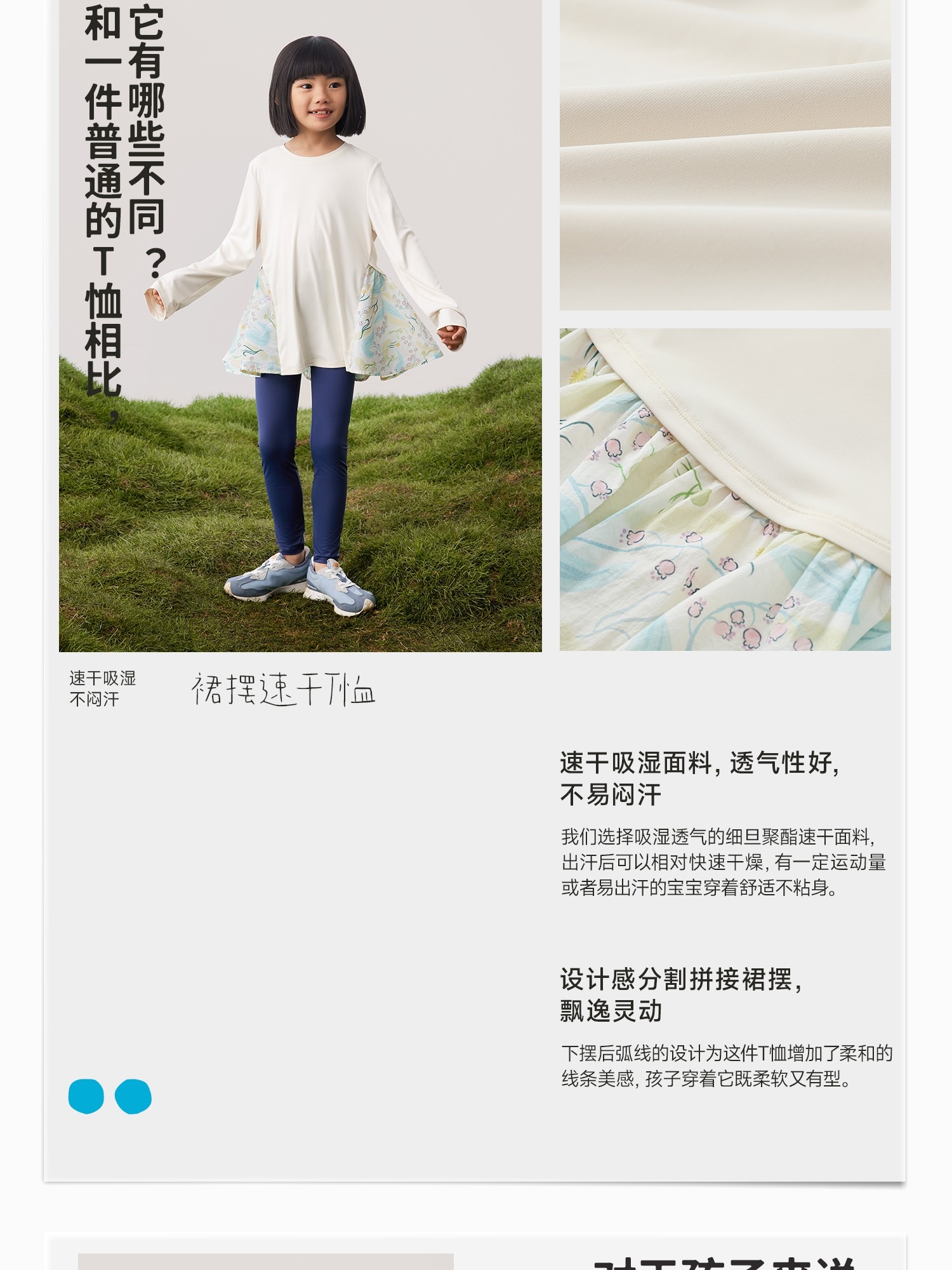 【好友特惠】幼岚柔软舒适亲肤裙摆速干透气长袖T恤24春季新款儿童女童T恤ZY