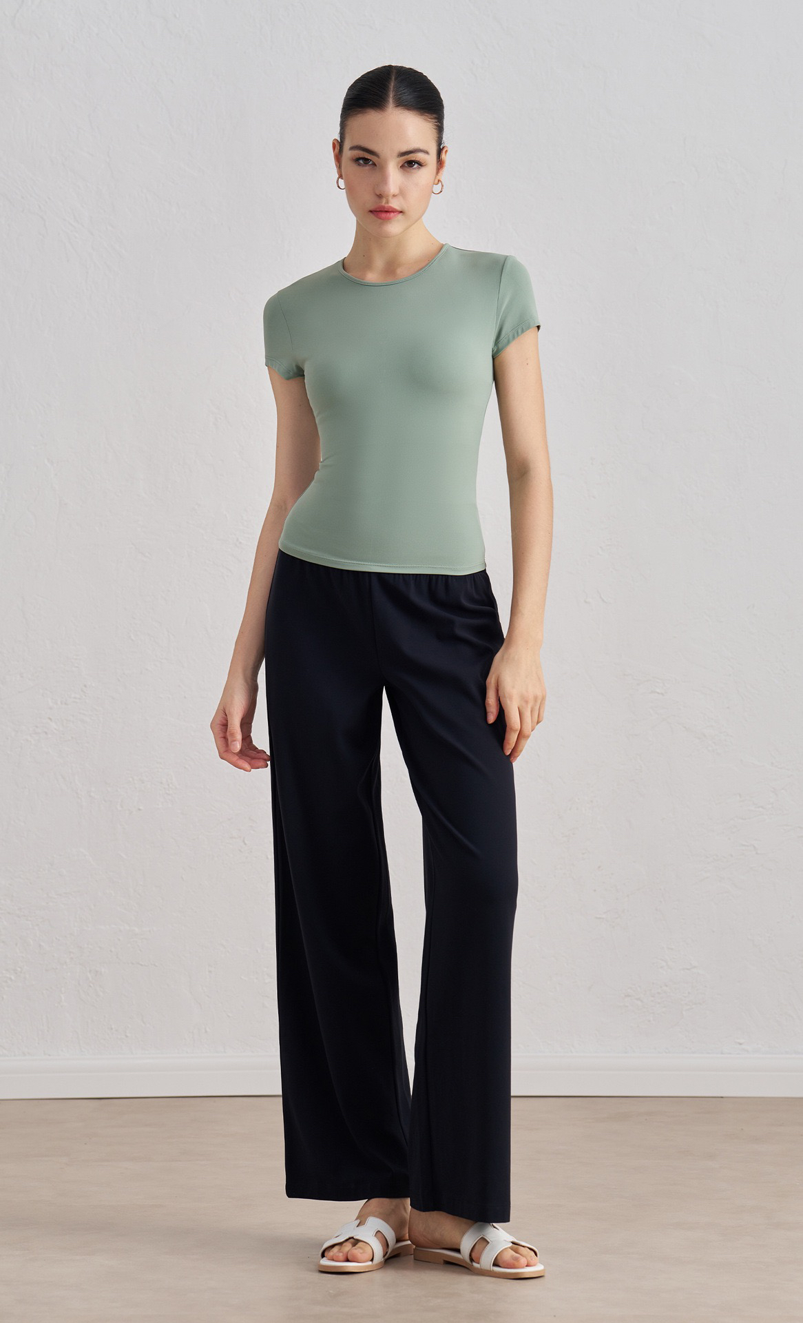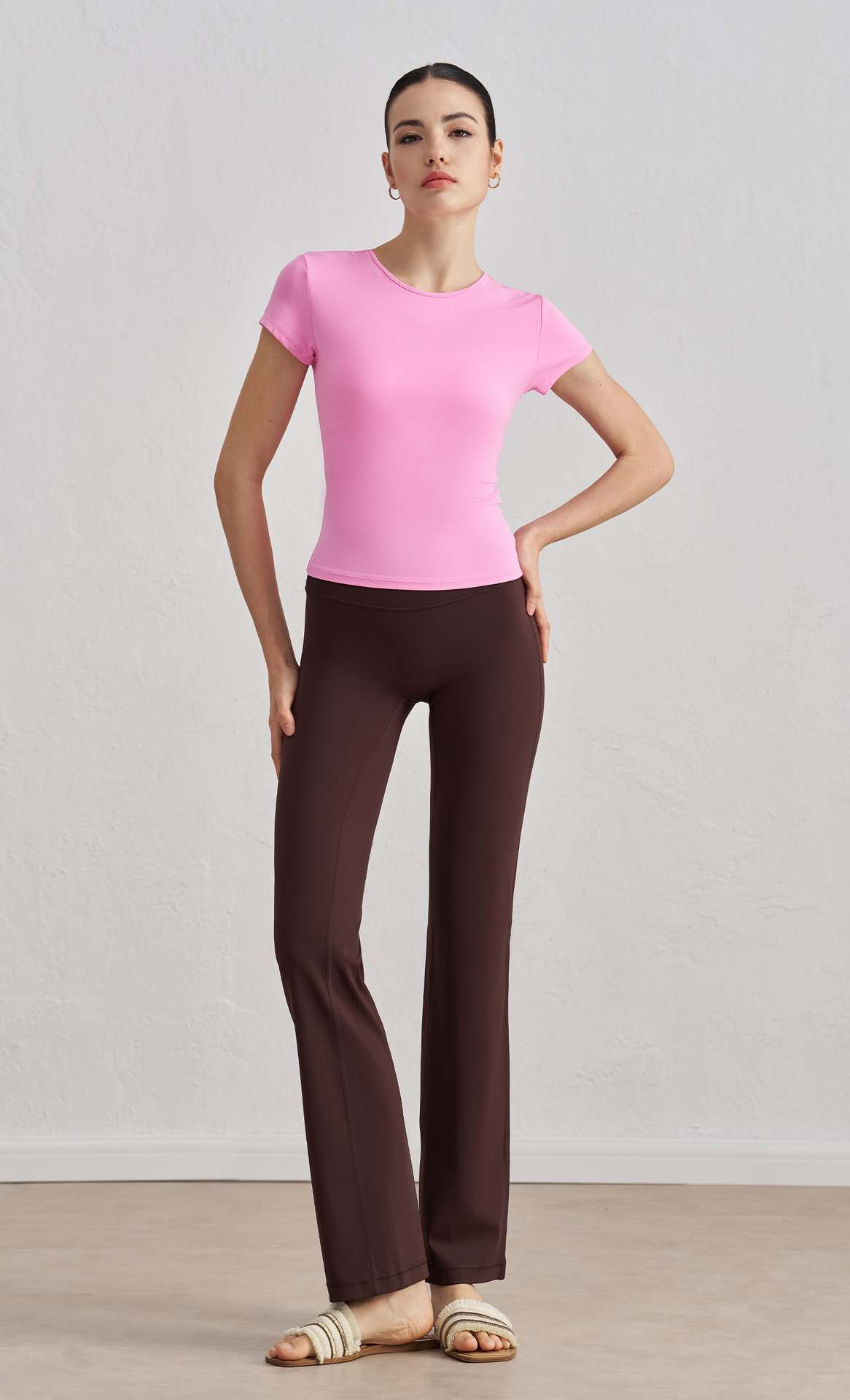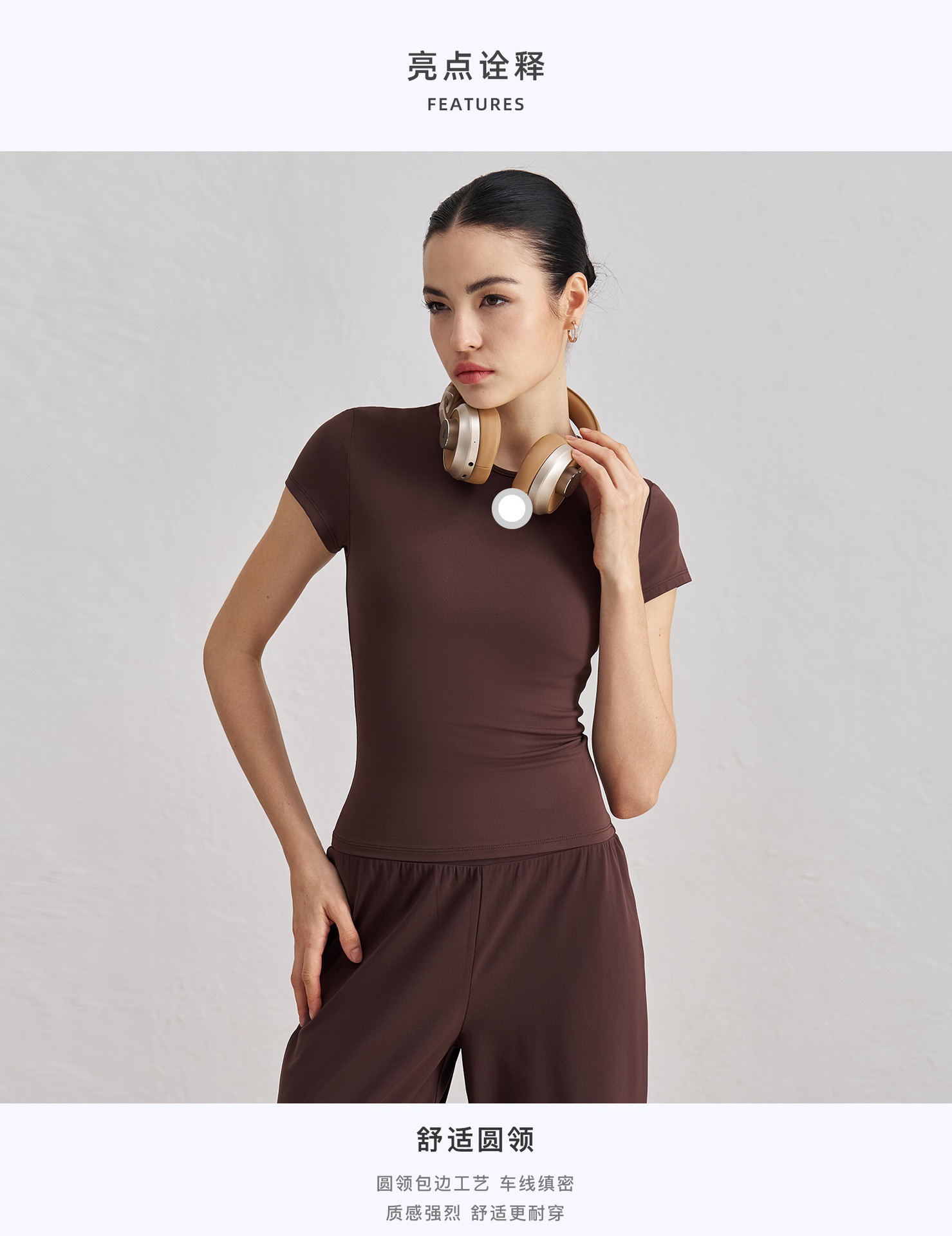 新款休闲运动短袖收腰修身透气瑜伽T恤跑步训练裸感健身上衣女AD