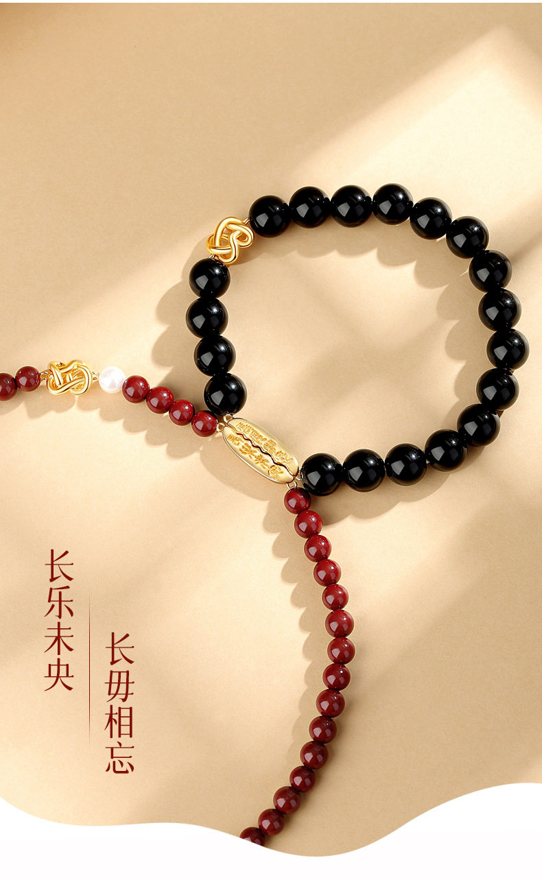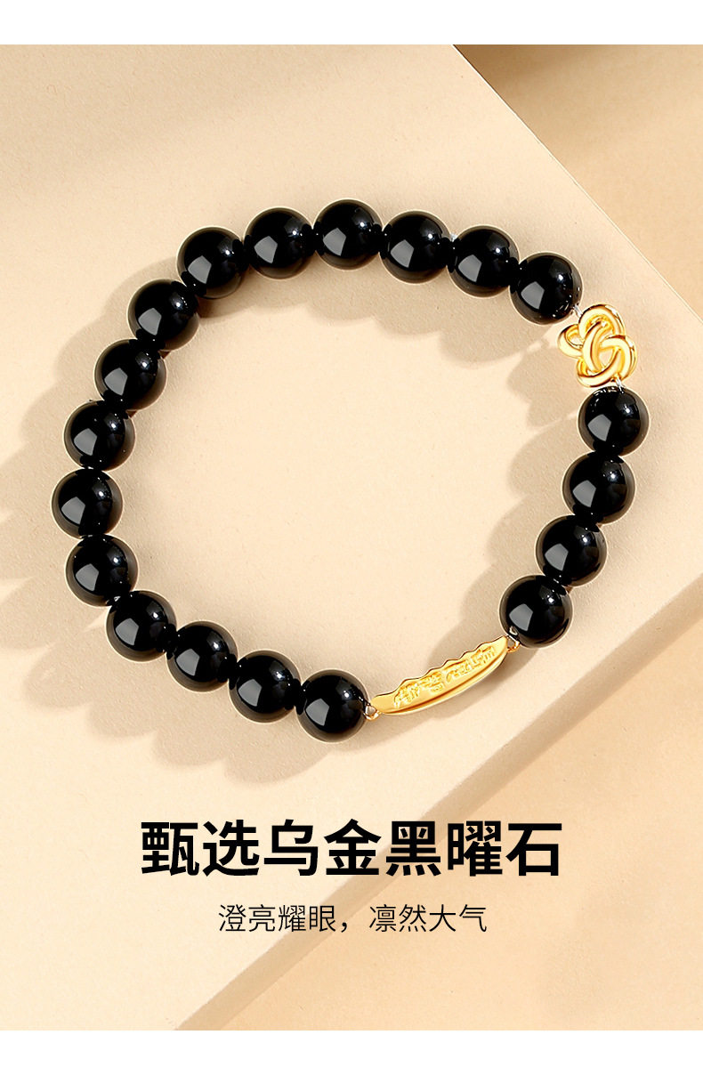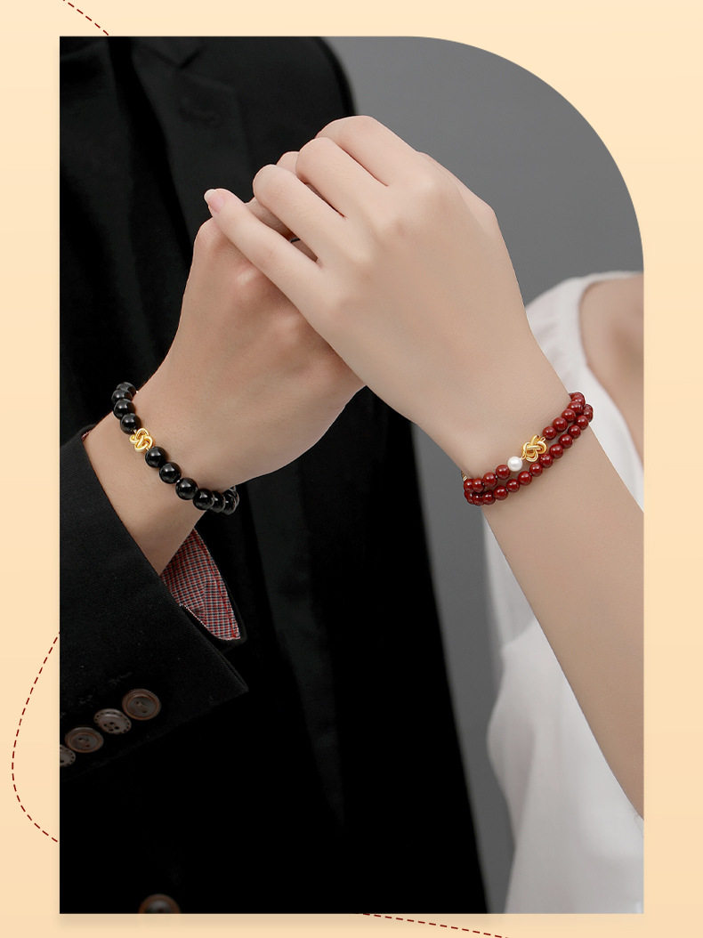 【祈愿吉品】情侣同心结手链男女黑曜石紫金砂手串