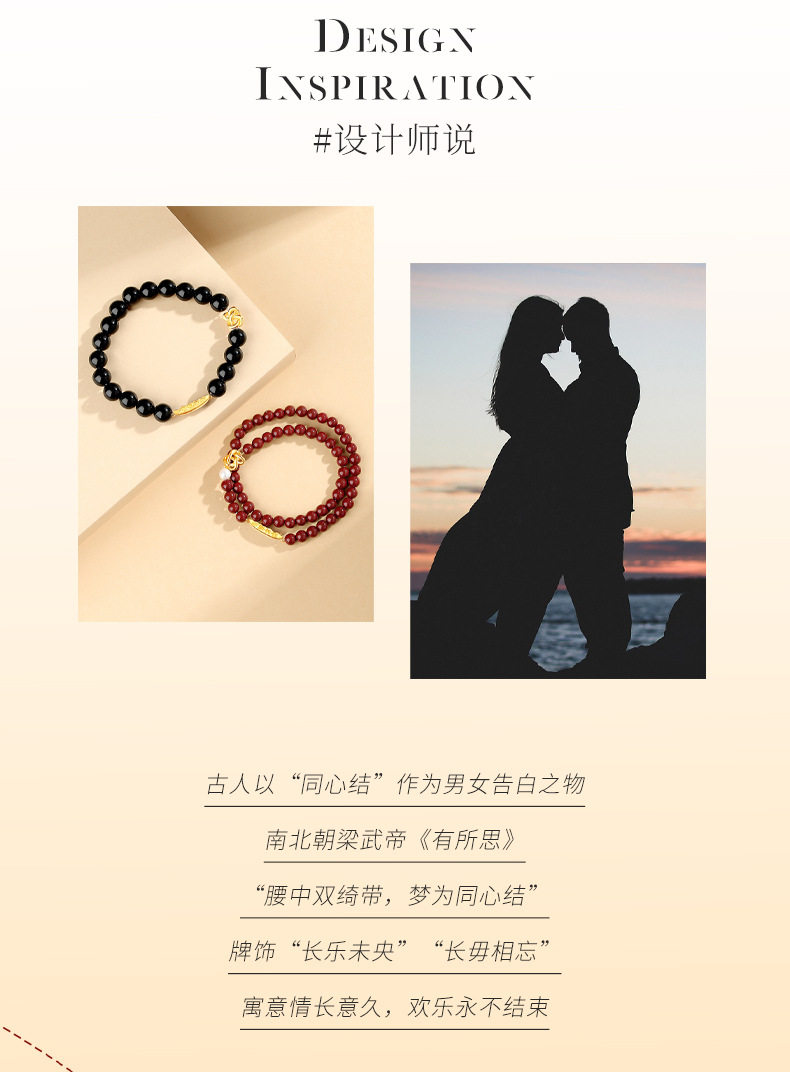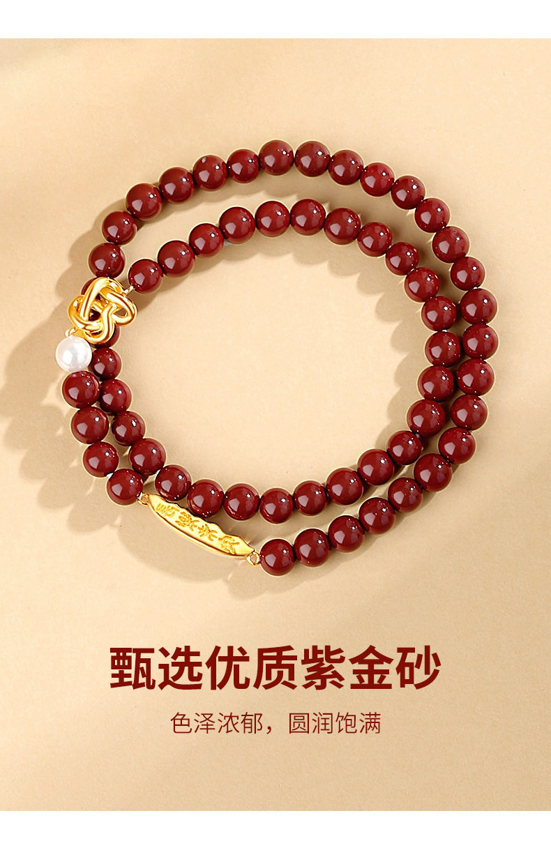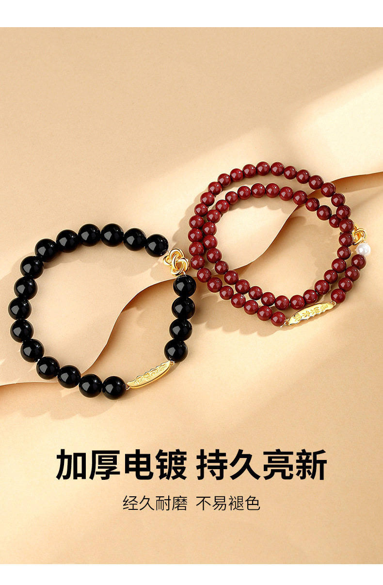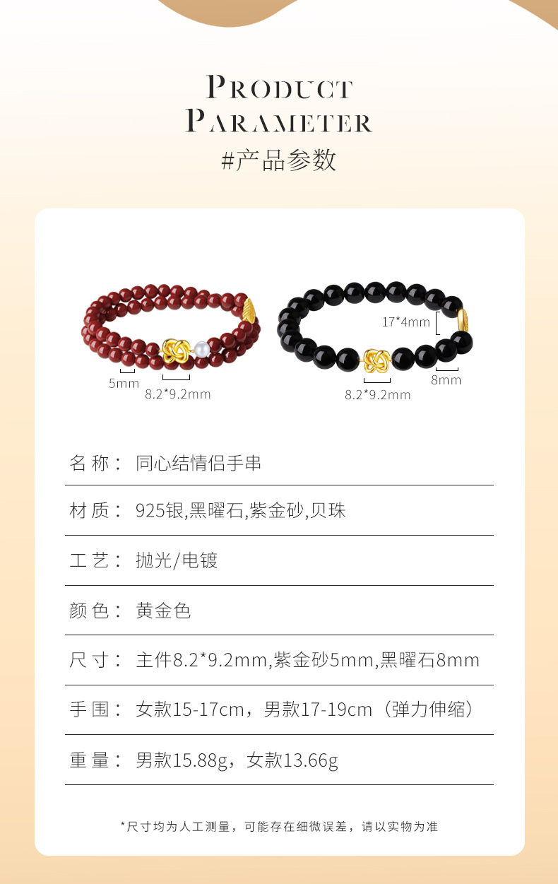 【祈愿吉品】情侣同心结手链男女黑曜石紫金砂手串