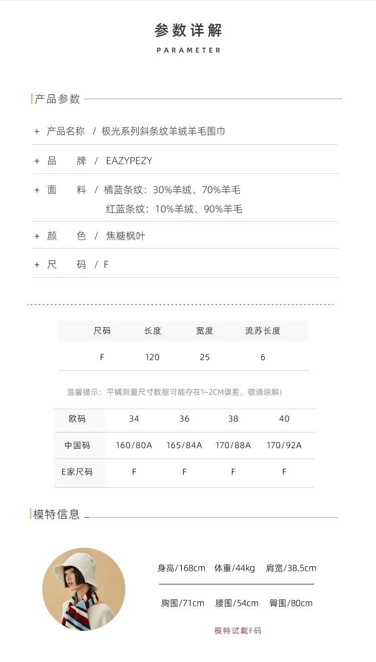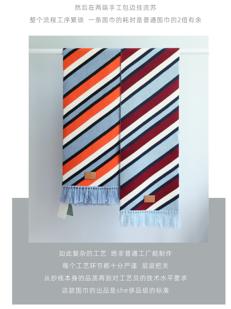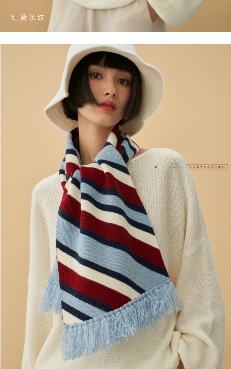 EAZYPEZY 极光系列斜条纹羊绒羊毛围巾