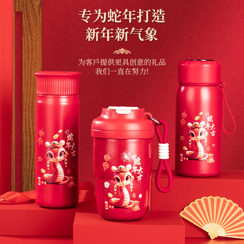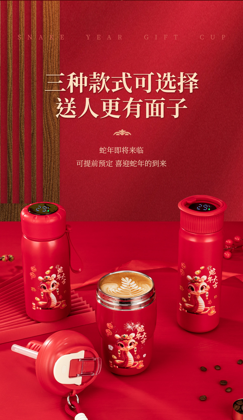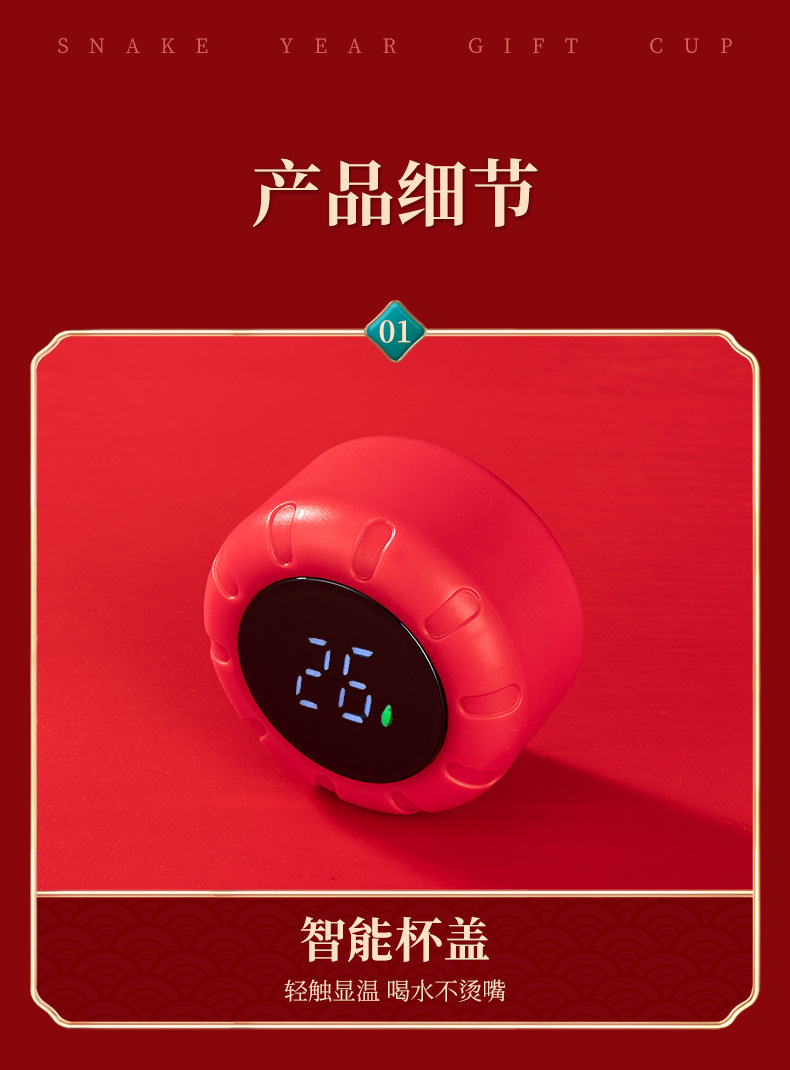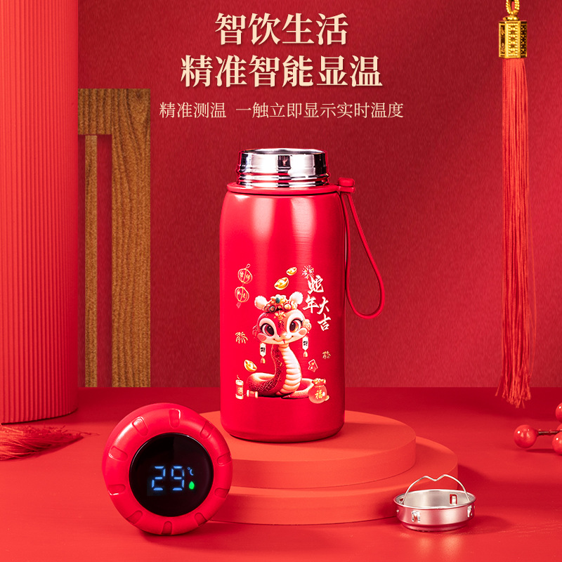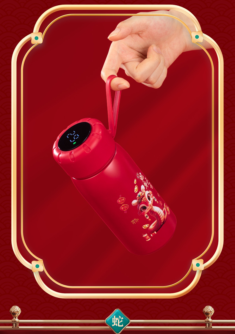 【专为蛇年打造!新年新气象】蛇年大吉水杯不锈钢保温杯开门红年会礼品杯蛇年温度显示杯子,轻触显温,喝水不烫嘴。ry
