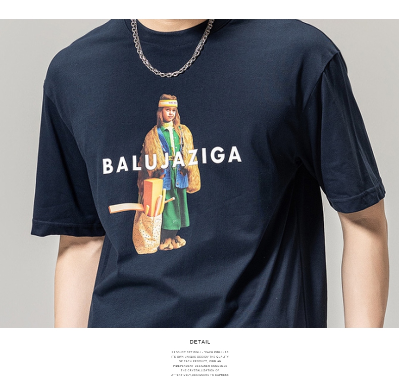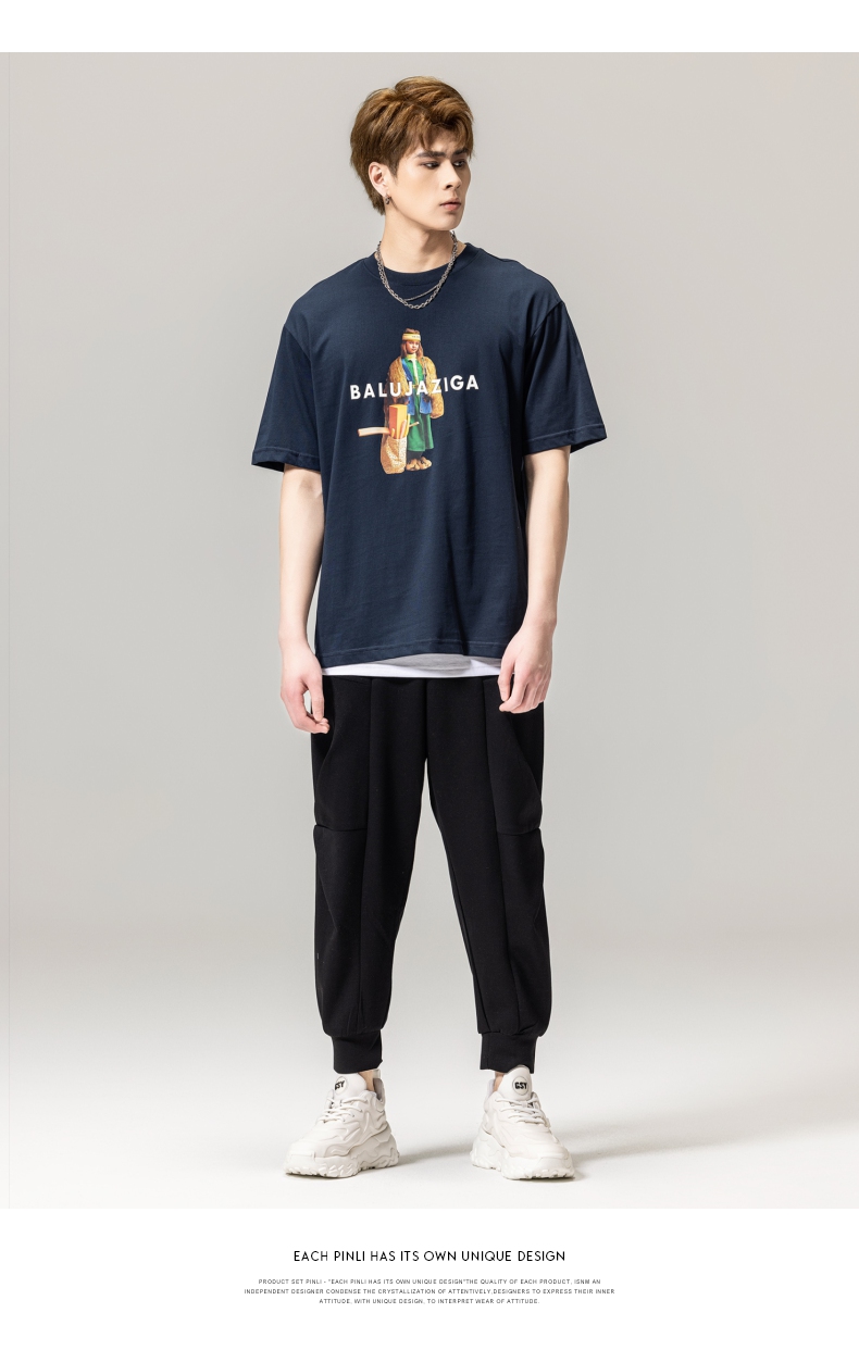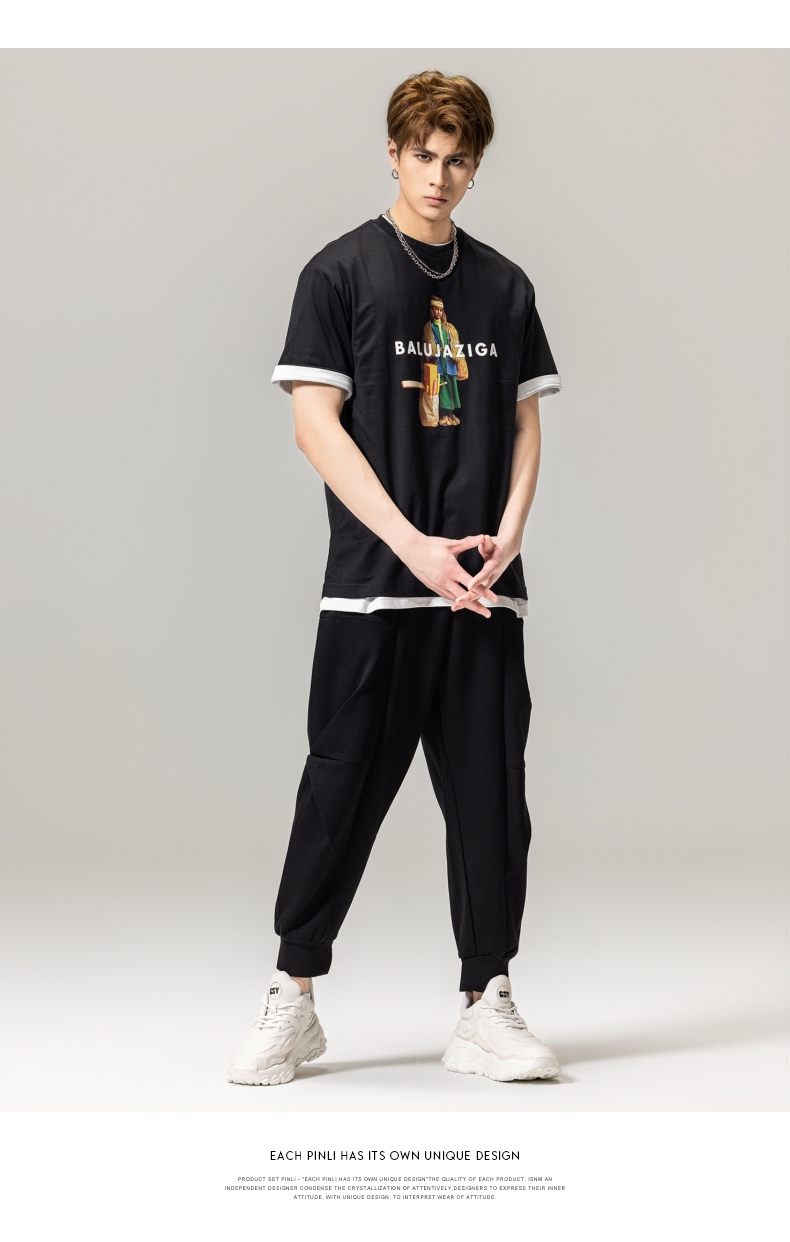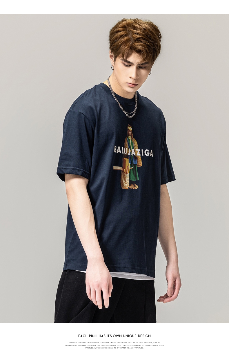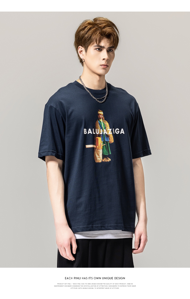 PINLI品立春季新款男士印花T恤圆领短袖体恤潮牌BG231111043
