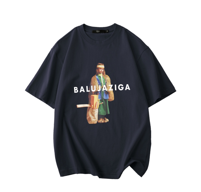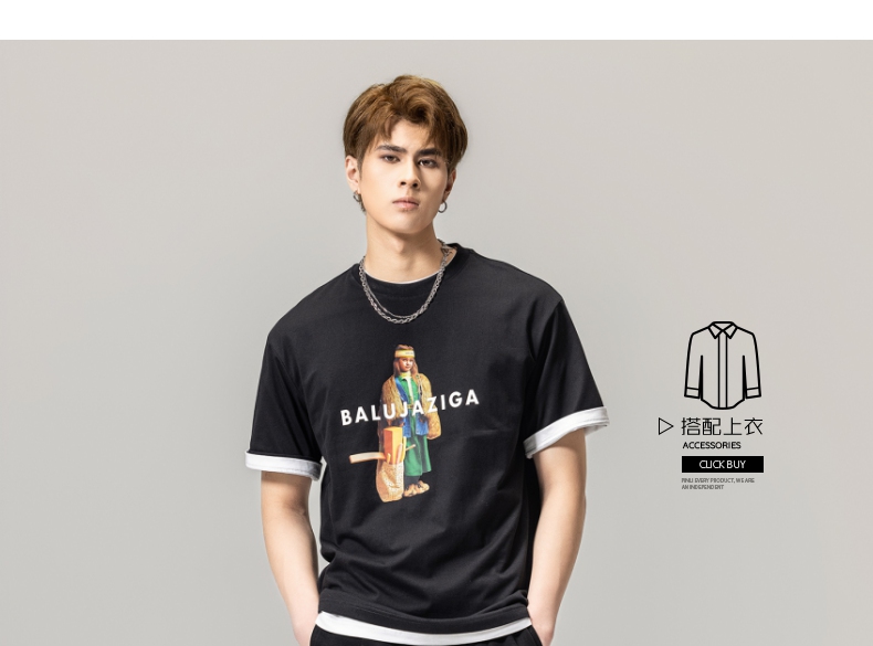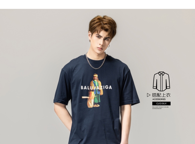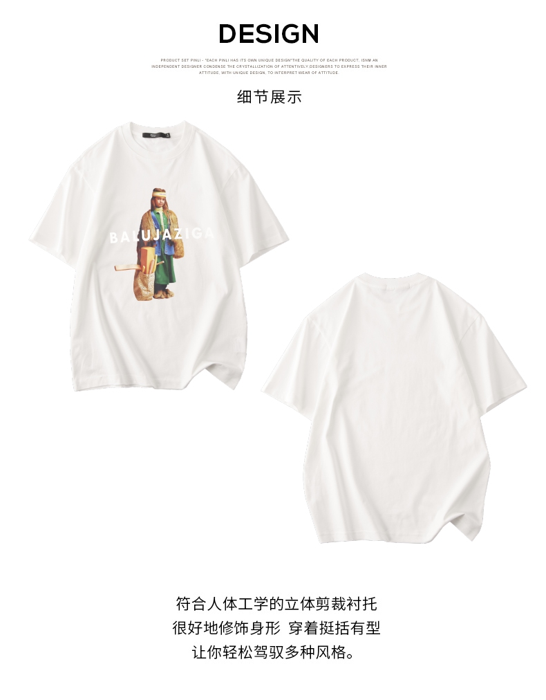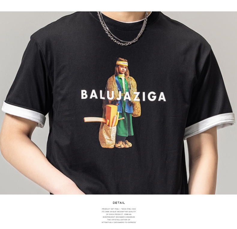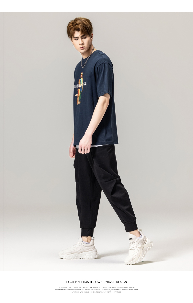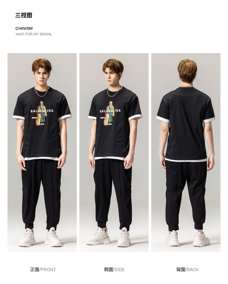 PINLI品立春季新款男士印花T恤圆领短袖体恤潮牌BG231111043