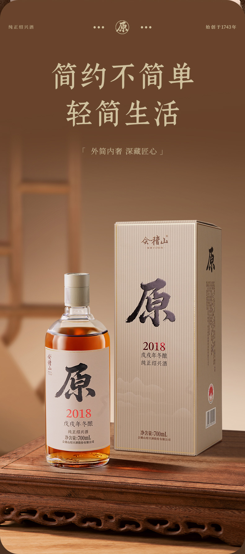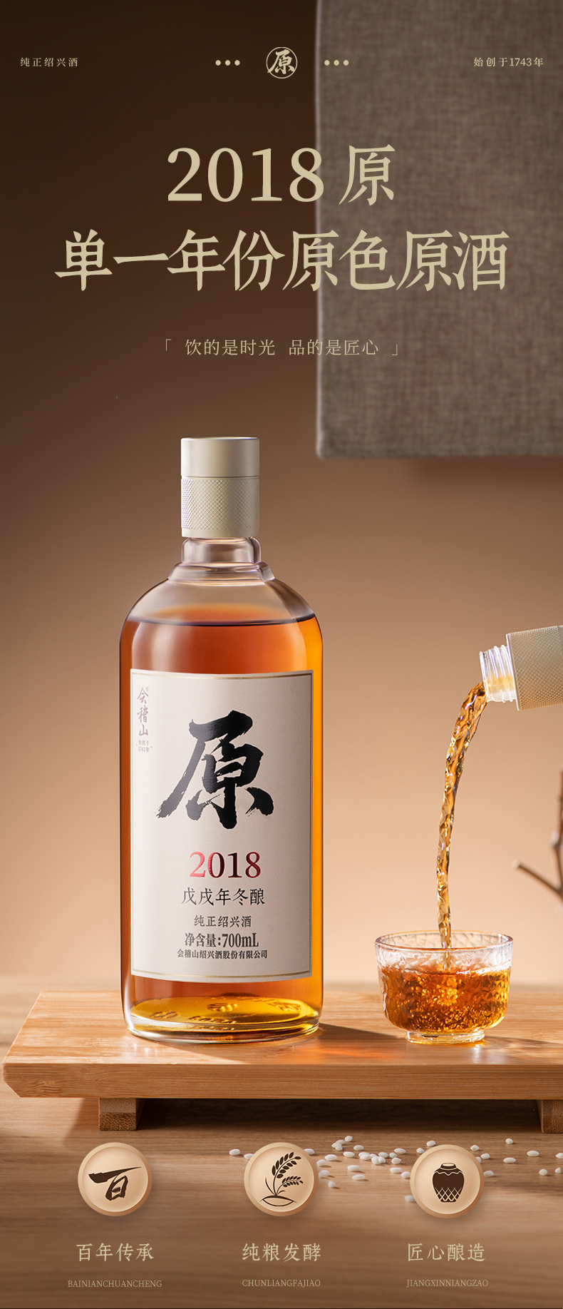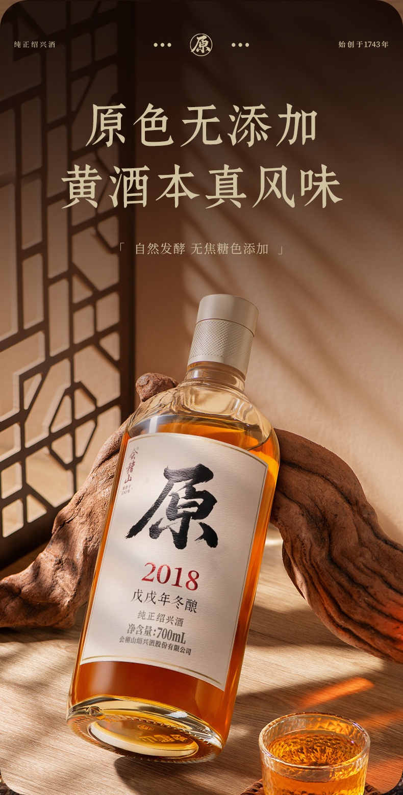 会稽山官旗 绍兴黄酒 2018年原酿700ml*1瓶原酒无焦糖色老酒