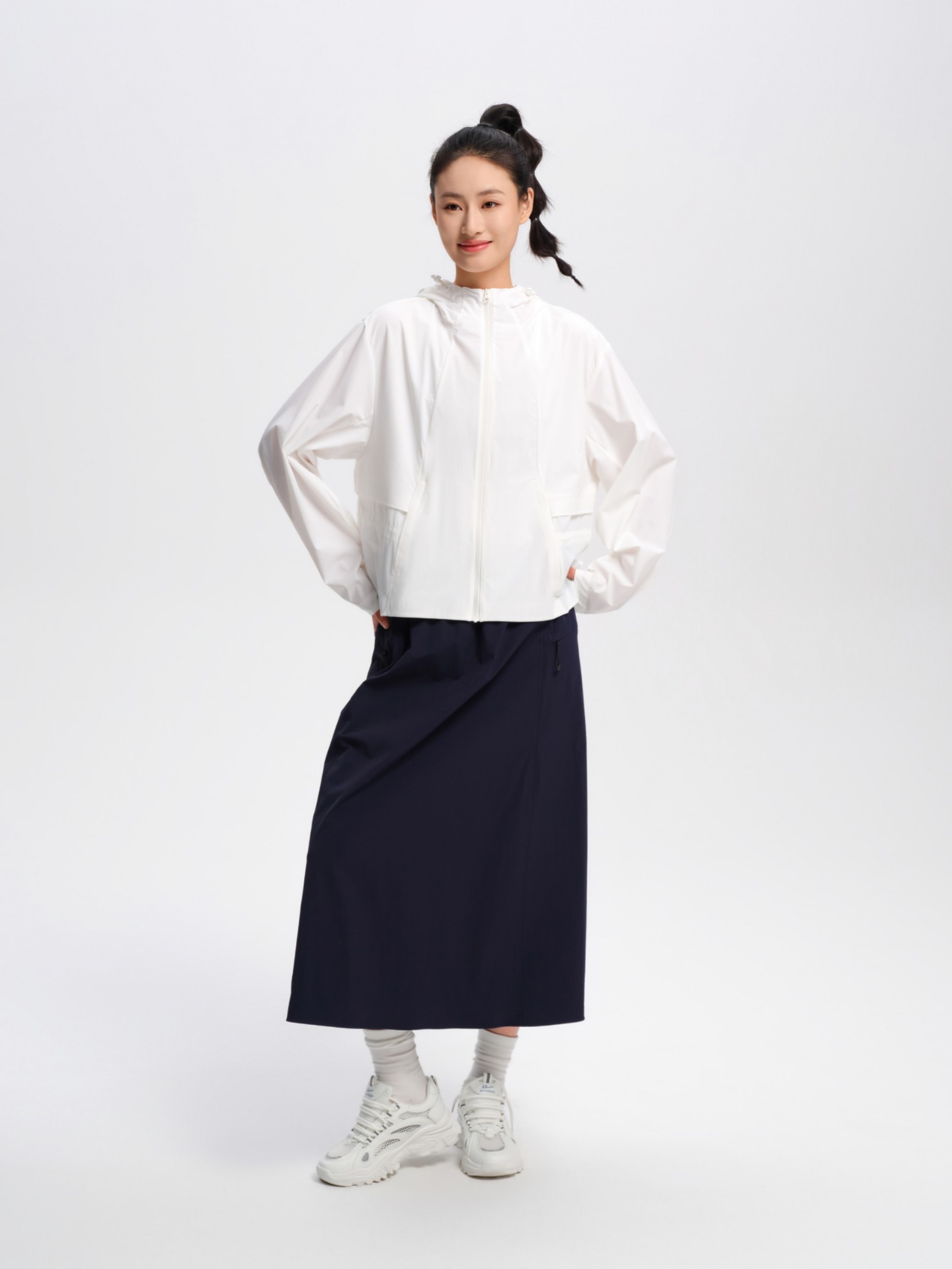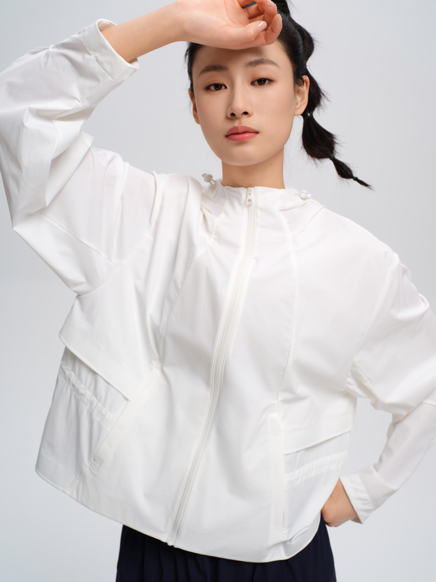 SZ3A60_皓色_外套上衣_春夏_连帽拉链宽松落肩袖大口袋抽绳收腰防晒运动_高级女装_BERNIEELEN 伯妮斯茵