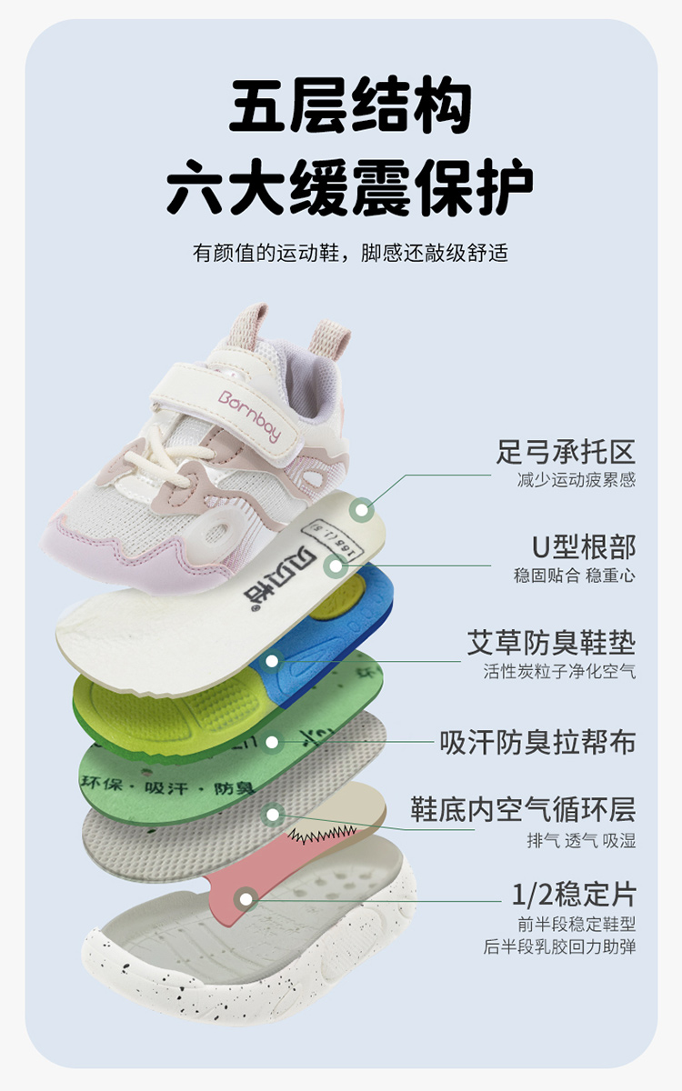 贝贝怡新款24春秋男女童运动鞋中性户外休闲鞋艾草防臭婴幼儿童鞋缓震ZB1DX012