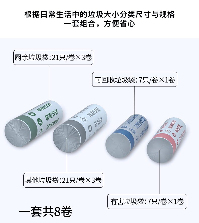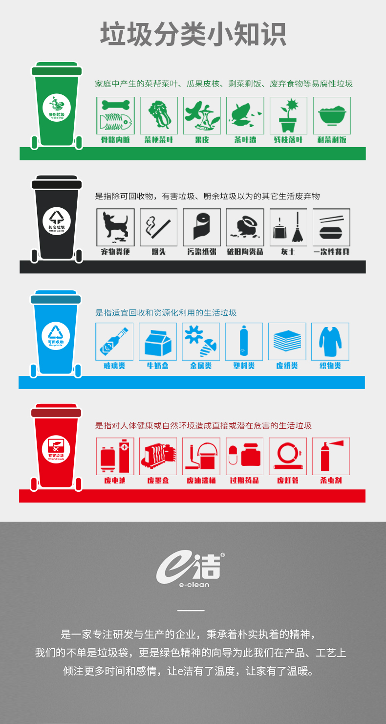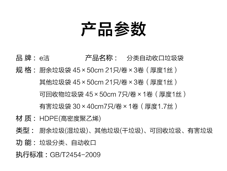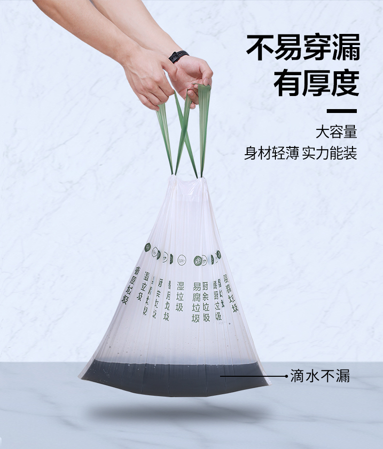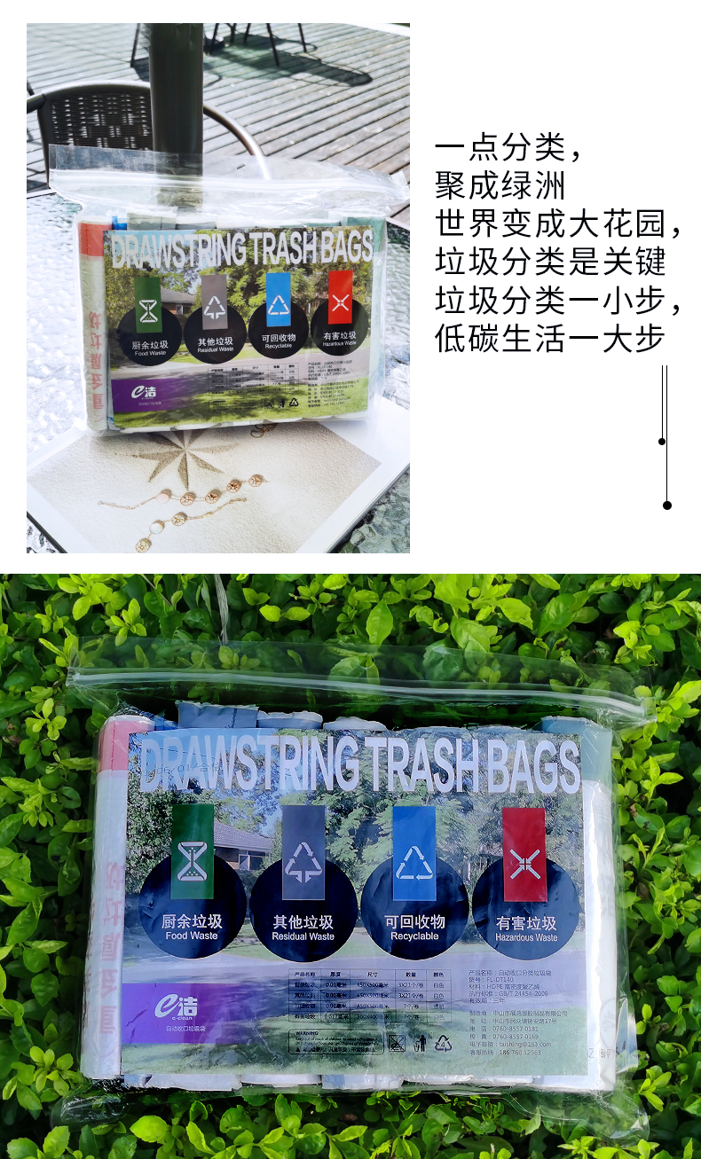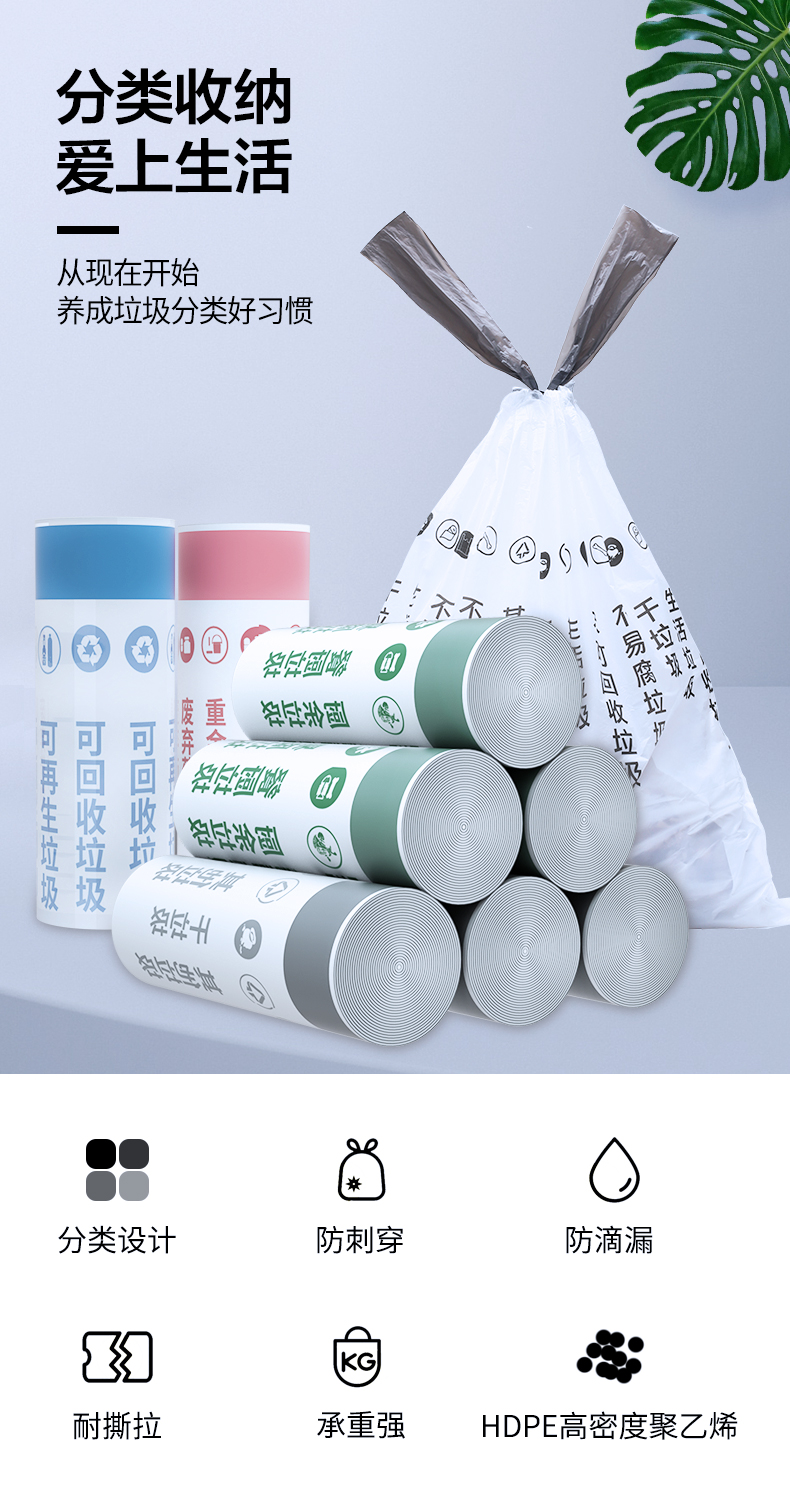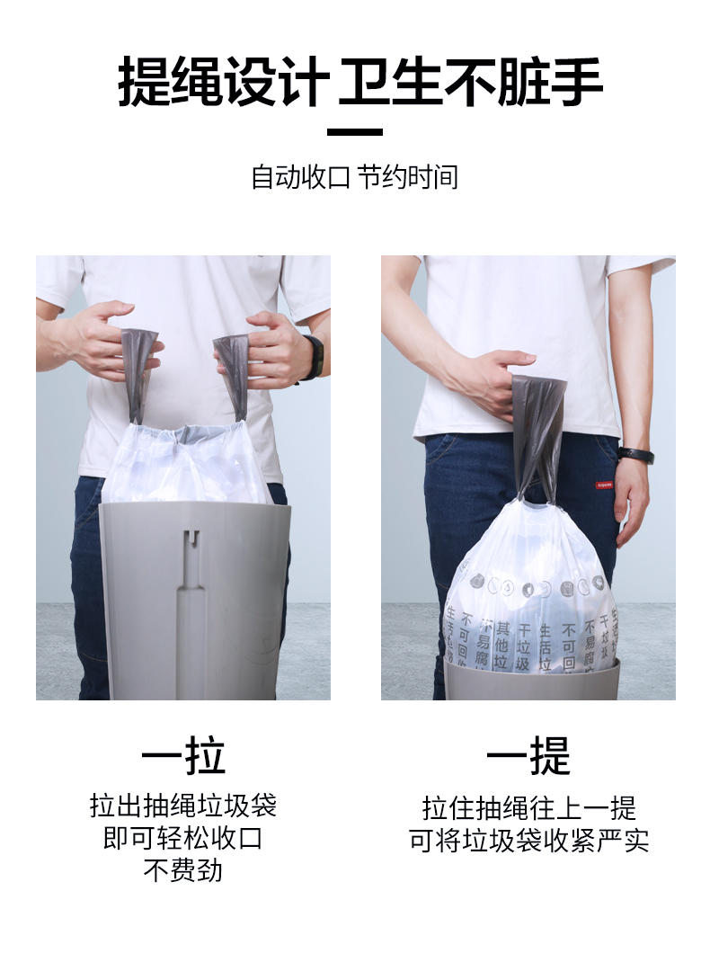 e洁家用手提式一次性自动收口加厚分类垃圾袋套装抽绳式