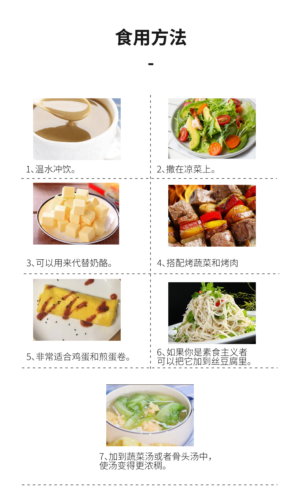 【食用方法】直接食用,60℃以下温水冲饮,拌粥、拌菜、拌酸奶、撒入汤中,一天1-2包即可。