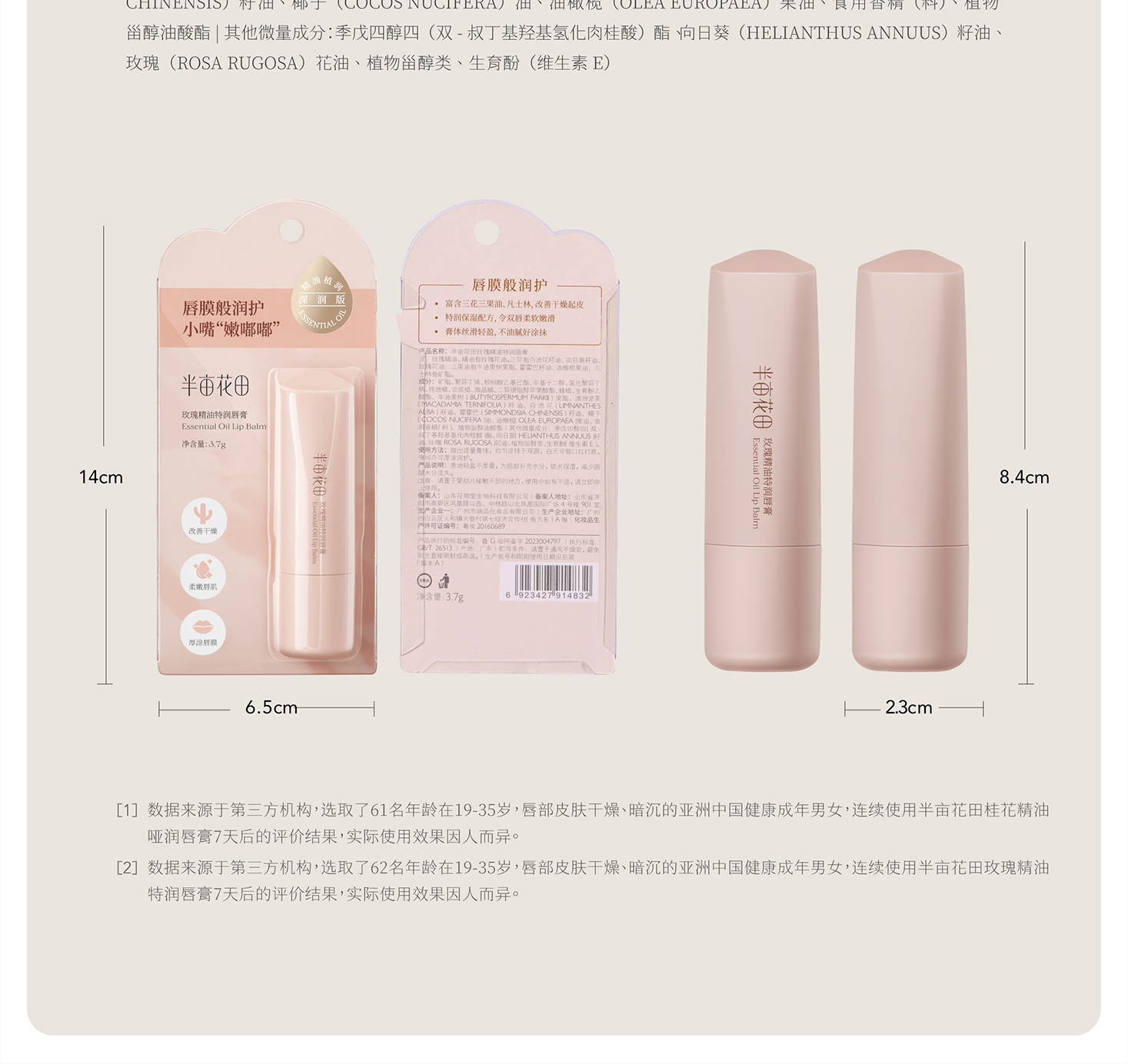 半亩花田玫瑰精油特润唇膏3.7g
