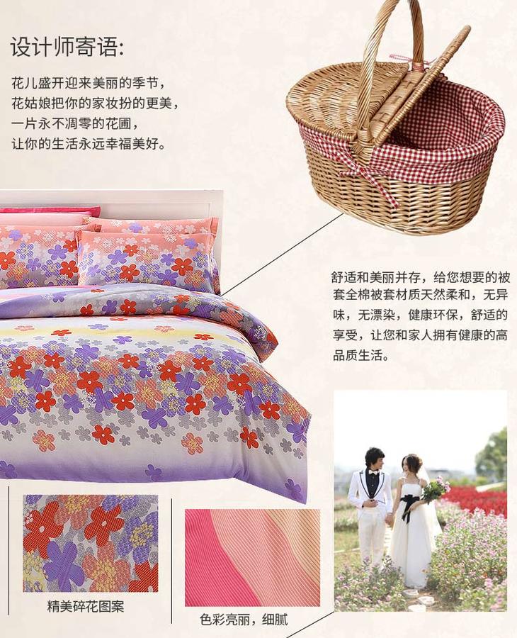 远梦雅沁纯棉被套/床单/床笠/枕套(花色随机)