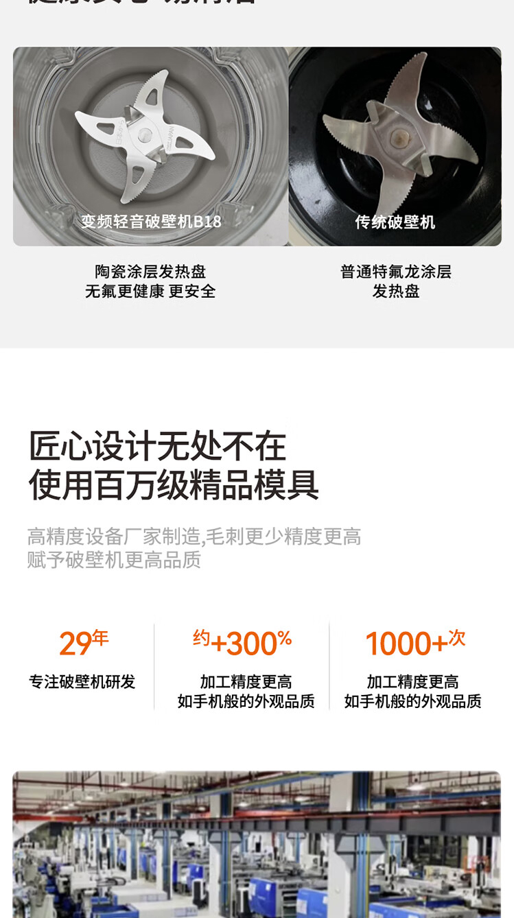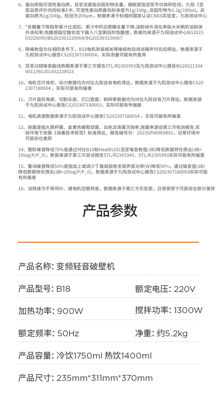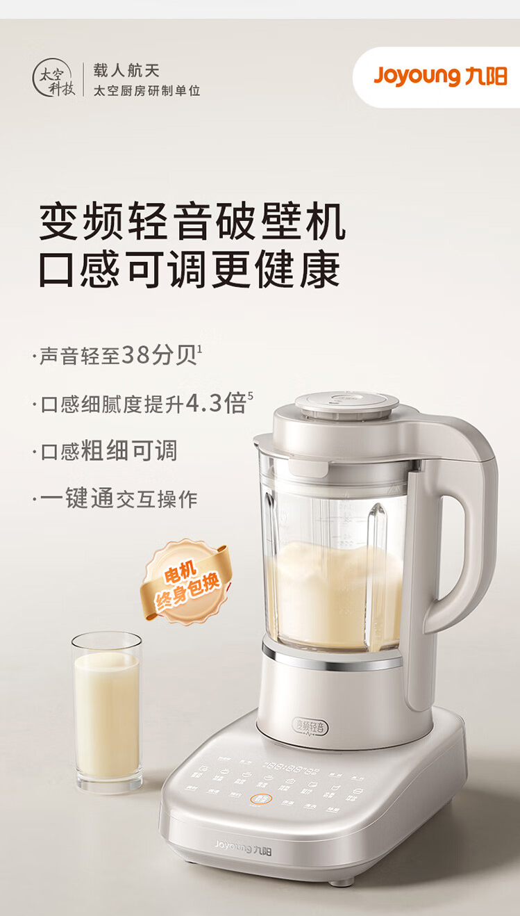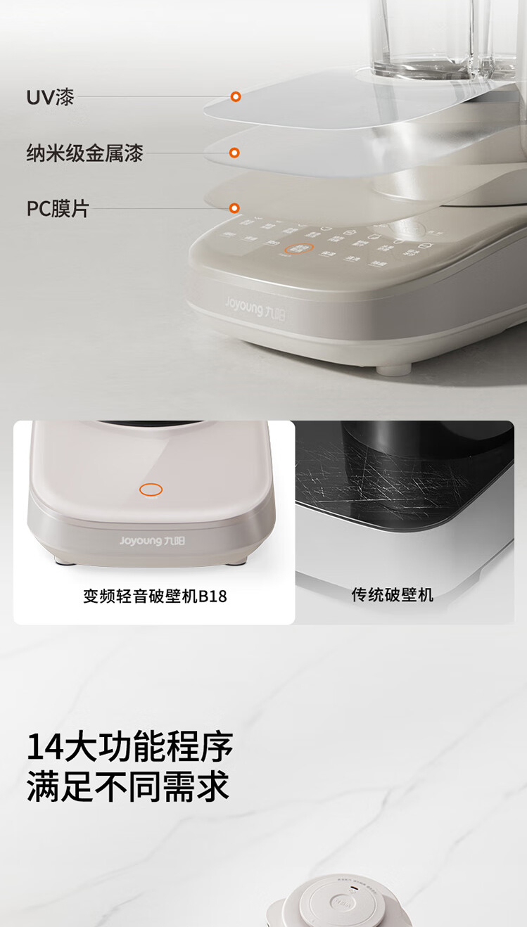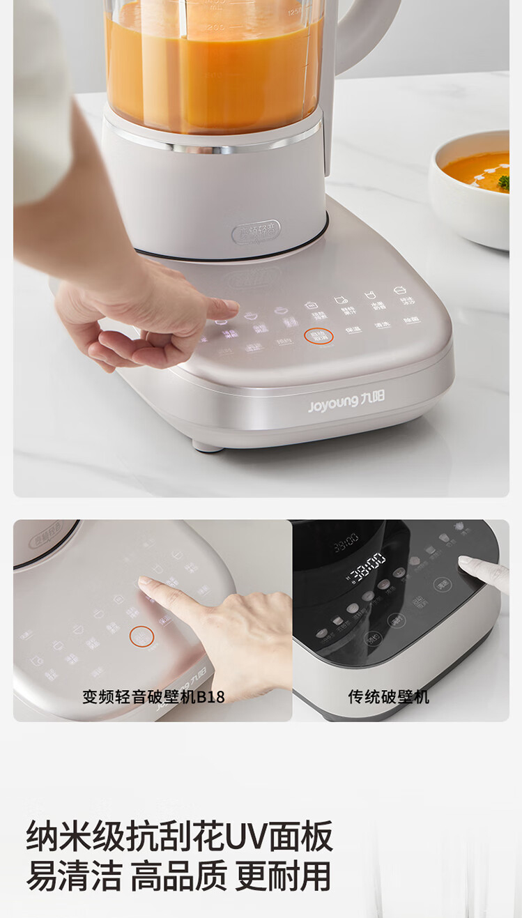 九阳变频轻音破壁机1.75升大容量家用豆浆机榨汁多功能辅食料理机