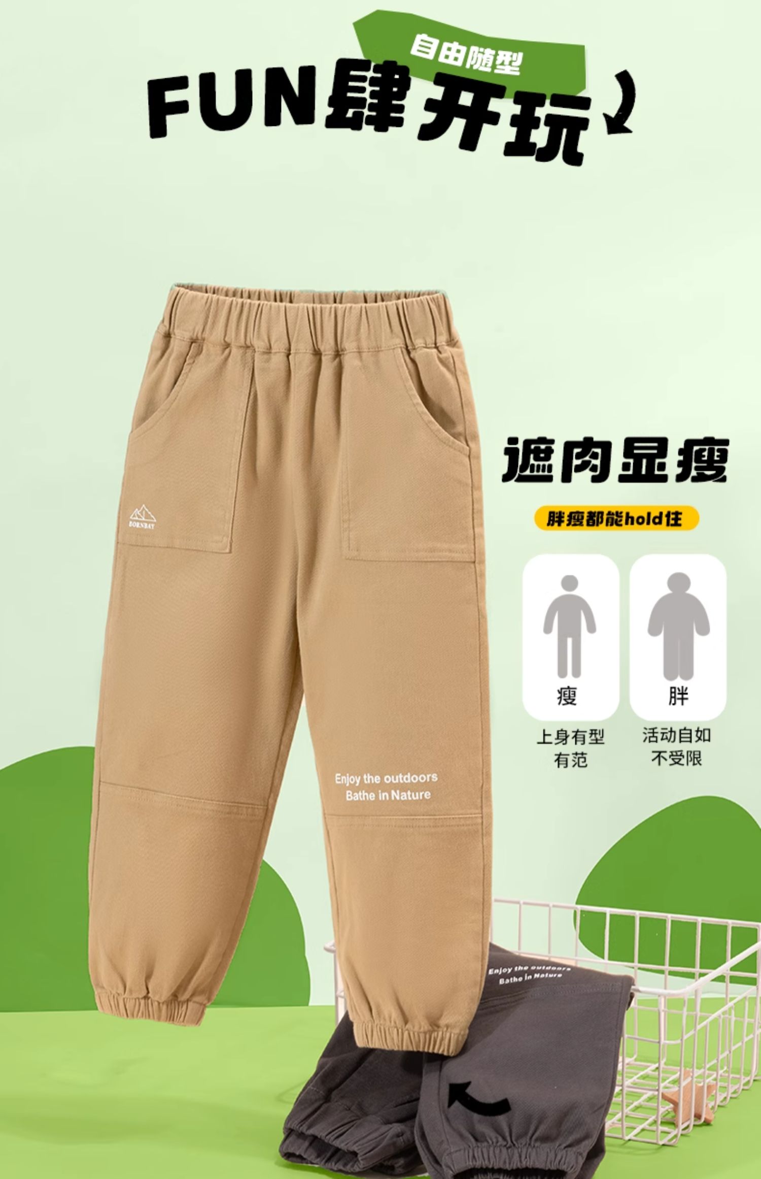 贝贝怡童装男童休闲长裤2024秋季新款儿童春中大童春秋款束脚裤子ZB3DK003