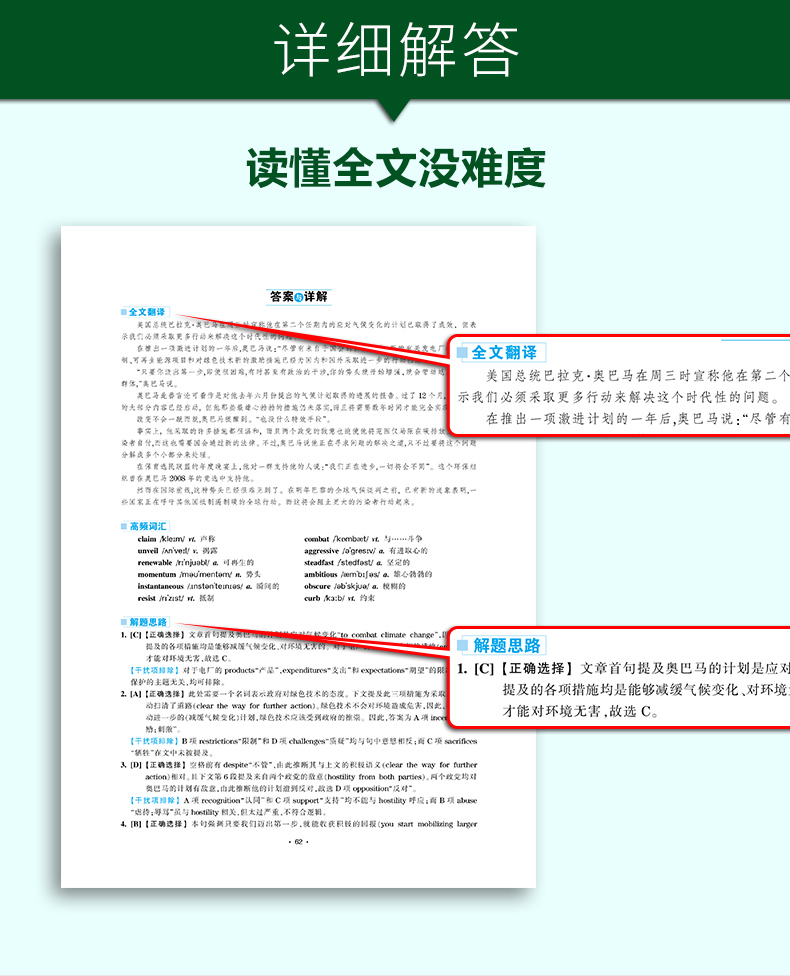 5. 解析详细,文章提供全文翻译,试题给出解题思路和排除干扰项的方法;