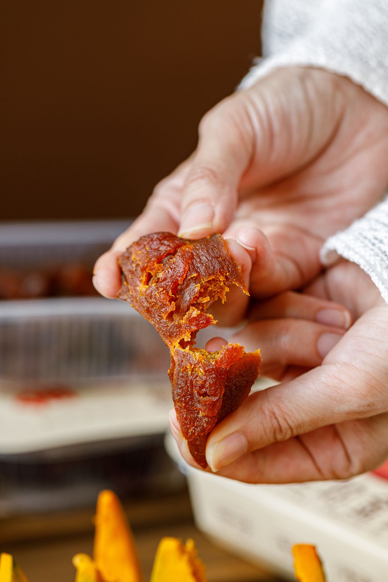 地瓜是用整根整根带皮烤出杏脯级软糯,100小时四蒸四烘,撕咬瞬间,软糯拉丝,