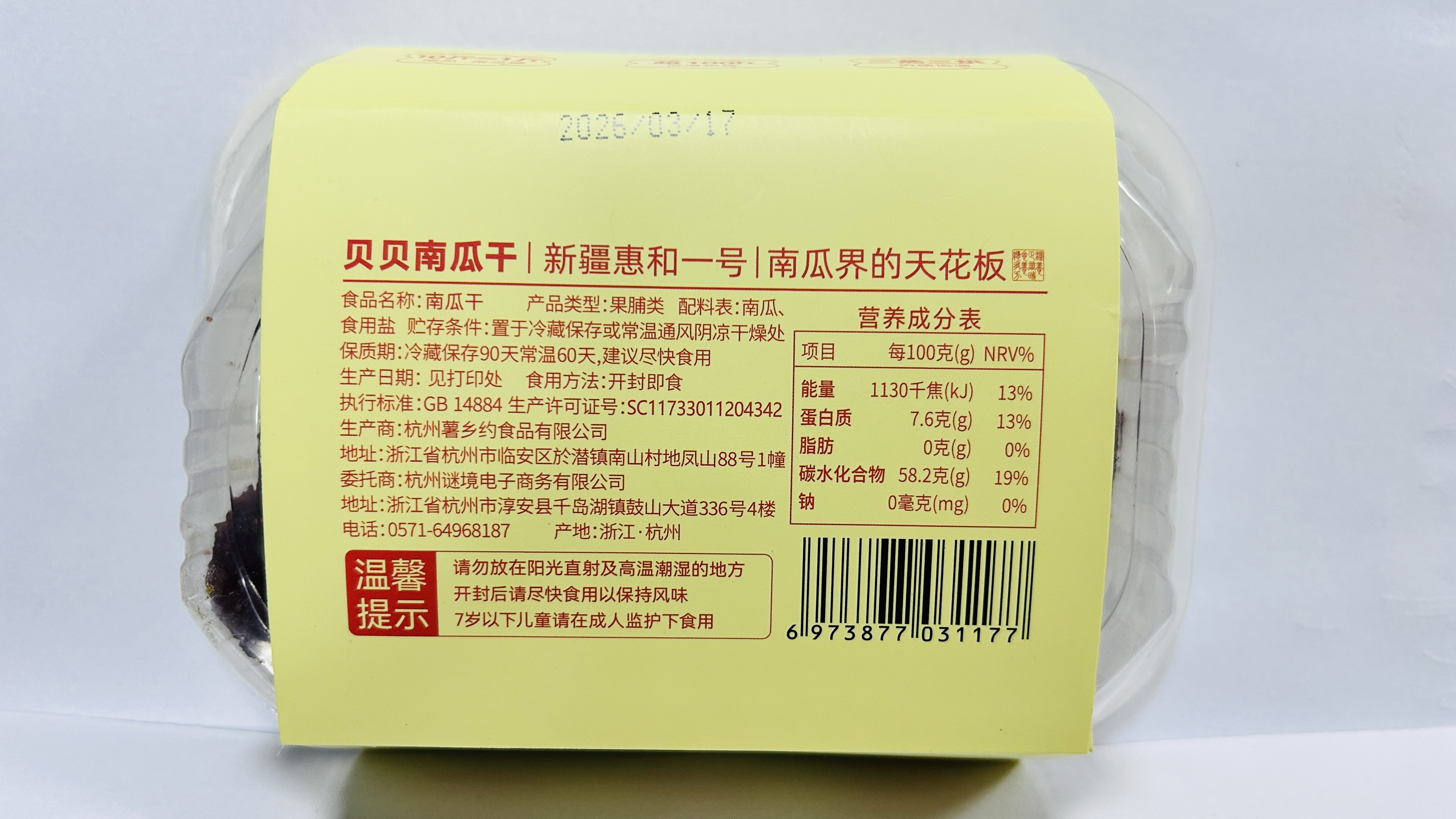 去皮贝贝南瓜干:惠和一号贝贝南瓜