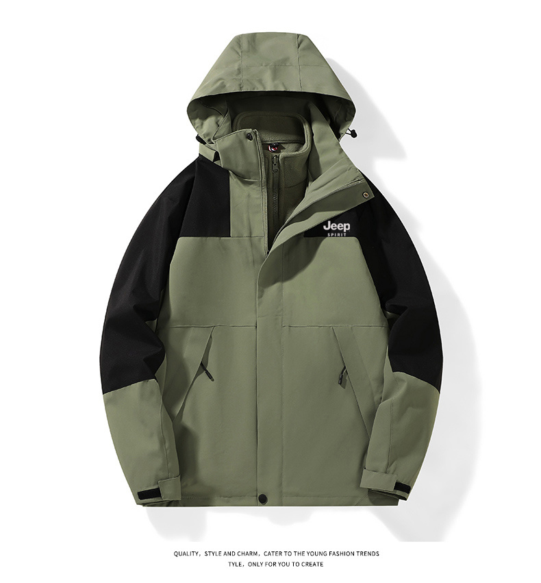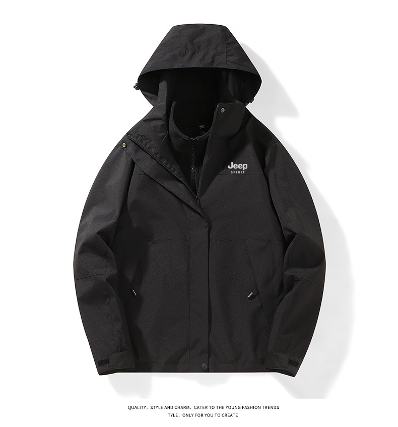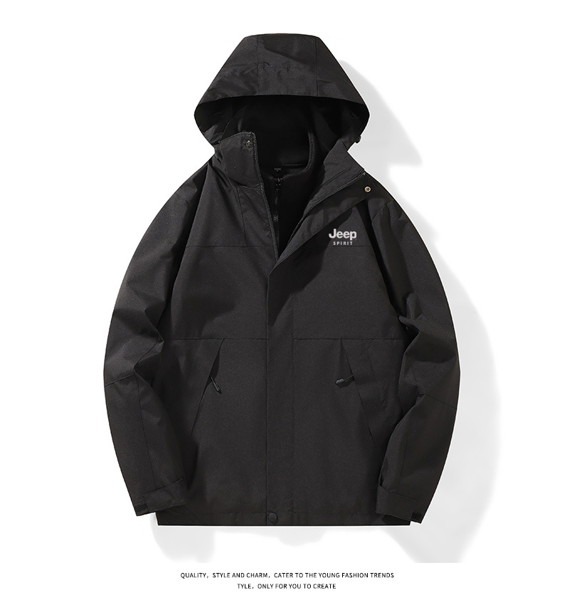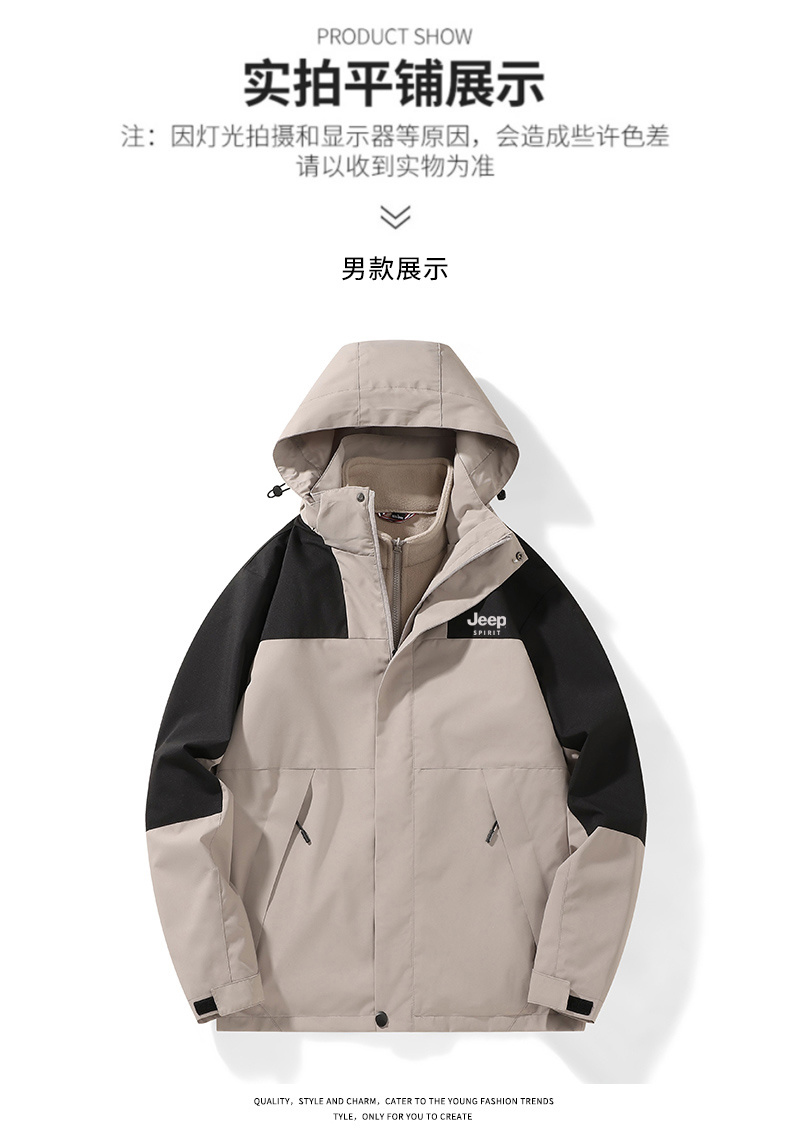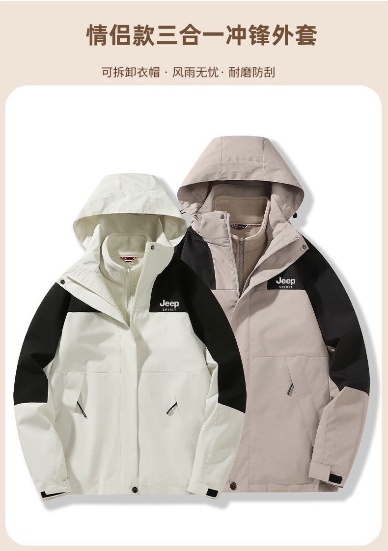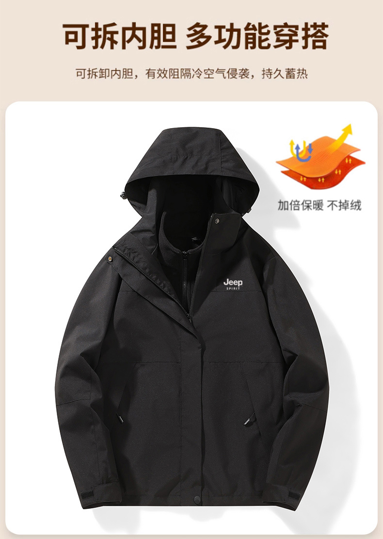 JEEP SPIRIT【三合一情侣冲锋外套】加厚可拆卸内胆外套 户外防风防水登山服 时尚百搭保暖夹克